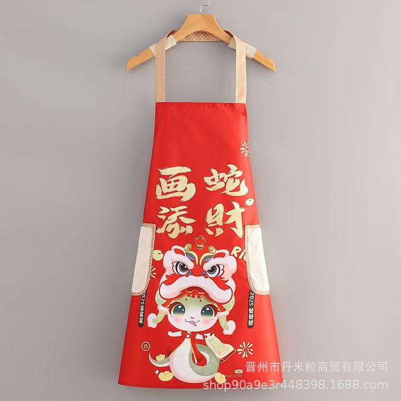 新款喜庆龙年新款卡通围裙厨房家用防水防油可定工作服大人围腰女