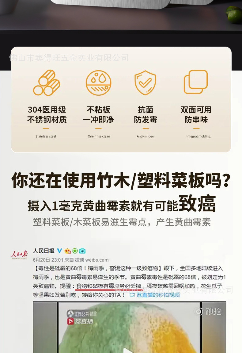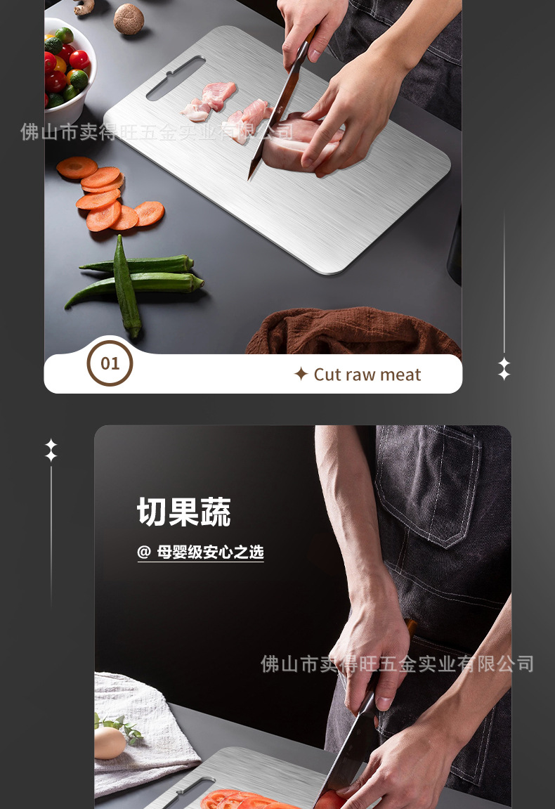 不锈钢菜板双面切导圆切菜板家用揉面擀面板圆挂孔菜板批发厂家