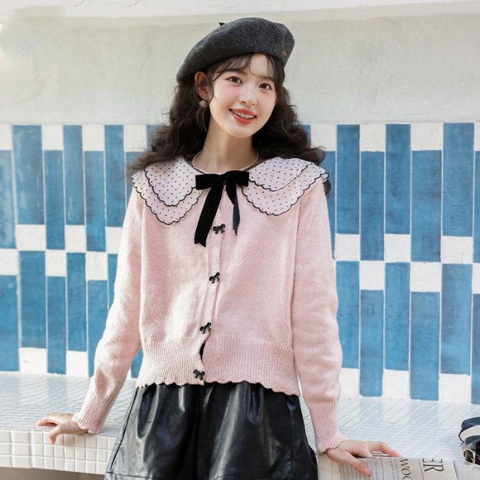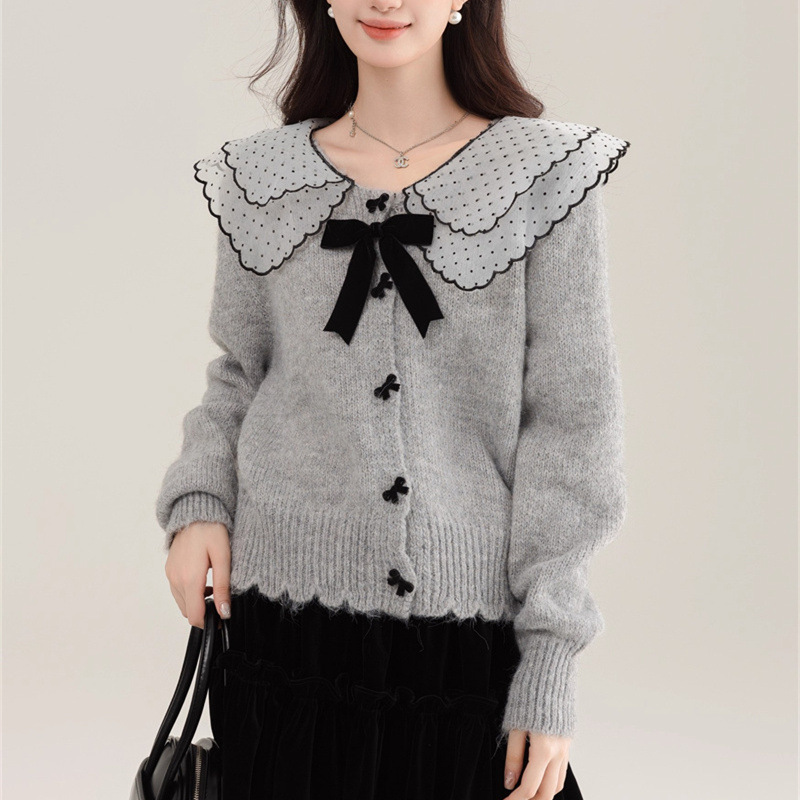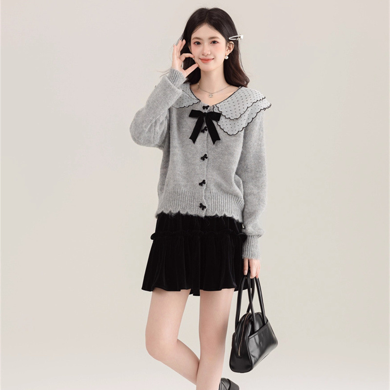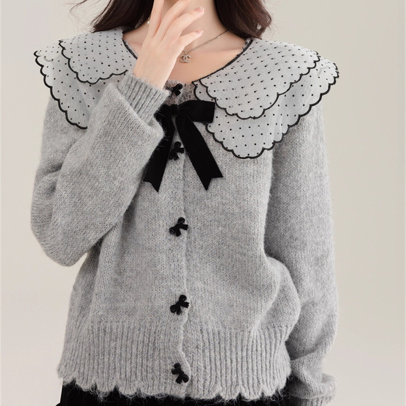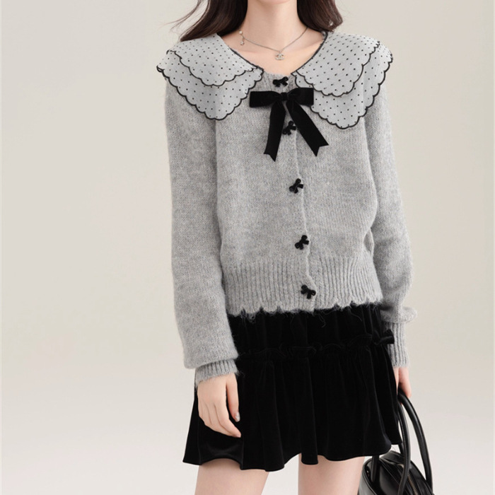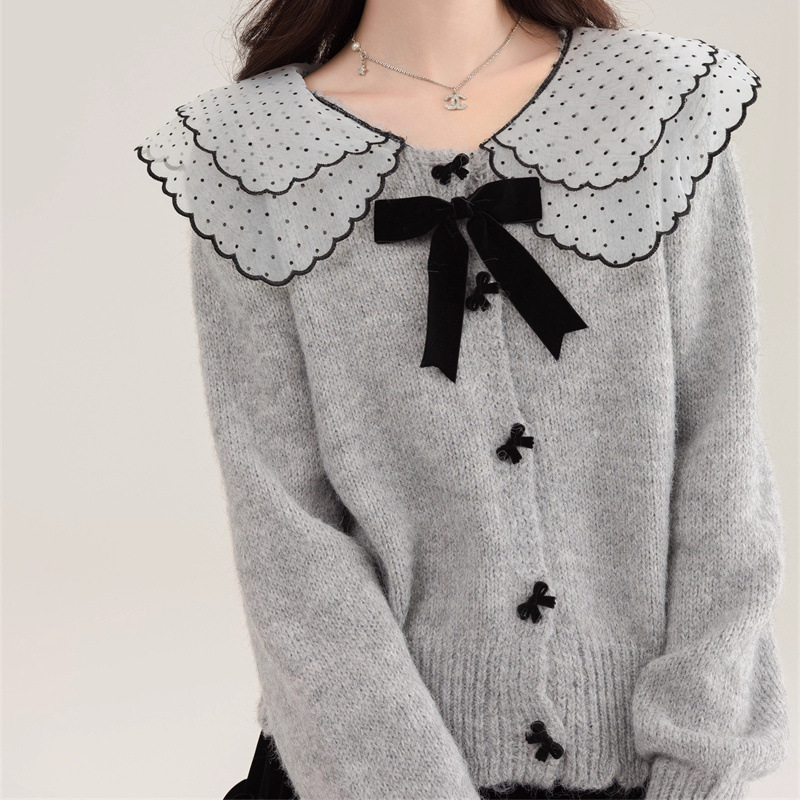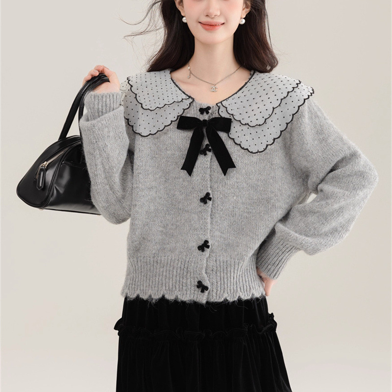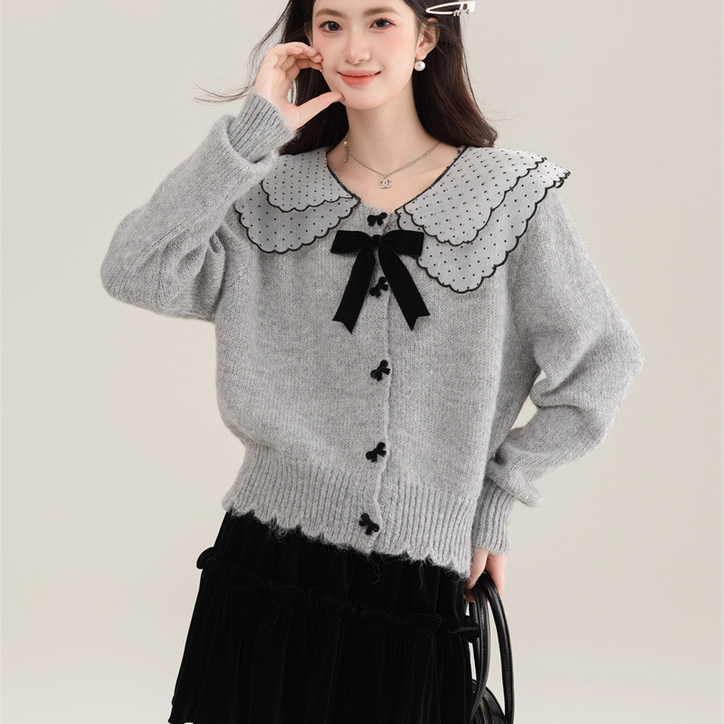 小众高级娃娃领针织开衫外套秋冬2025新款单排扣蝴蝶结显瘦毛衣上