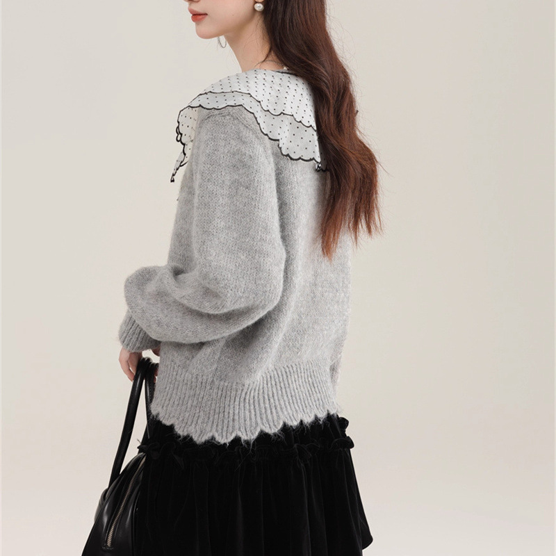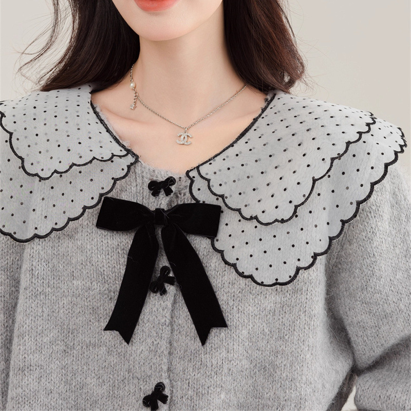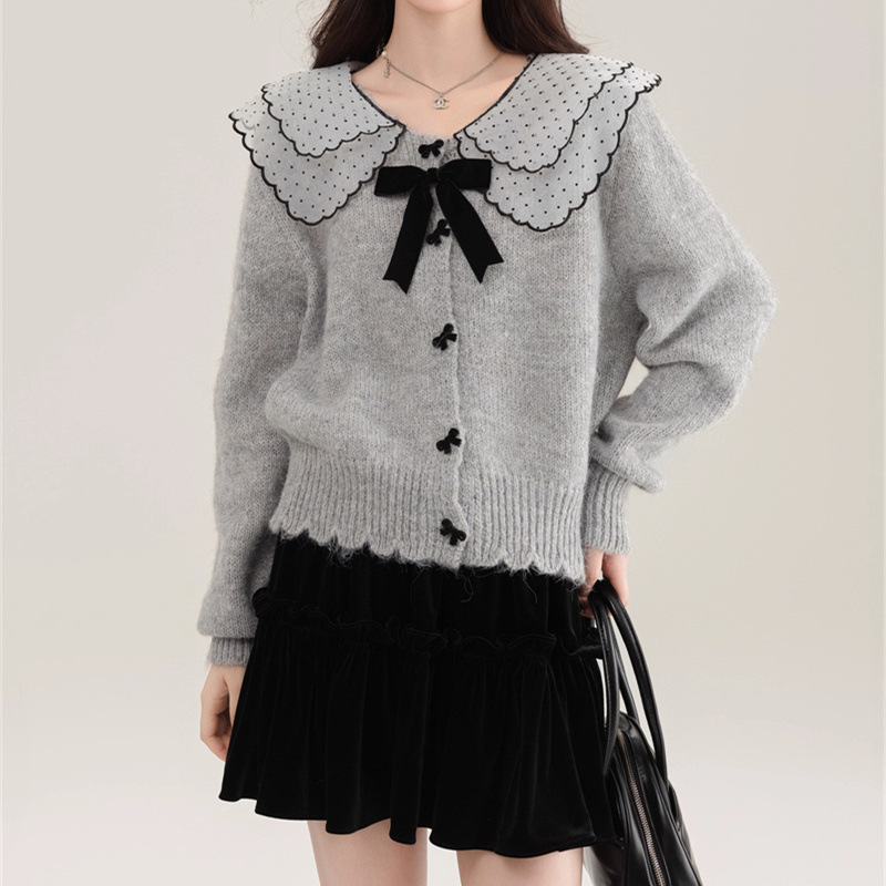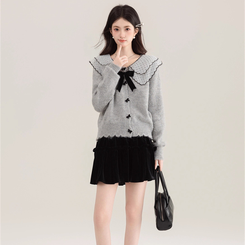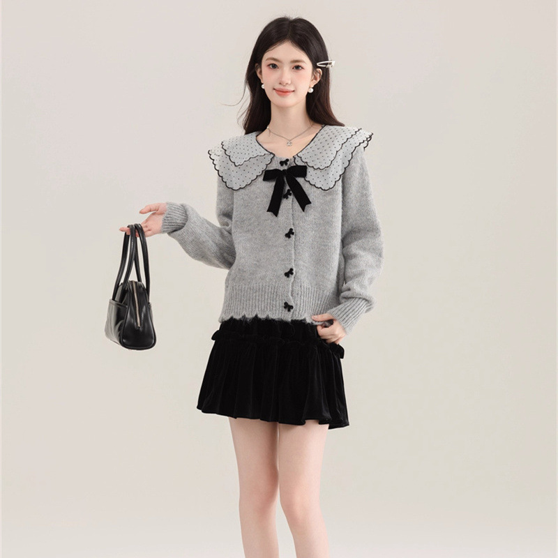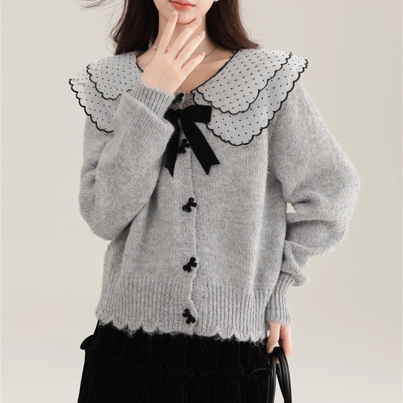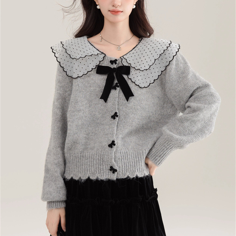 小众高级娃娃领针织开衫外套秋冬2025新款单排扣蝴蝶结显瘦毛衣上