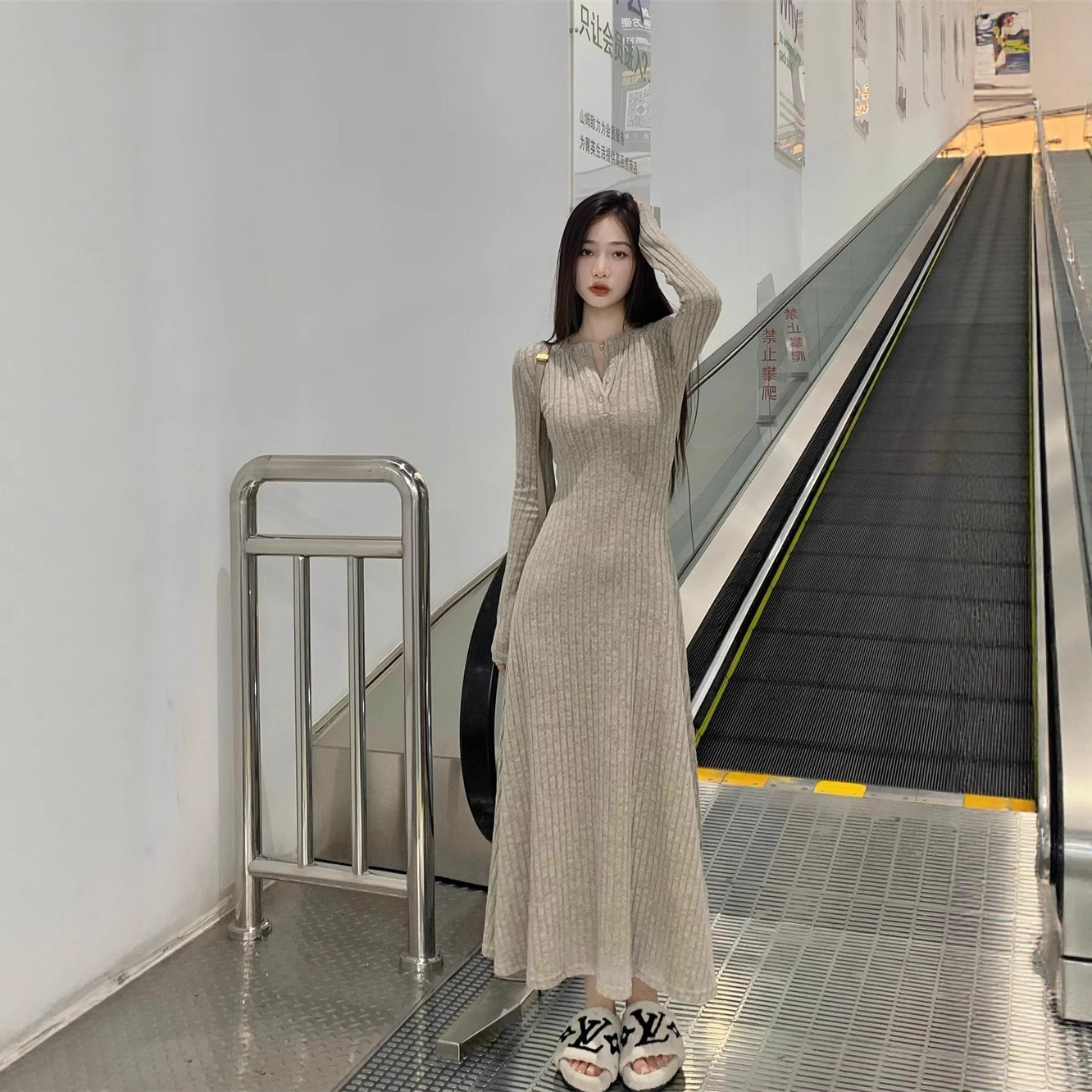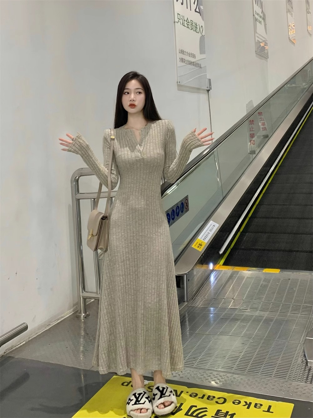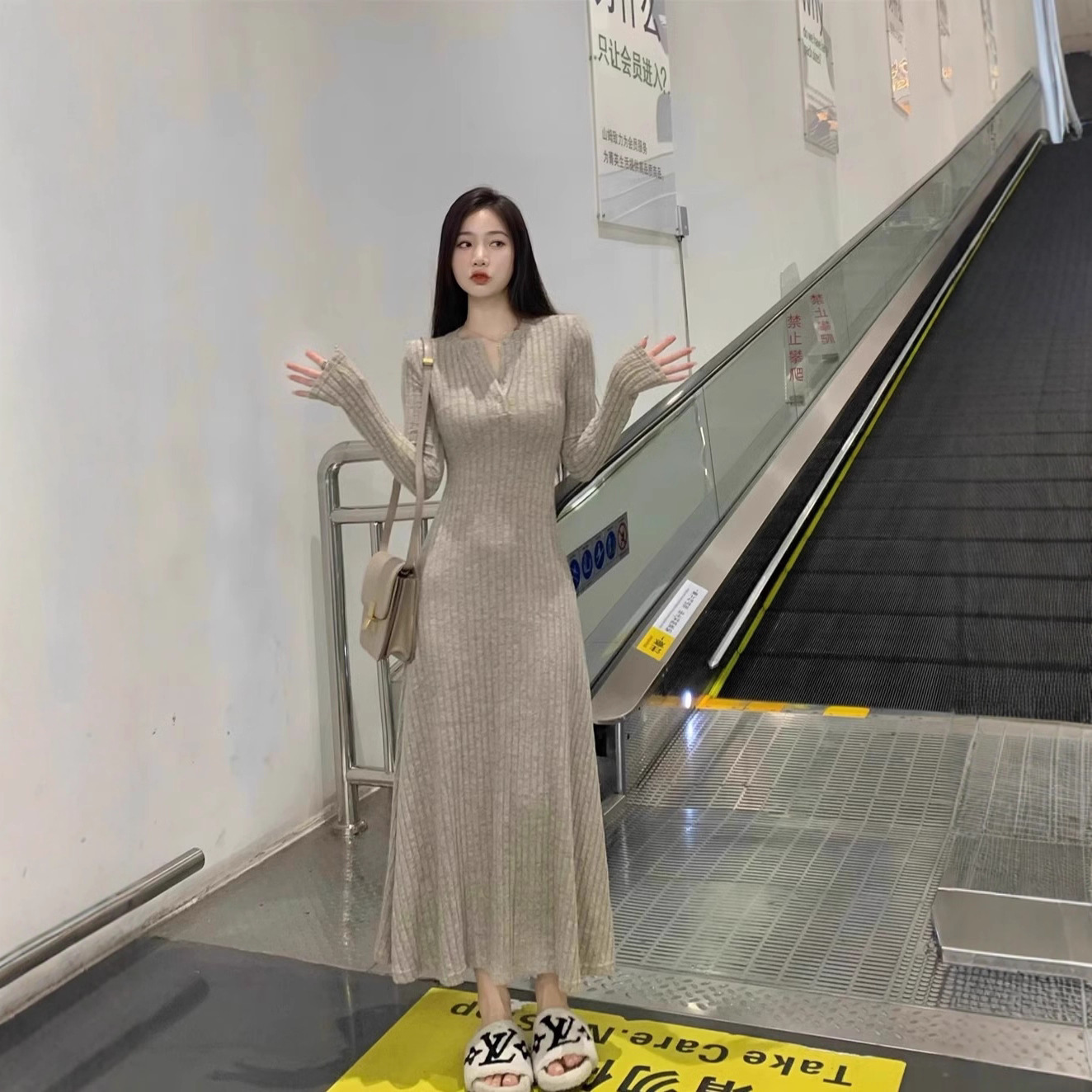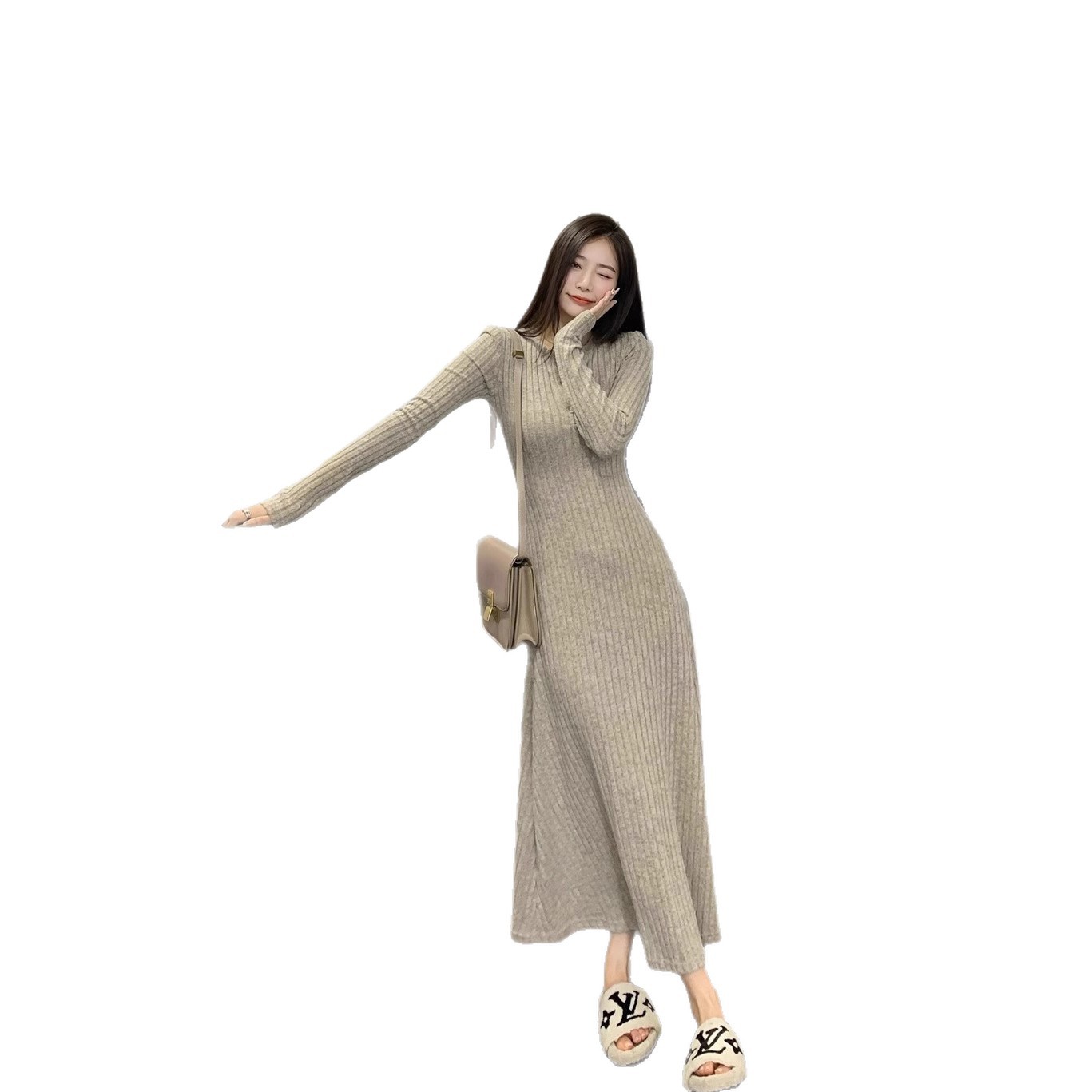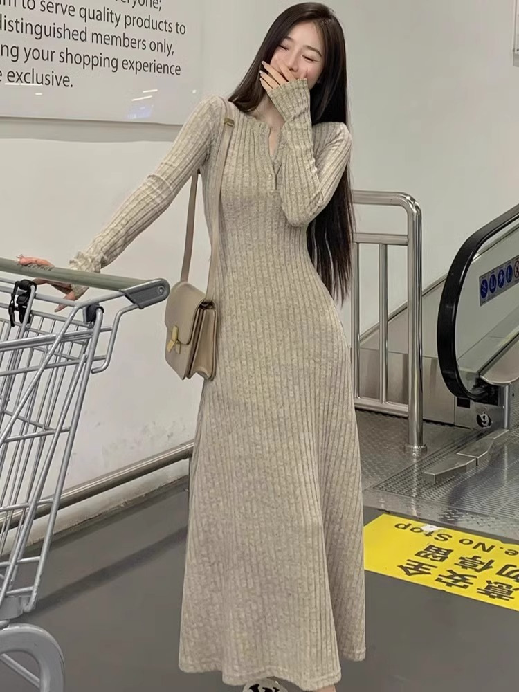 高级感针织连衣裙女2025秋冬季新款大衣内搭加厚气质打底法式长裙