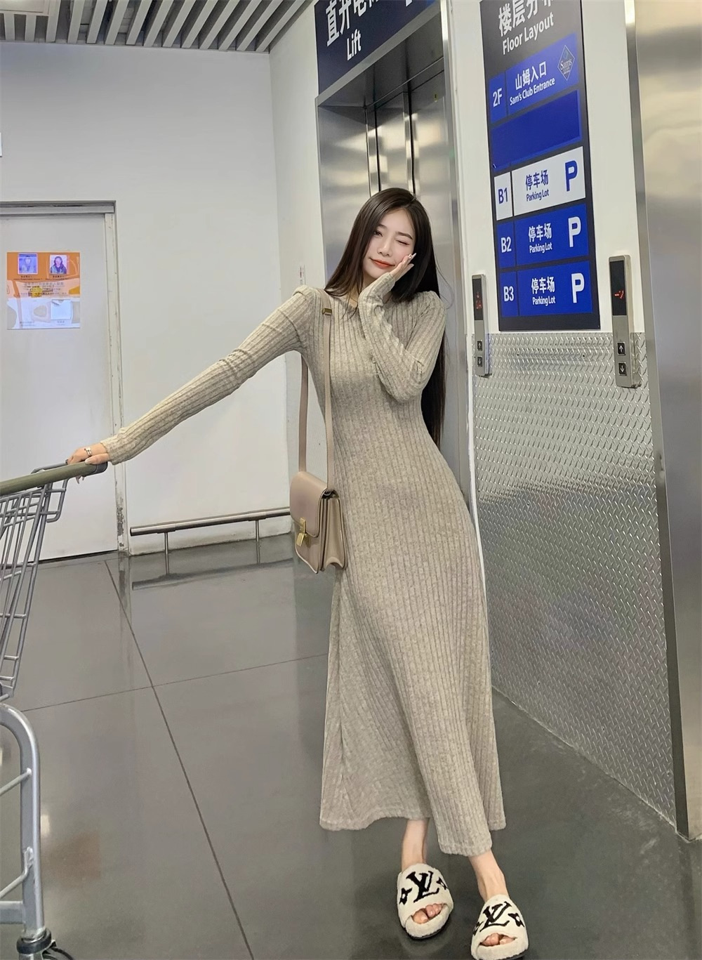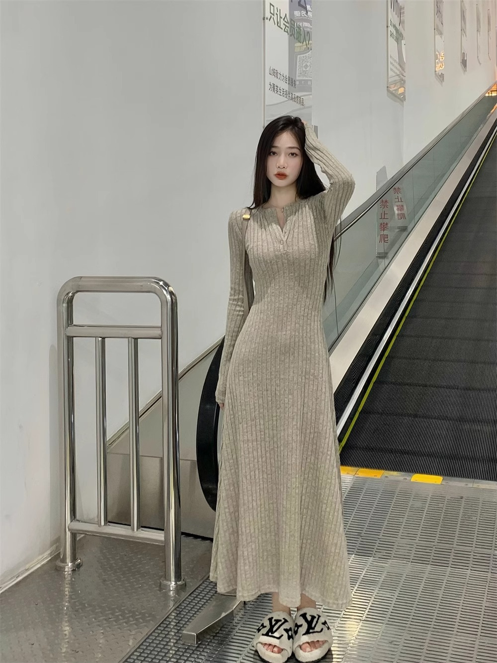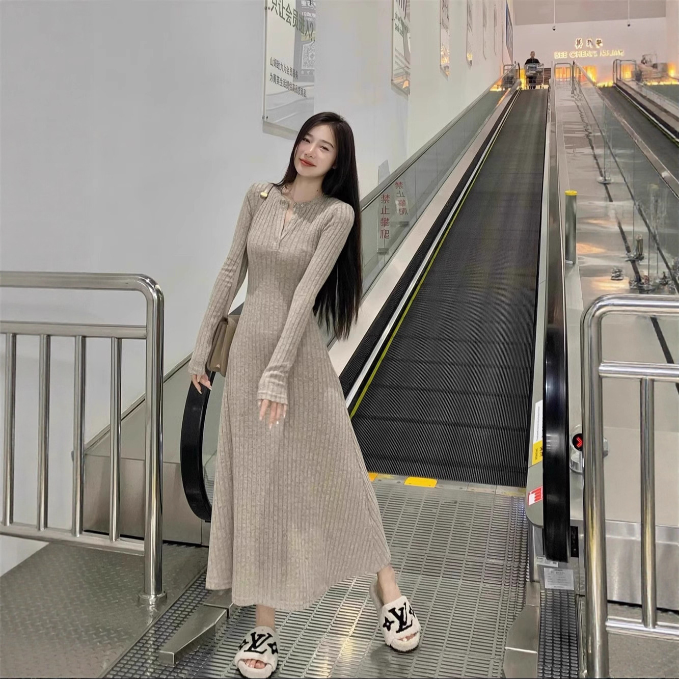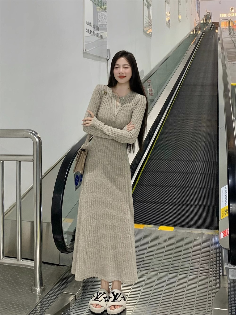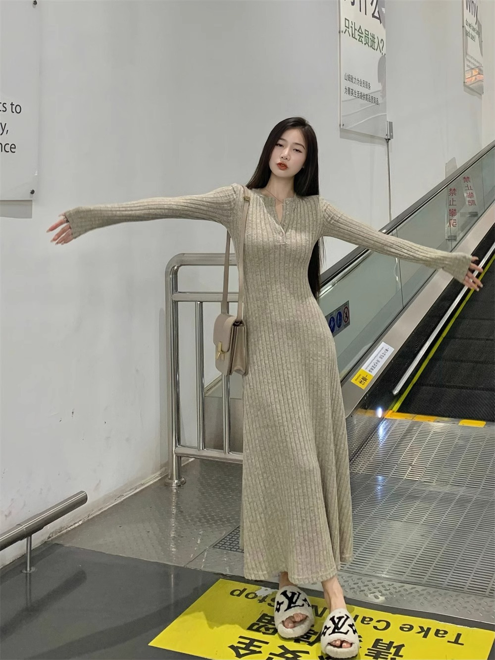 高级感针织连衣裙女2025秋冬季新款大衣内搭加厚气质打底法式长裙