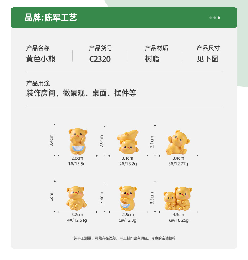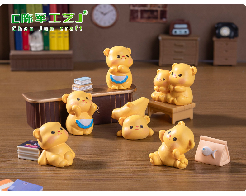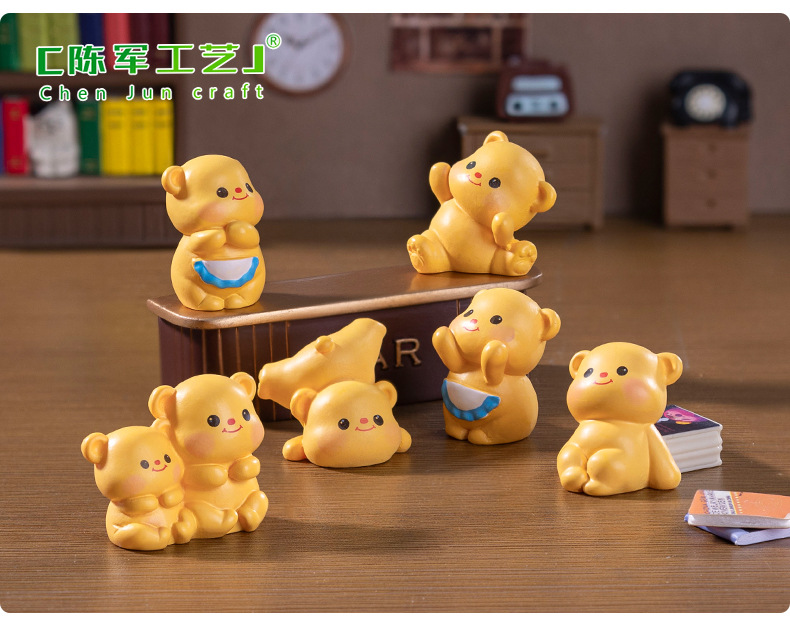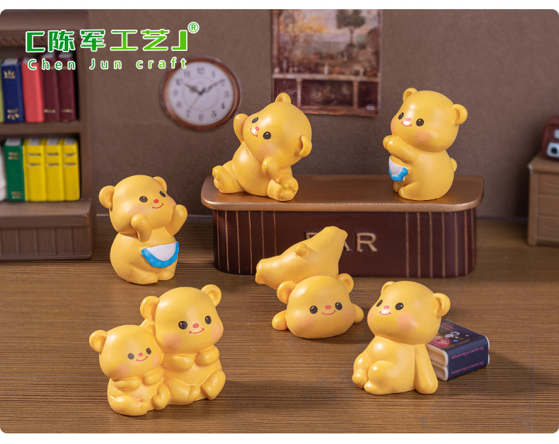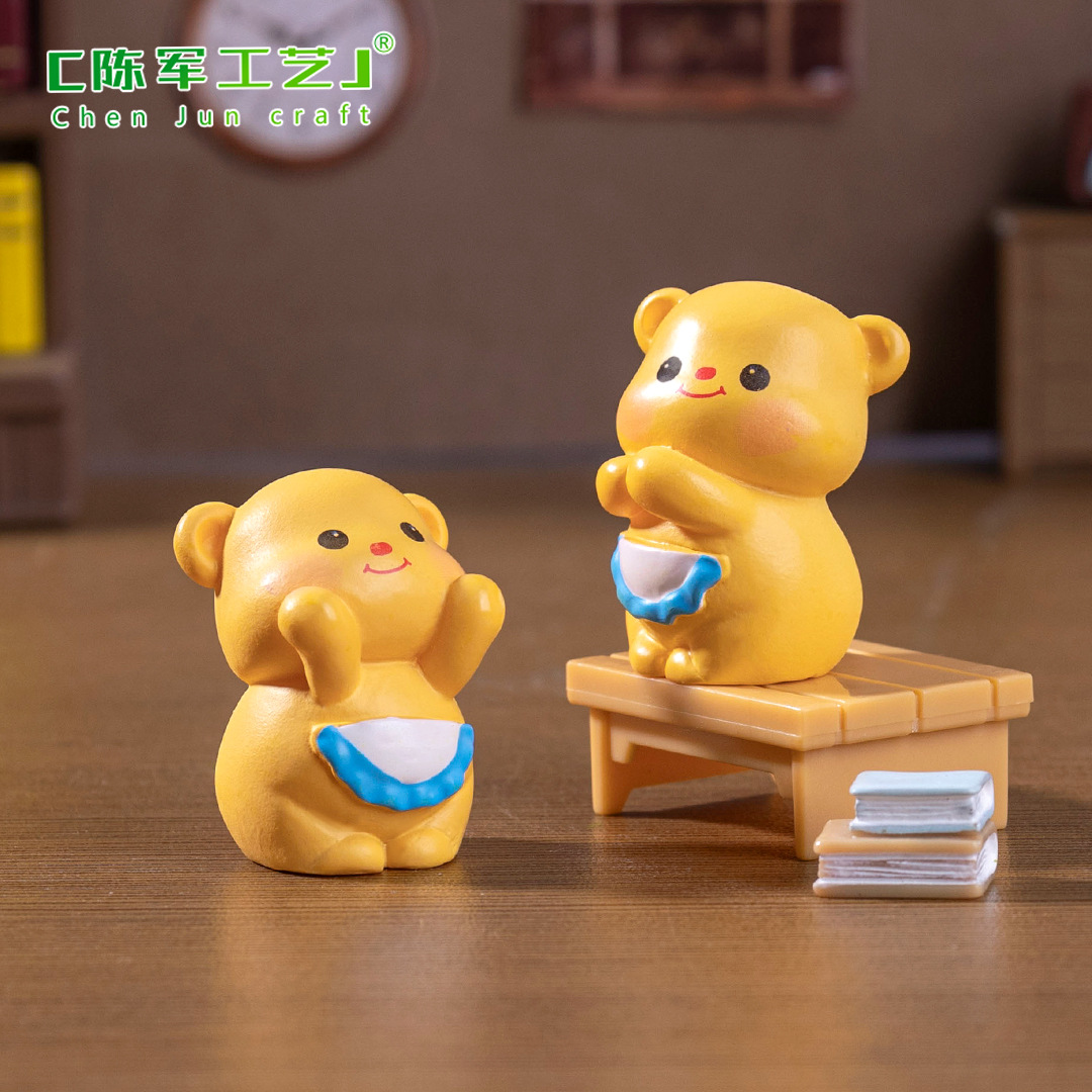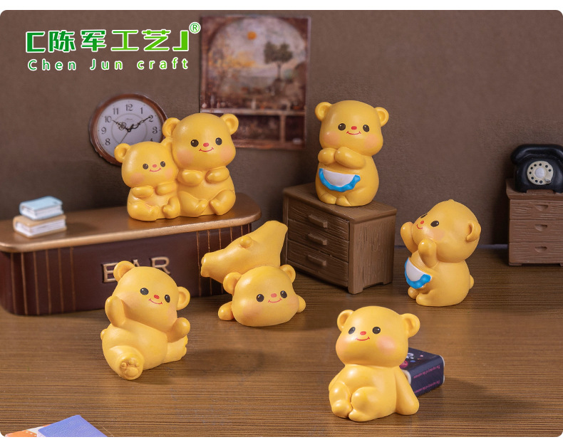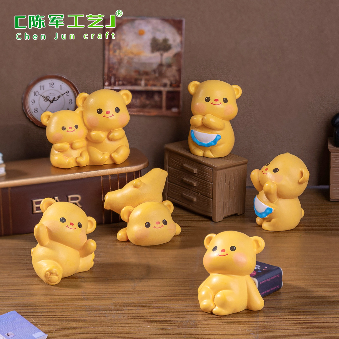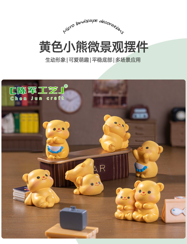 可爱黄色奶油小熊公仔萌粒 娃娃屋diy装饰品配件微景观桌面小摆件