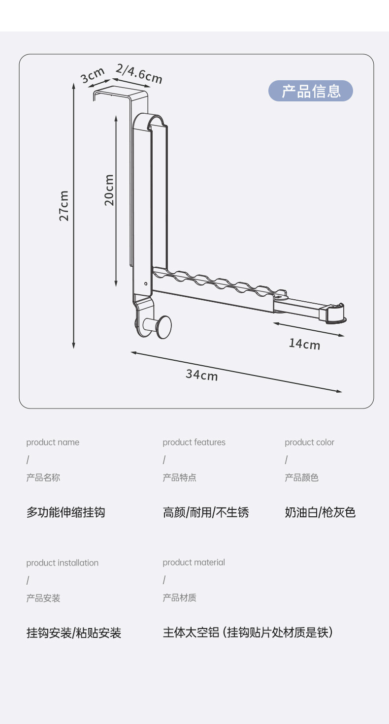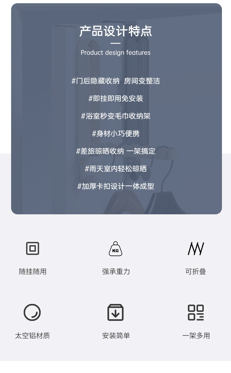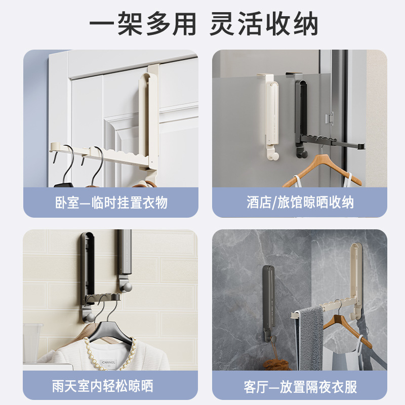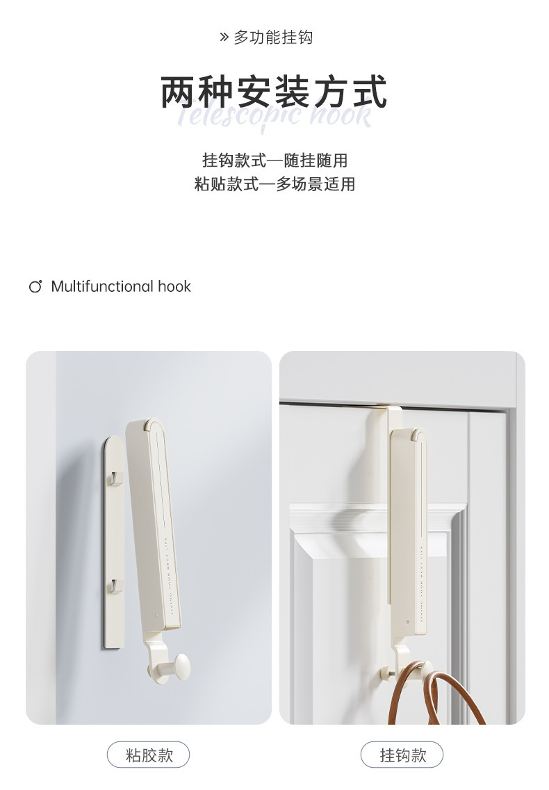 厂家供应免打孔门后挂钩门后挂衣架挂衣钩多功能铝合金伸缩折叠架