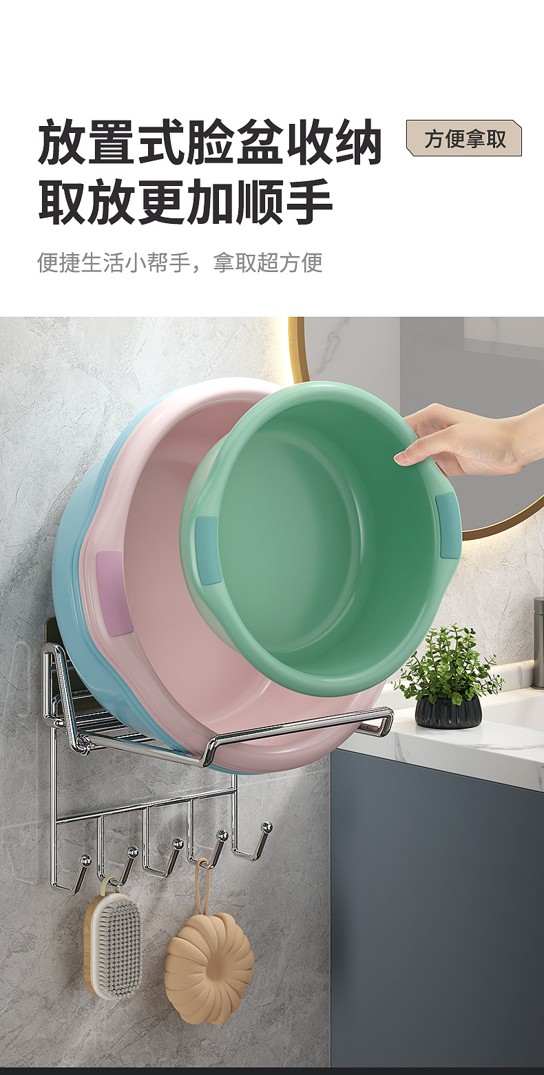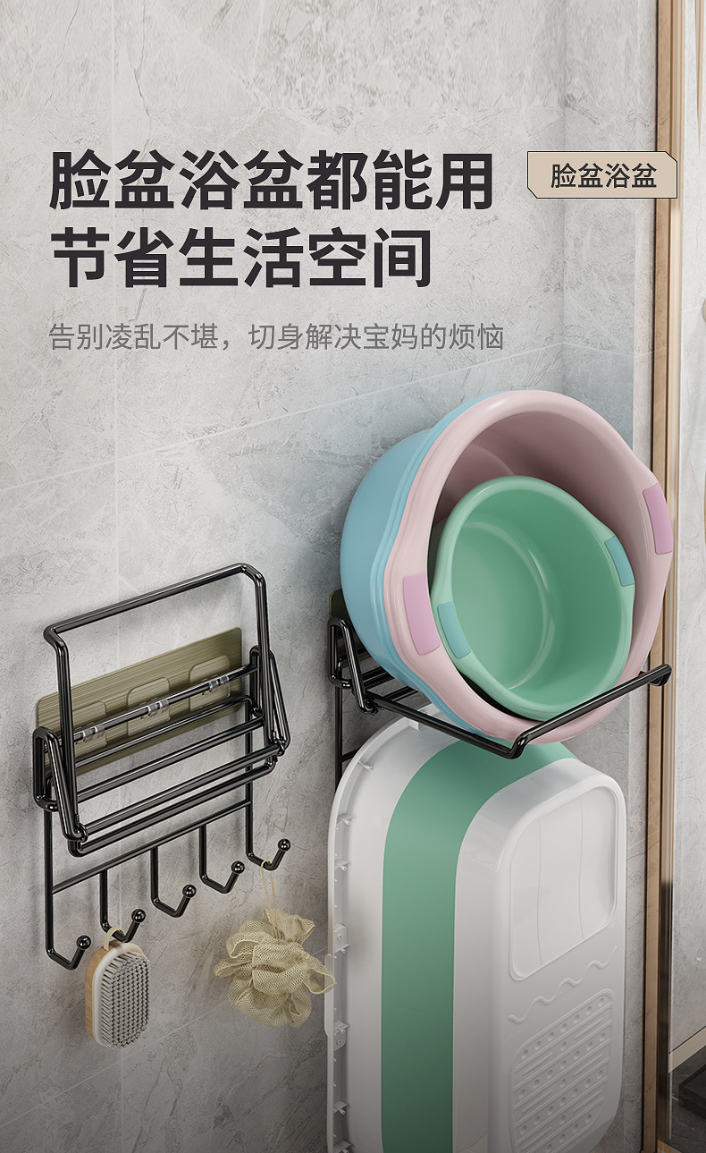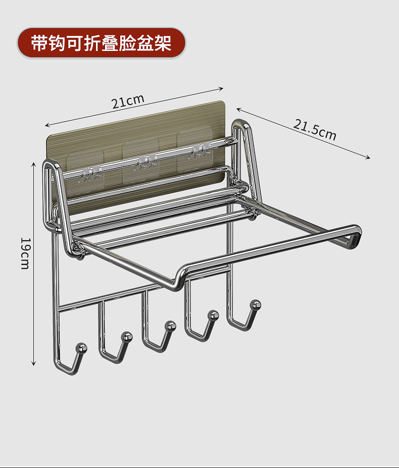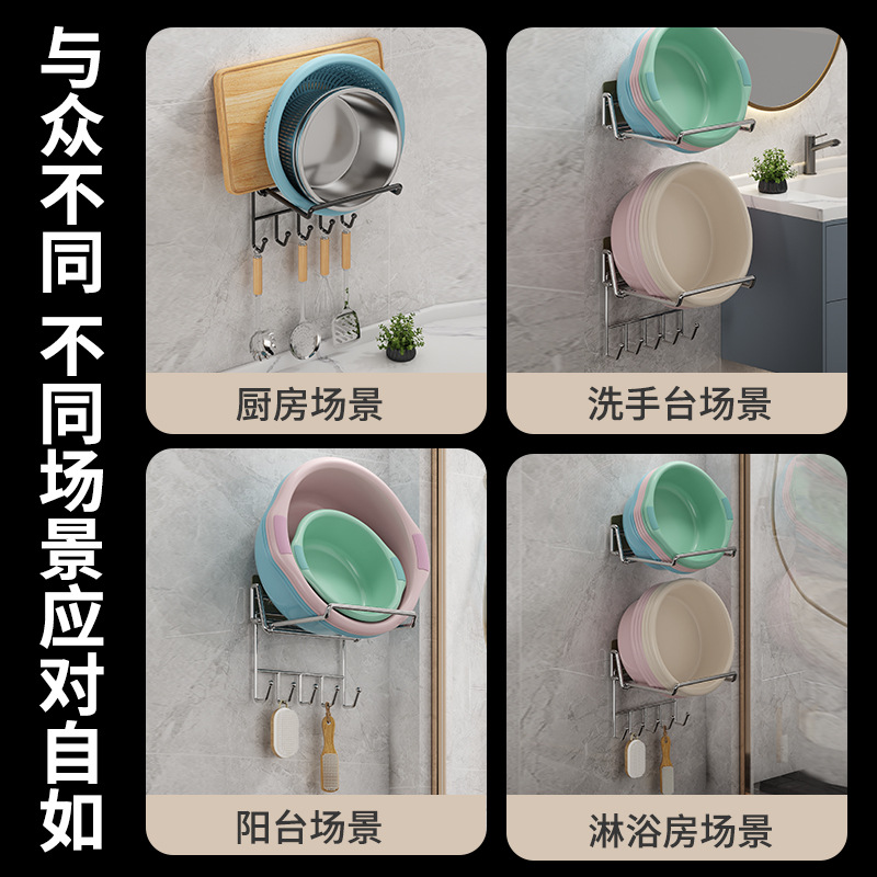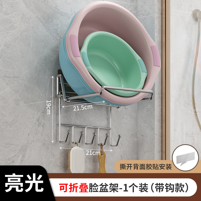 不锈钢可折叠脸盆架壁挂卫生间置物架脸盆架免打孔浴室脸盆收纳架