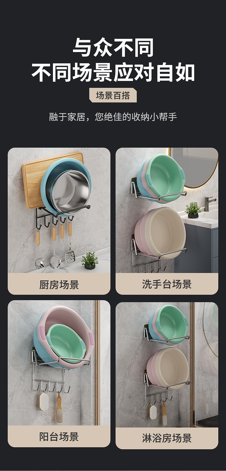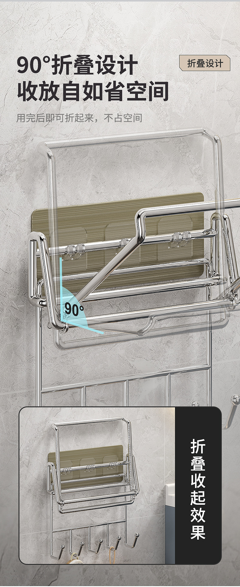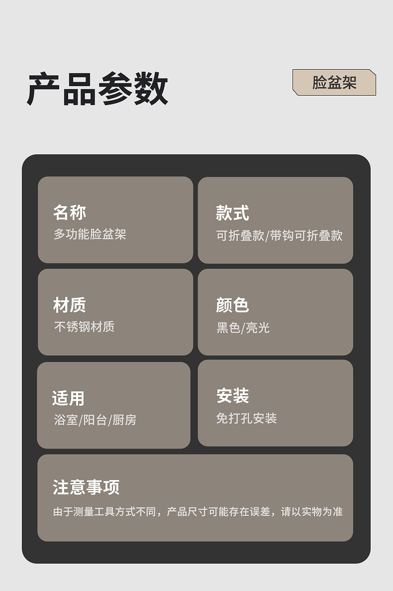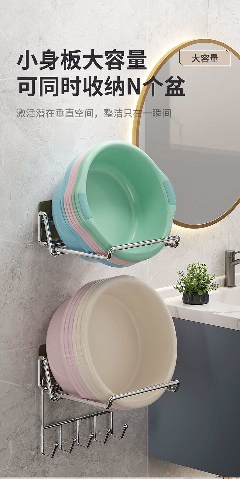 不锈钢可折叠脸盆架壁挂卫生间置物架脸盆架免打孔浴室脸盆收纳架