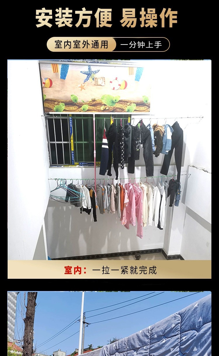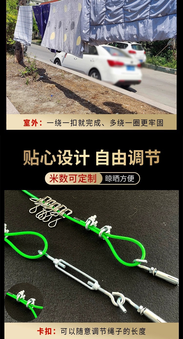 晒被绳晾衣绳户外室内挂晒被子神器架包塑钢丝绳绳线绳子室外加粗