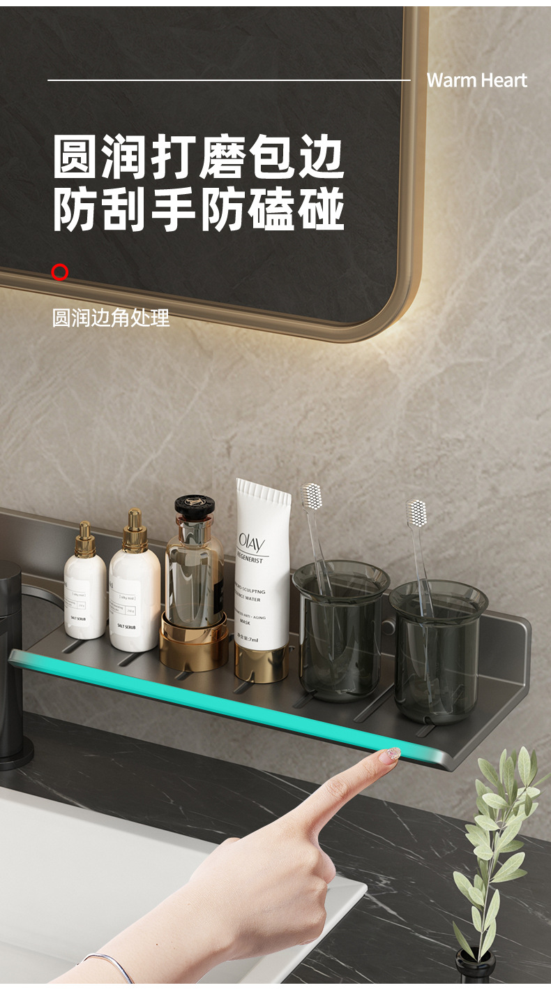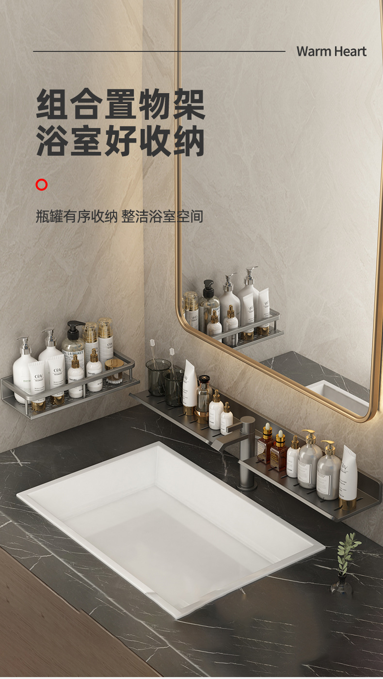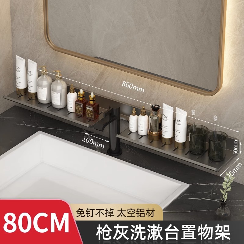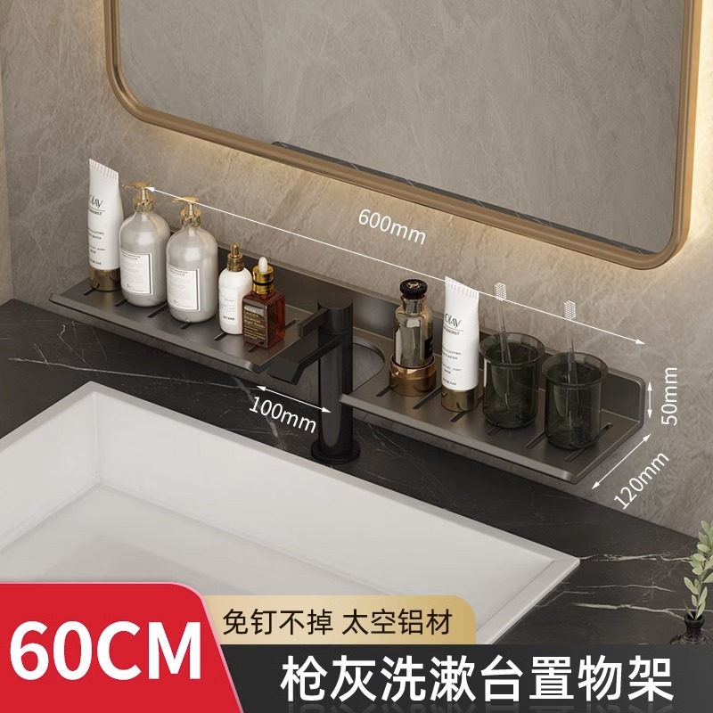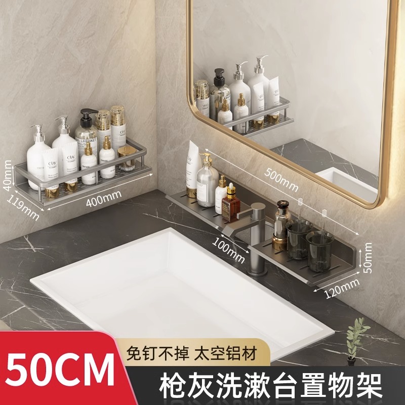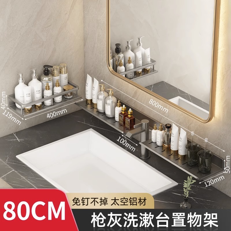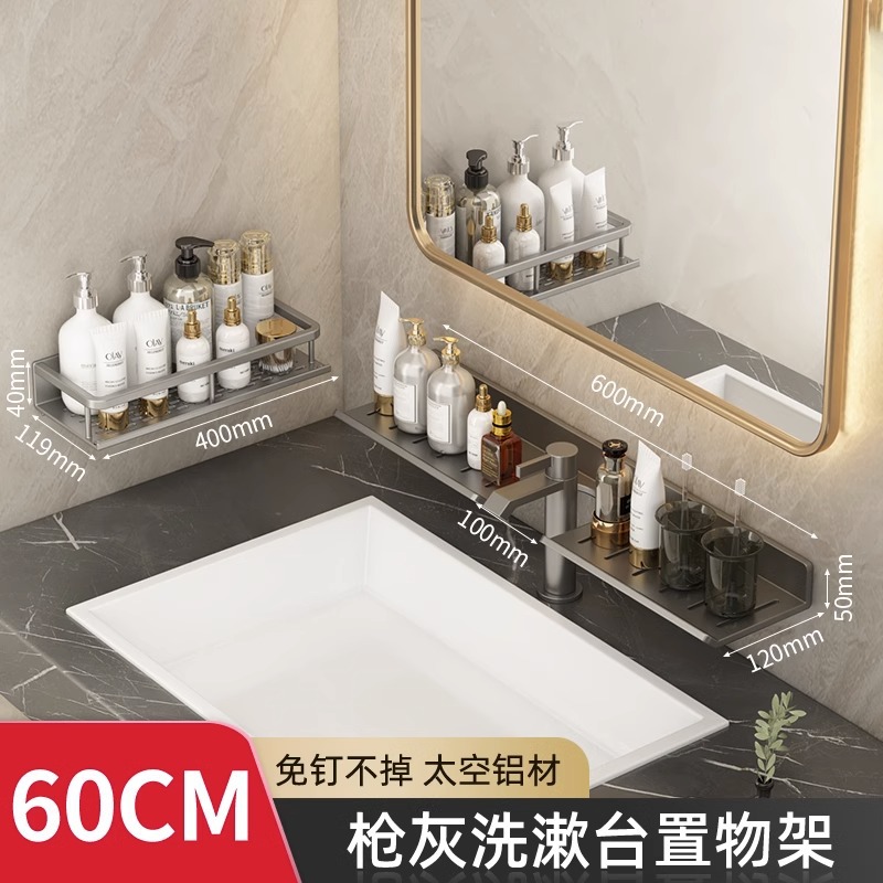 镜前卫生间置物架厕所洗手台盆洗漱台壁挂式免打孔沥水浴室架子