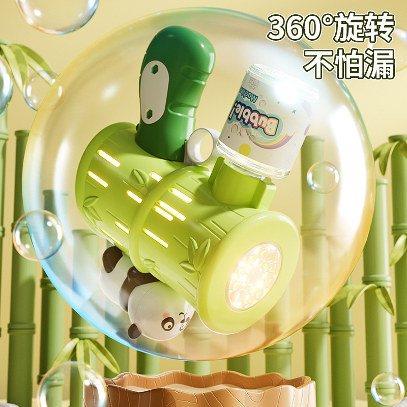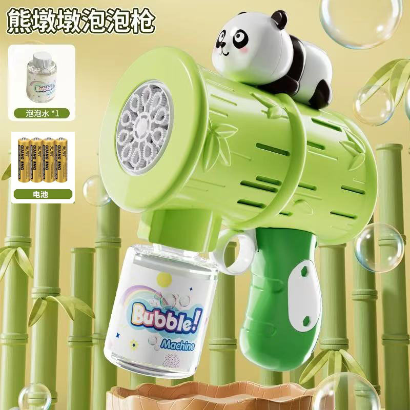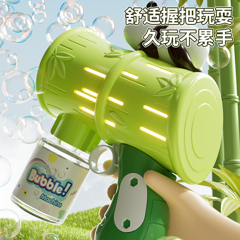 抖音爆款熊猫泡泡机儿童全自动手持灯光电动吹泡泡枪地摊玩具批发