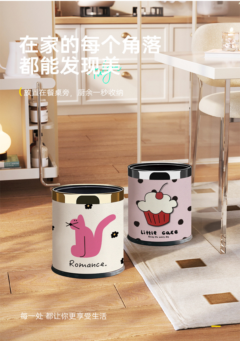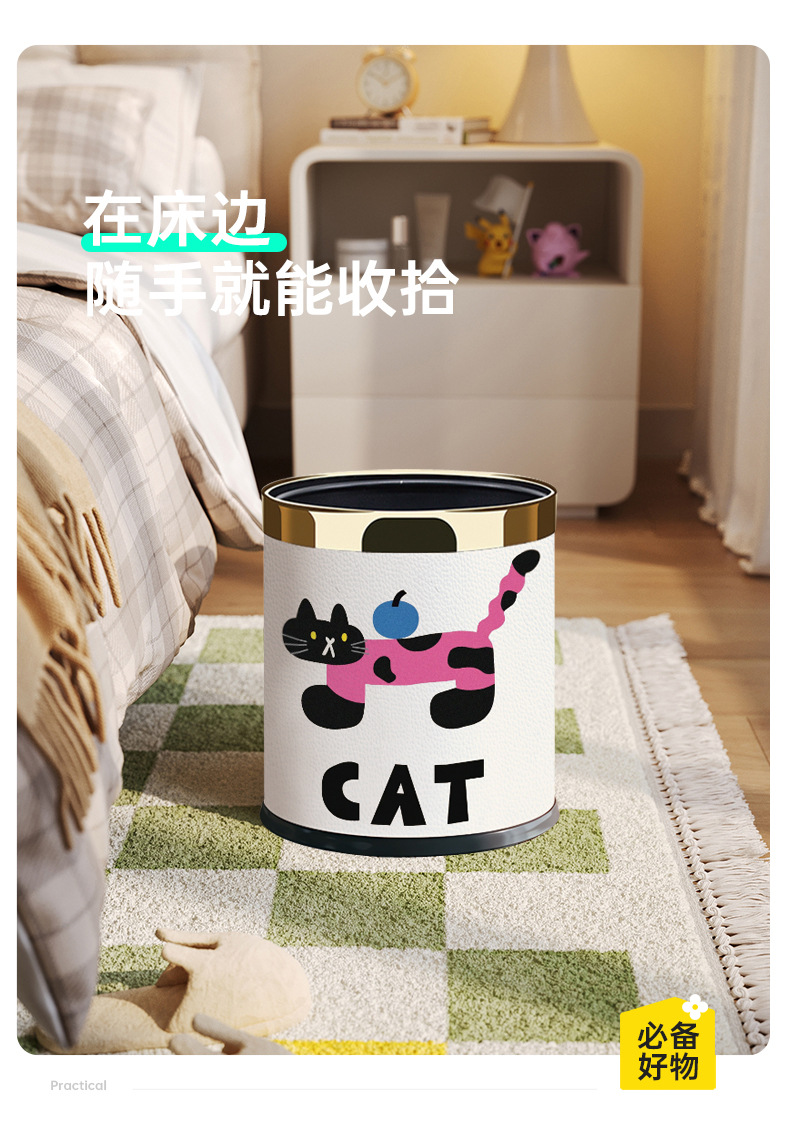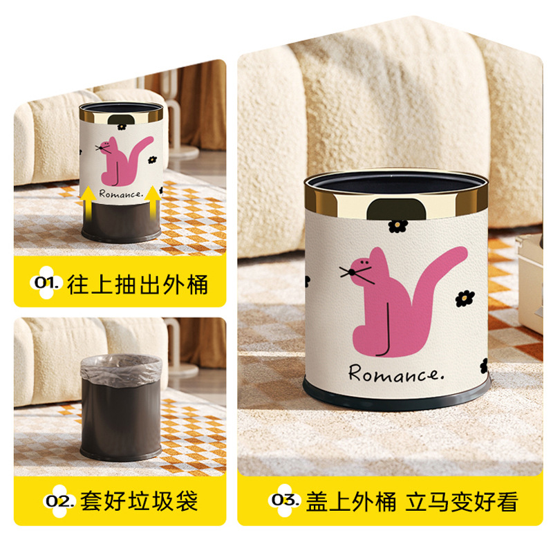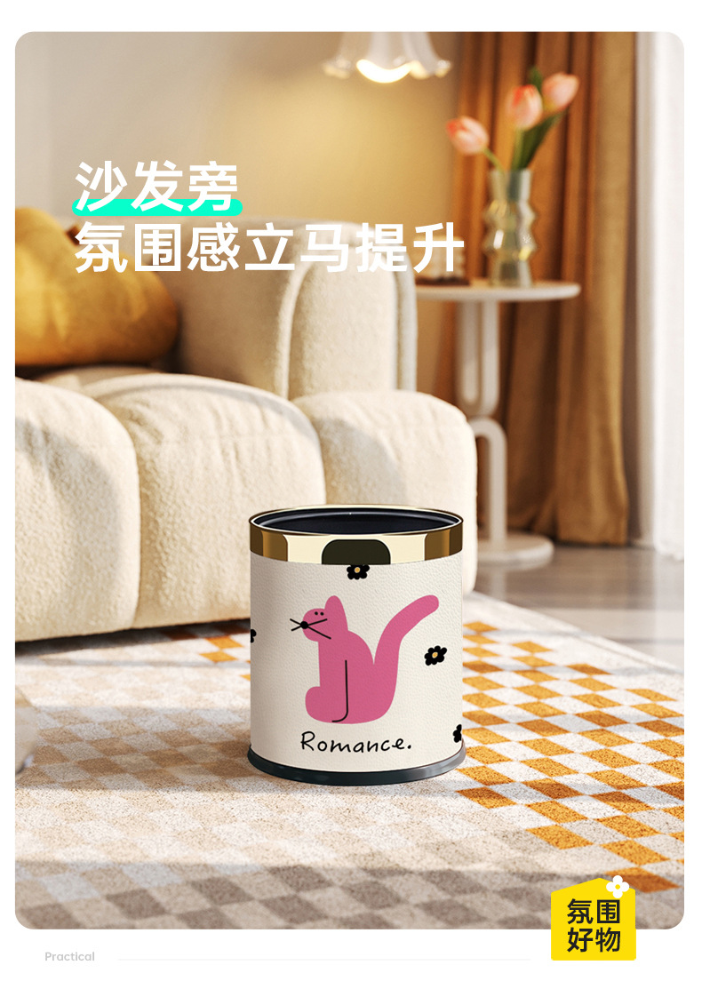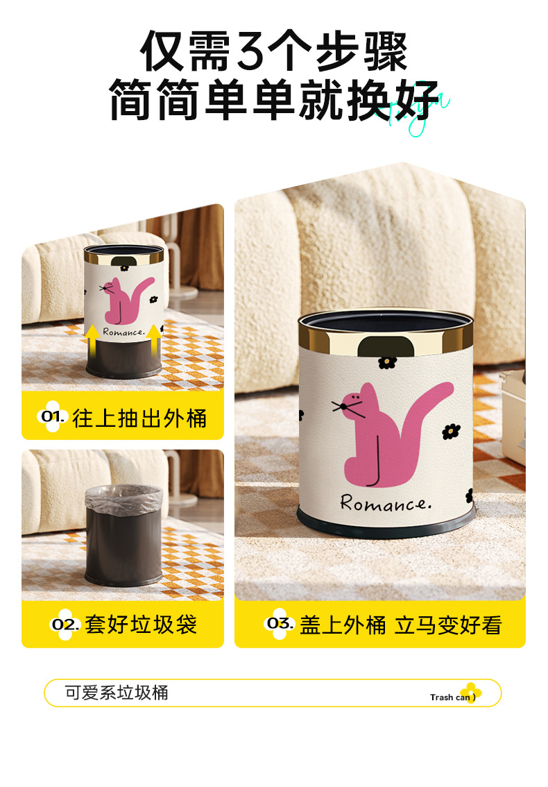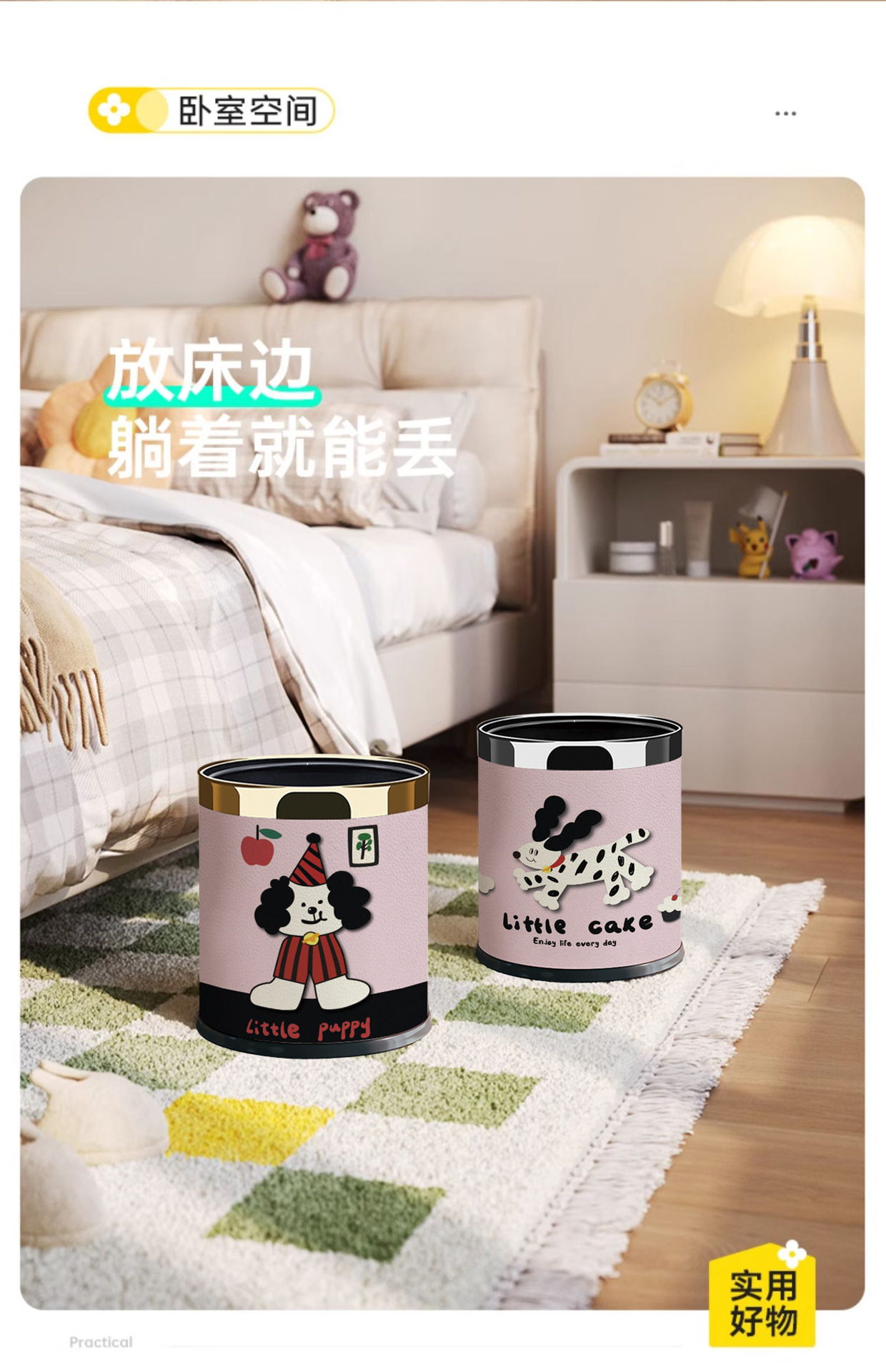 卡通垃圾桶家用厕所卫生间无盖厨房客厅可爱少女卧室高颜值创意桶