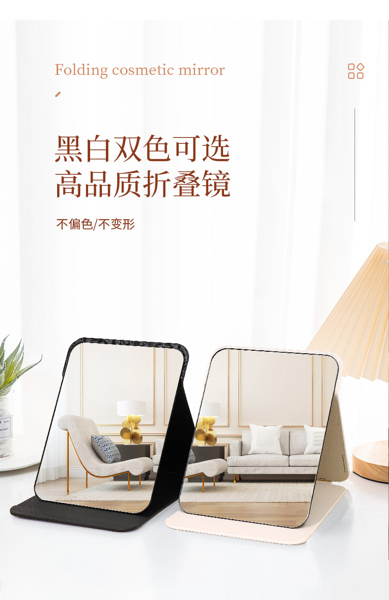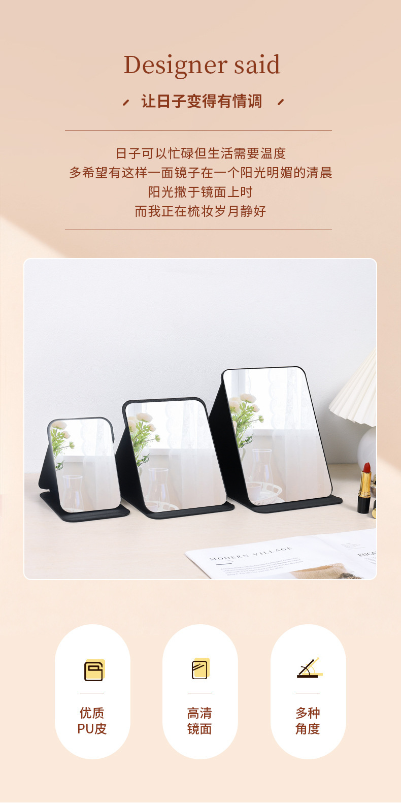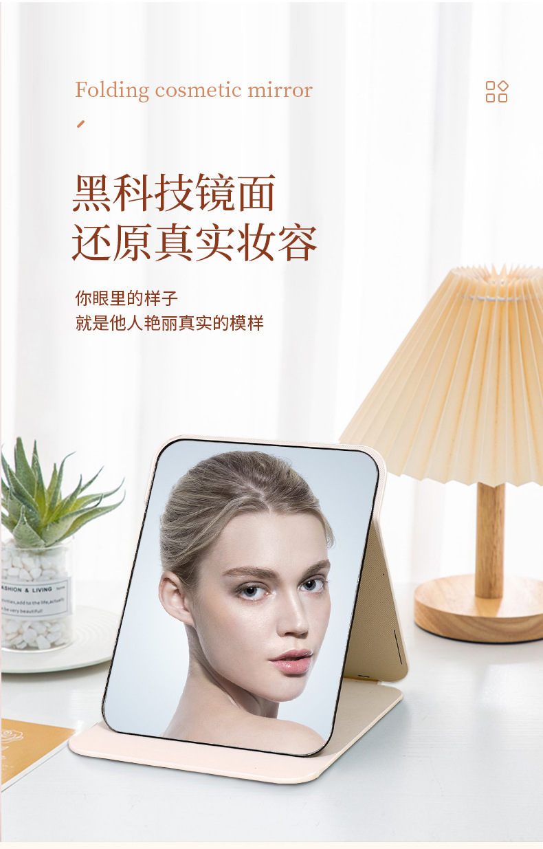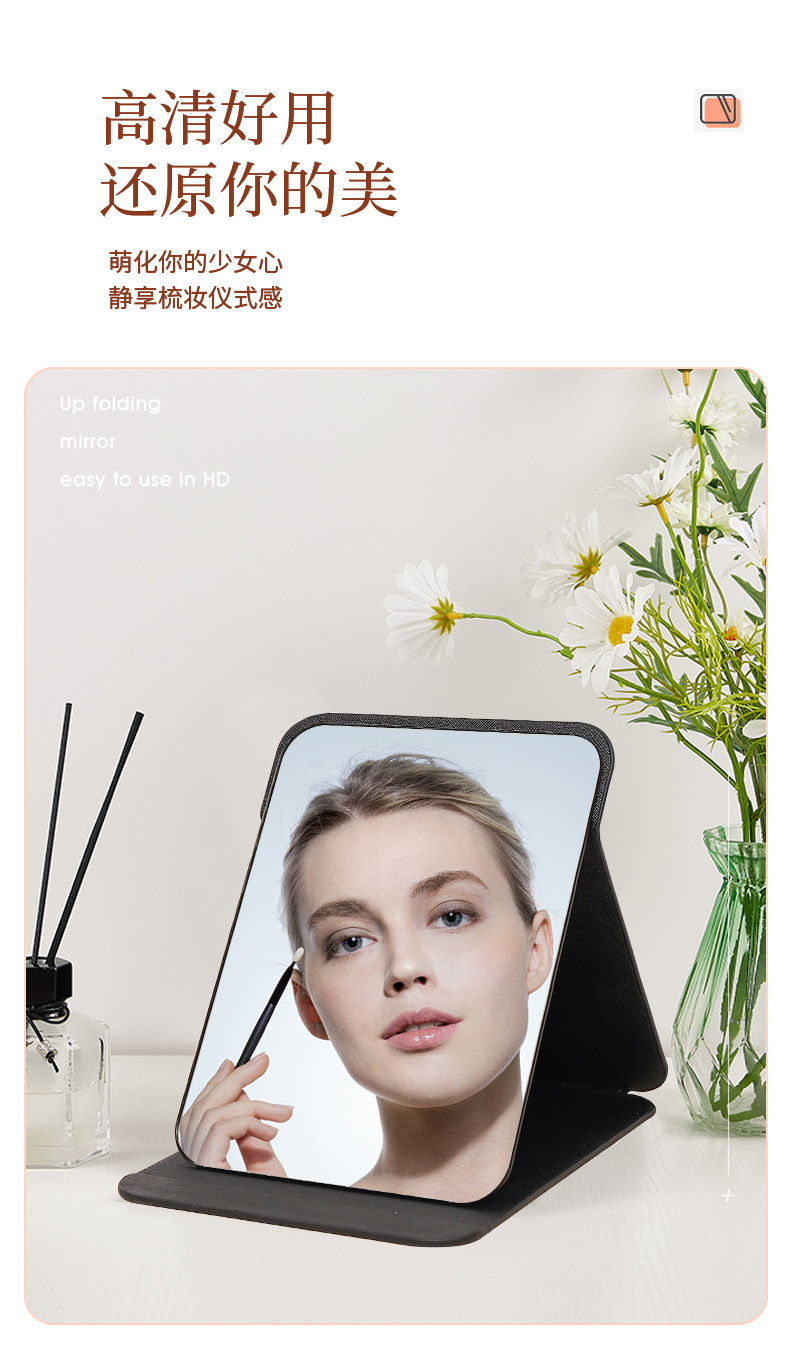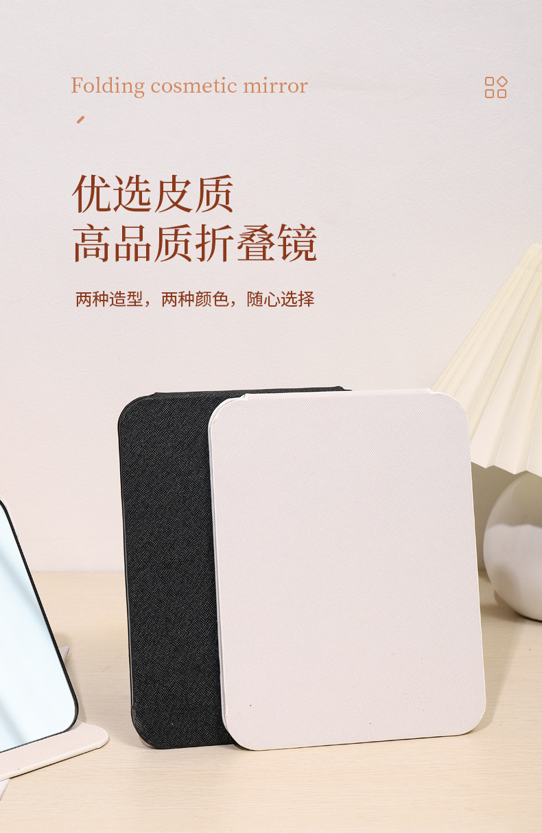 PU皮镜子化妆镜便携家用女随身梳妆镜台式桌面折叠镜学生宿舍镜子