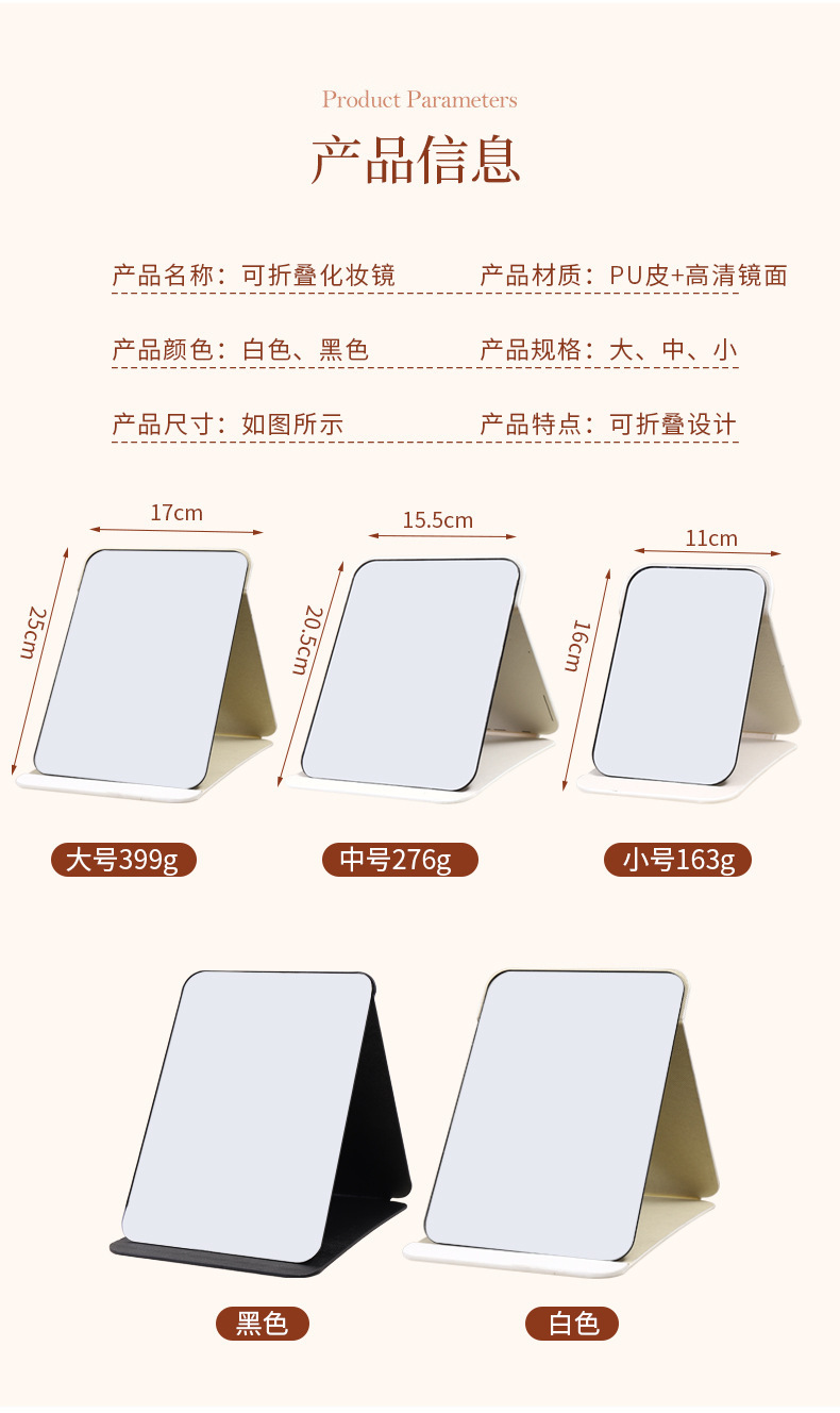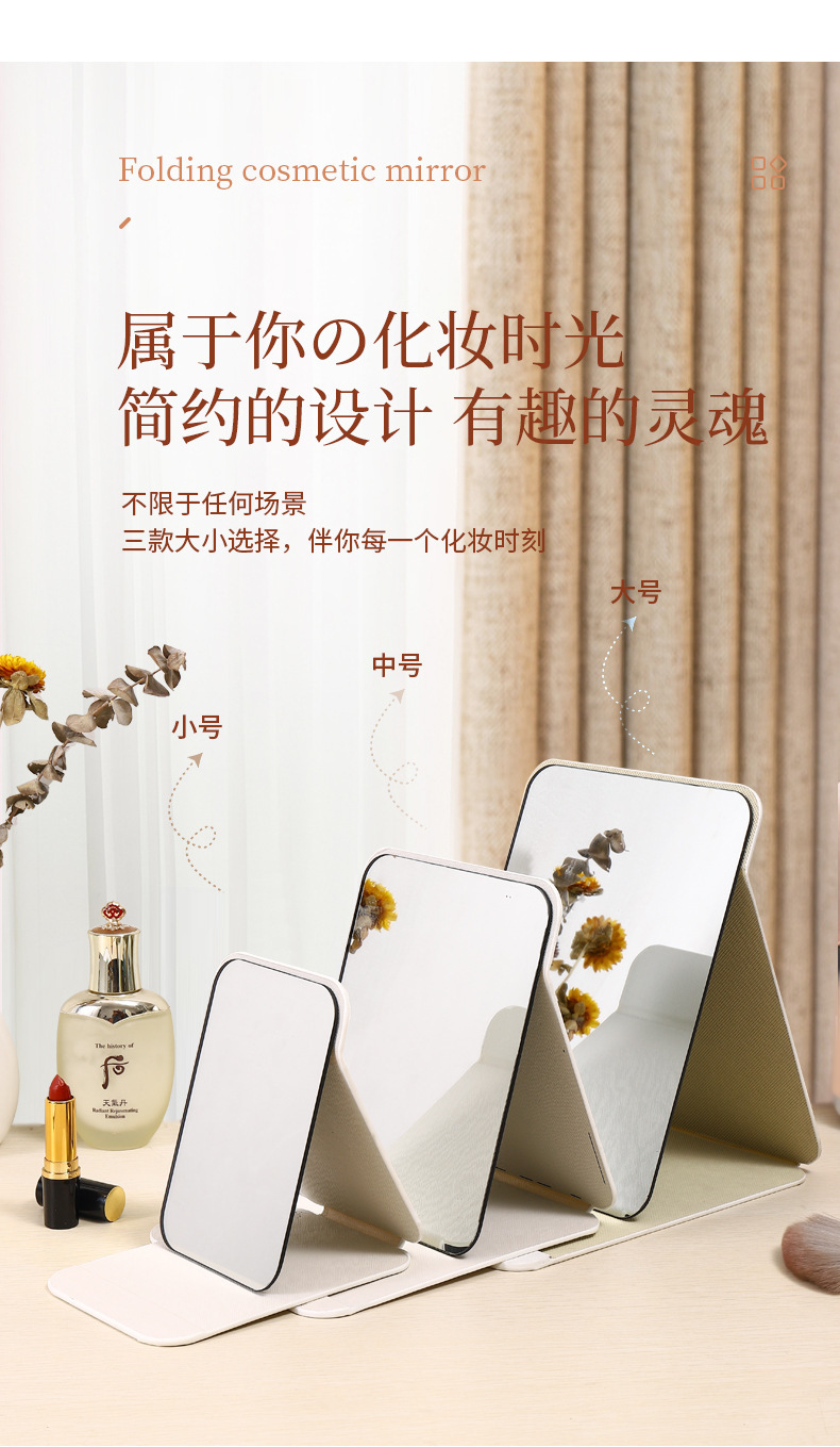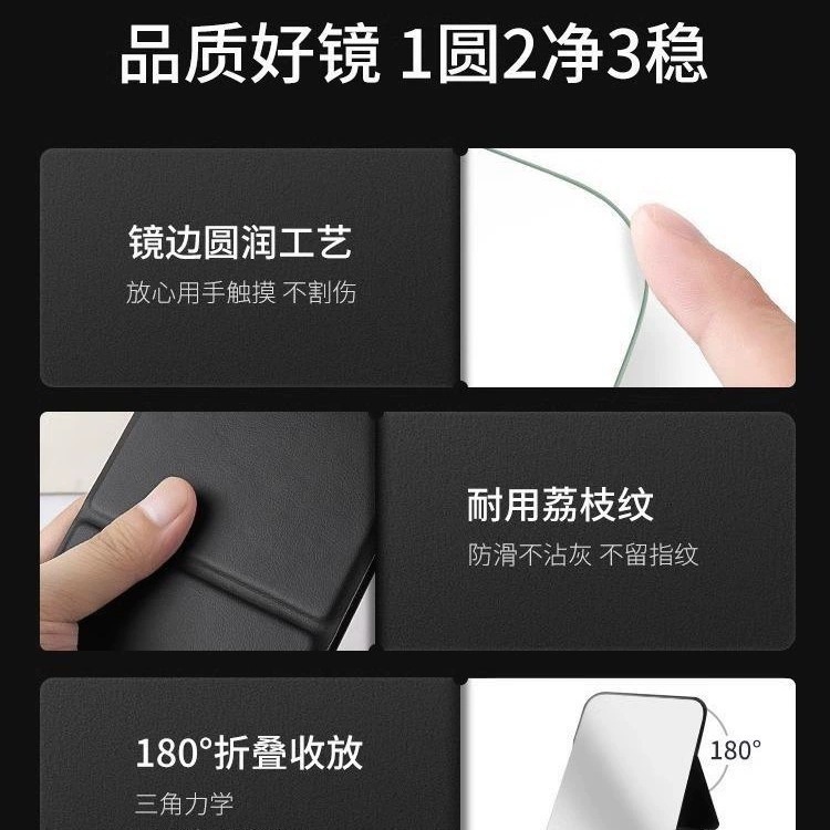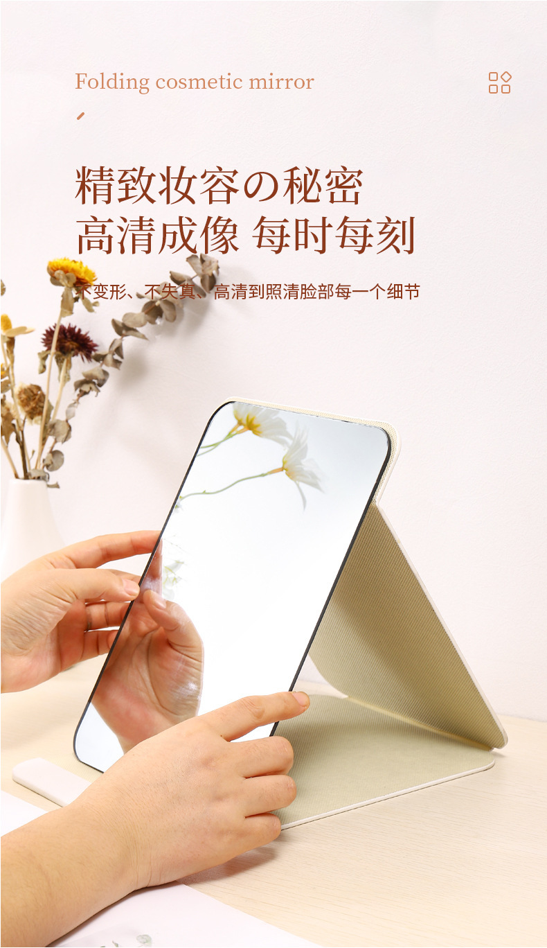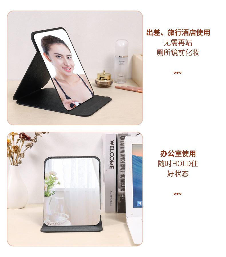 PU皮镜子化妆镜便携家用女随身梳妆镜台式桌面折叠镜学生宿舍镜子