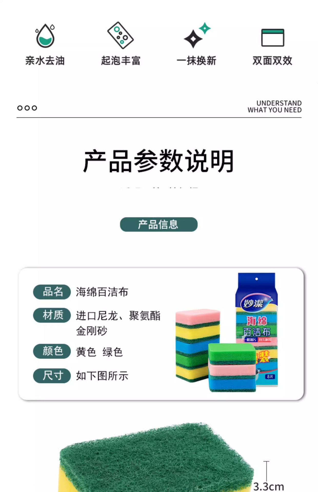 妙洁海绵百洁布家用厨房抹布刷锅海绵不沾油去污刷菜瓜布洗碗布