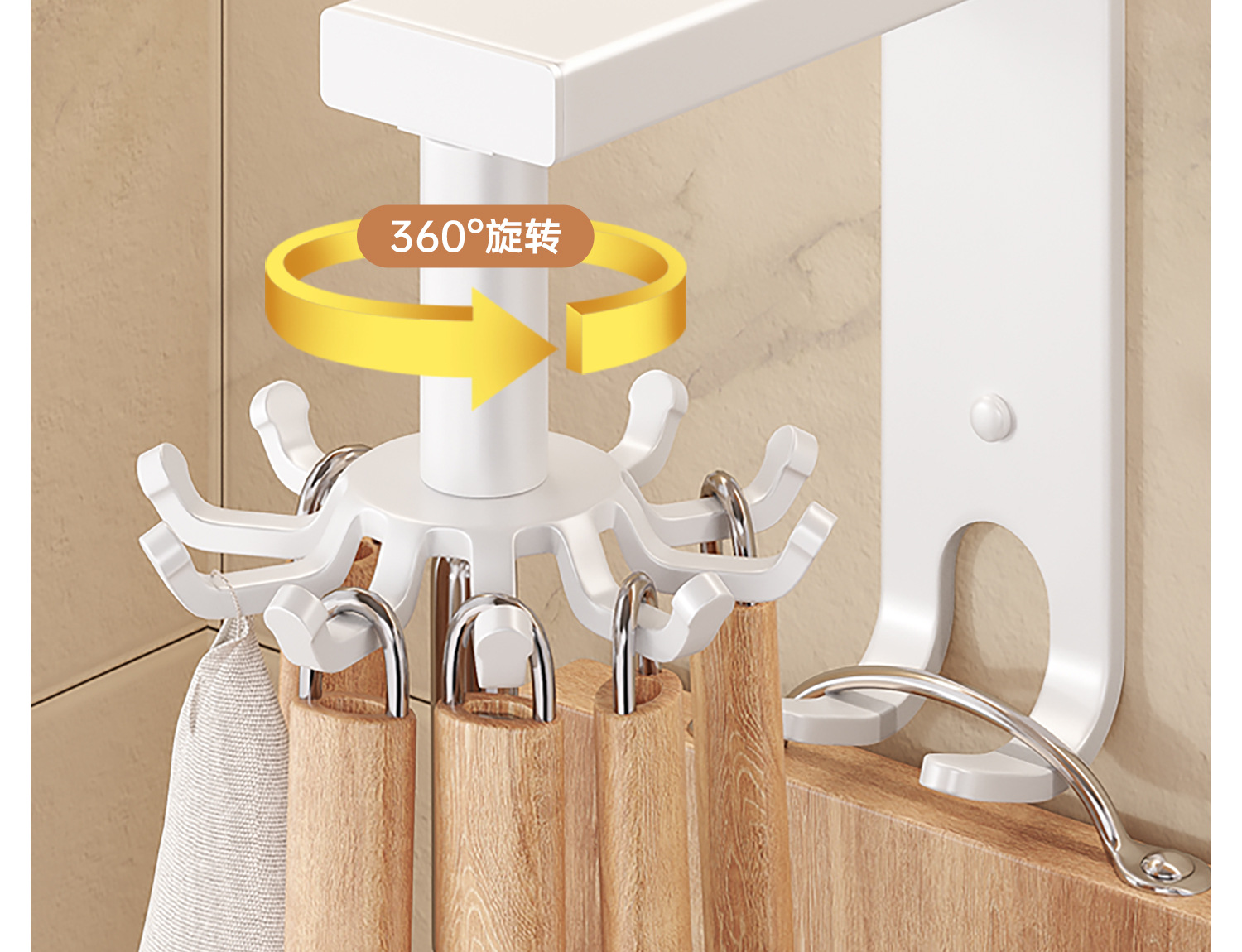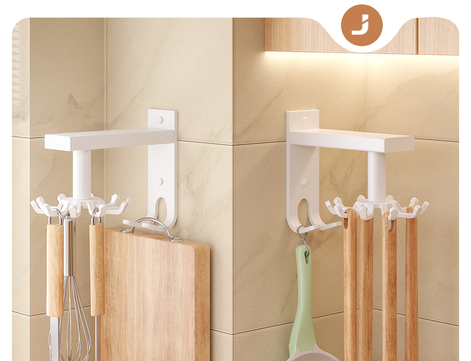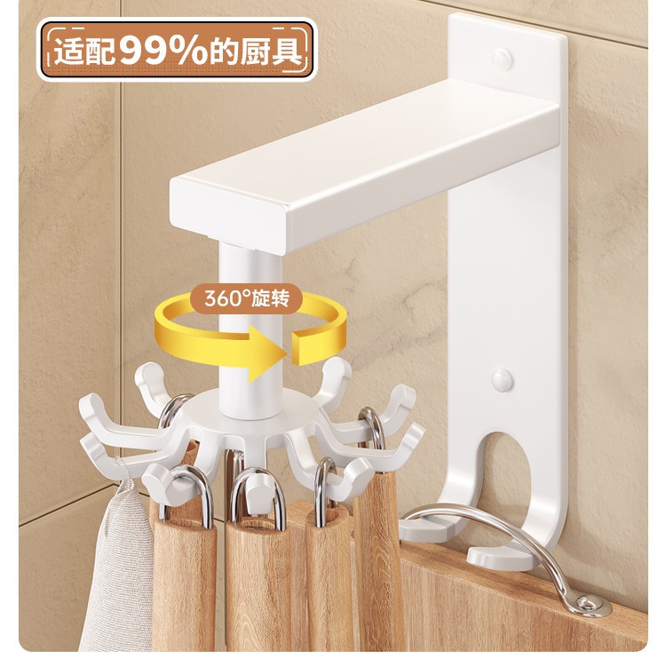 厨房旋转挂钩壁挂式置物架厨具收纳架锅铲勺子铲子免打孔挂架现货