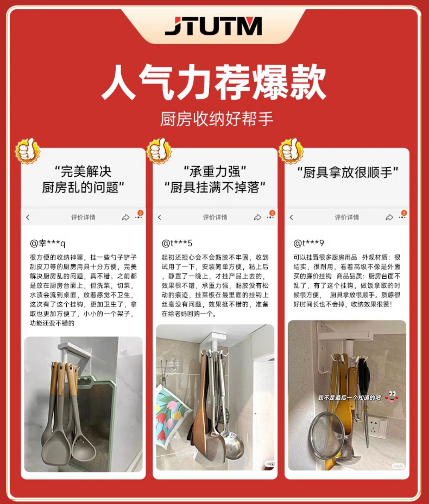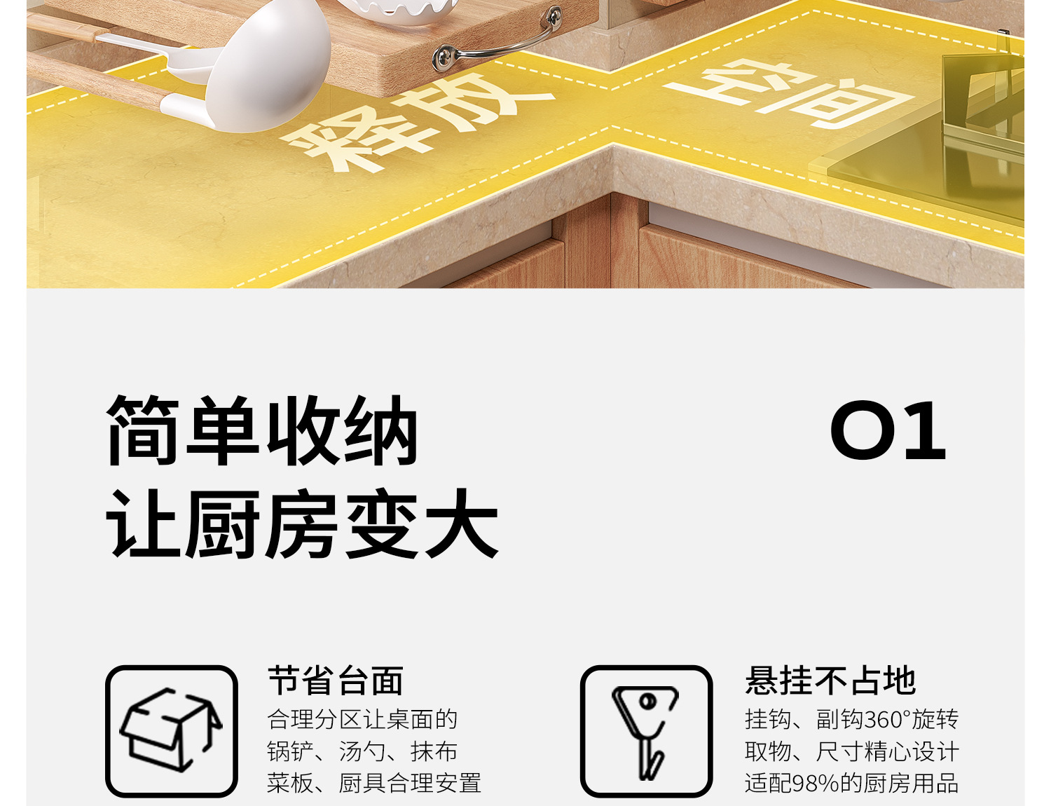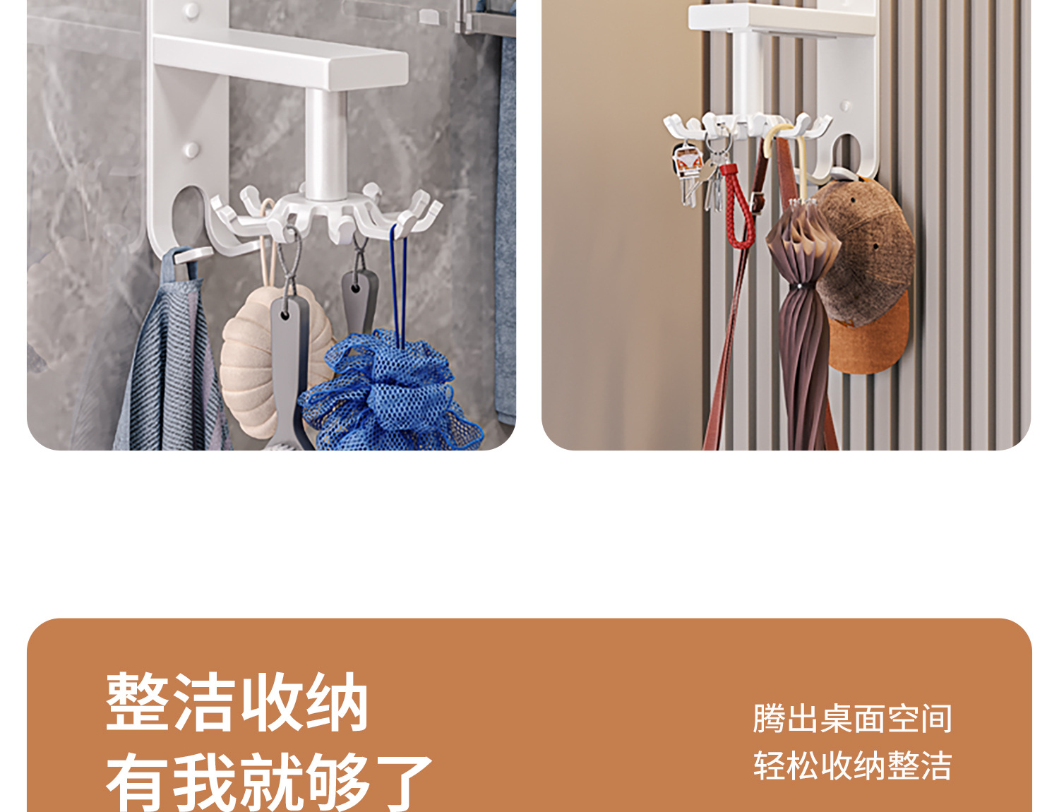厨房旋转挂钩壁挂式置物架厨具收纳架锅铲勺子铲子免打孔挂架现货