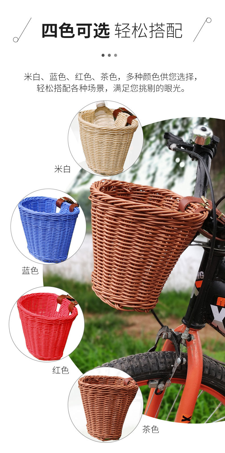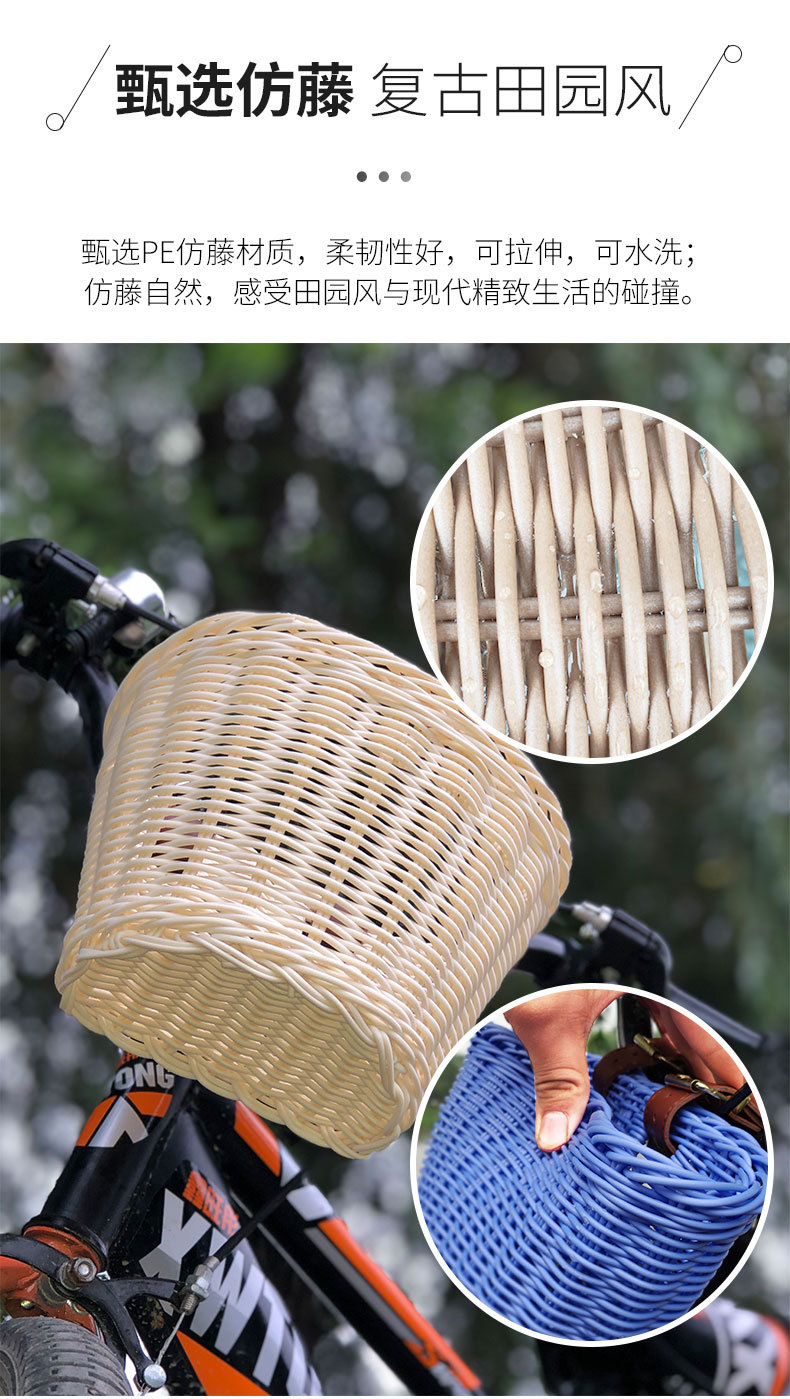 藤编篮子仿藤车篮收纳筐儿童自行车车篮车筐购物篮子可水洗收纳筐