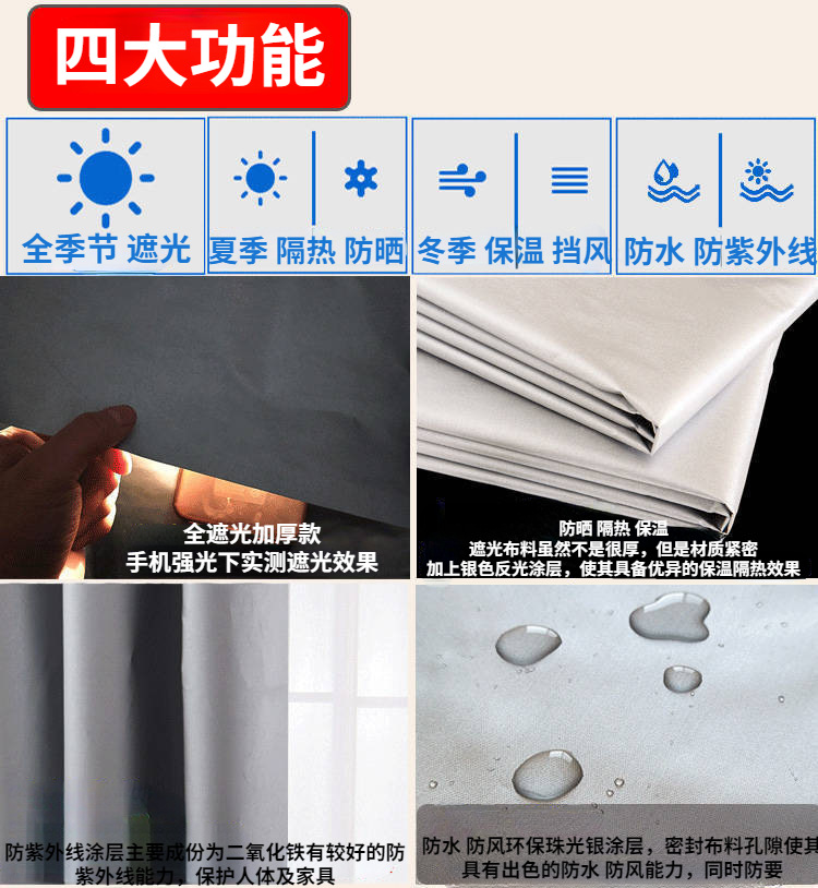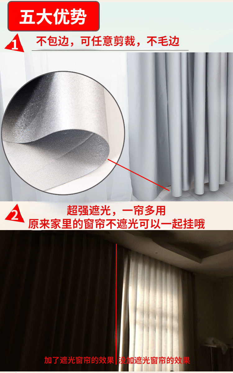 全遮光窗帘厂房出租屋防晒遮阳窗帘成品遮光布批发双面涂银遮阳布