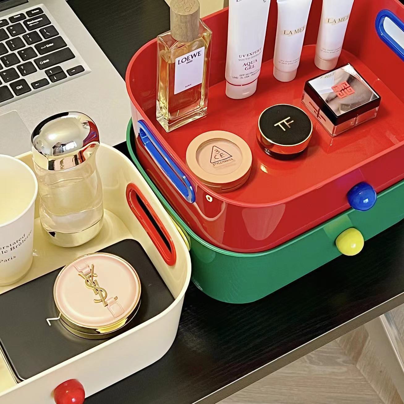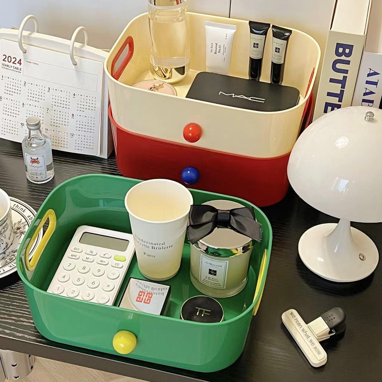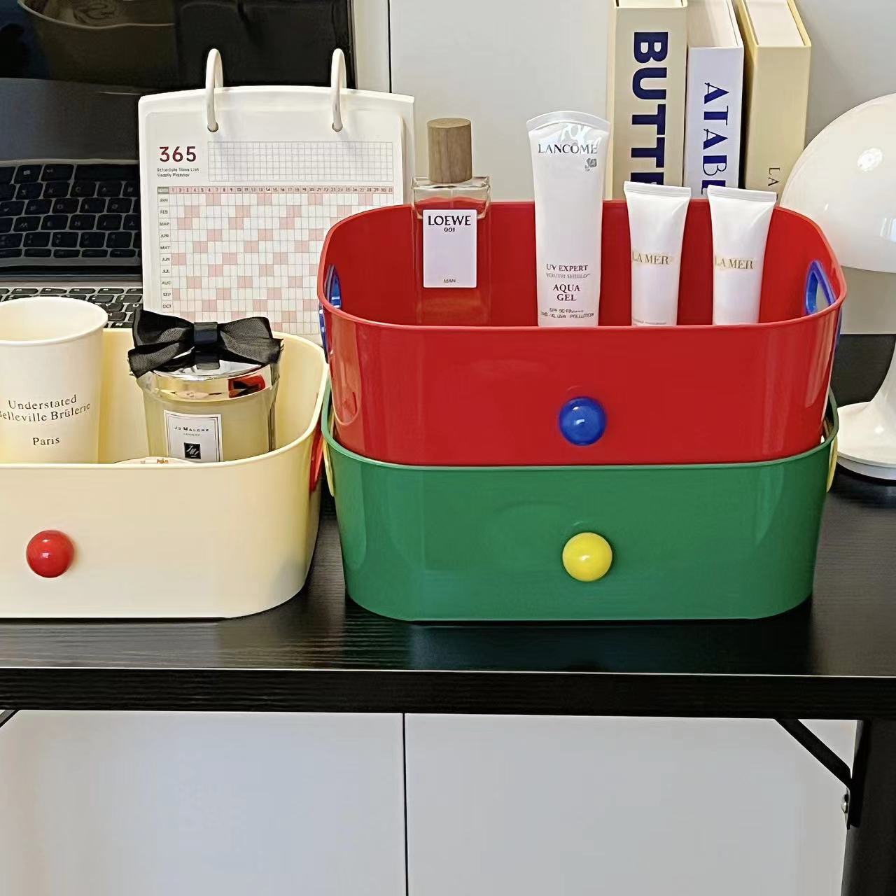 可爱收纳盒书桌收纳多巴胺桌面收纳盒工位整理玄关收纳神器收纳篮