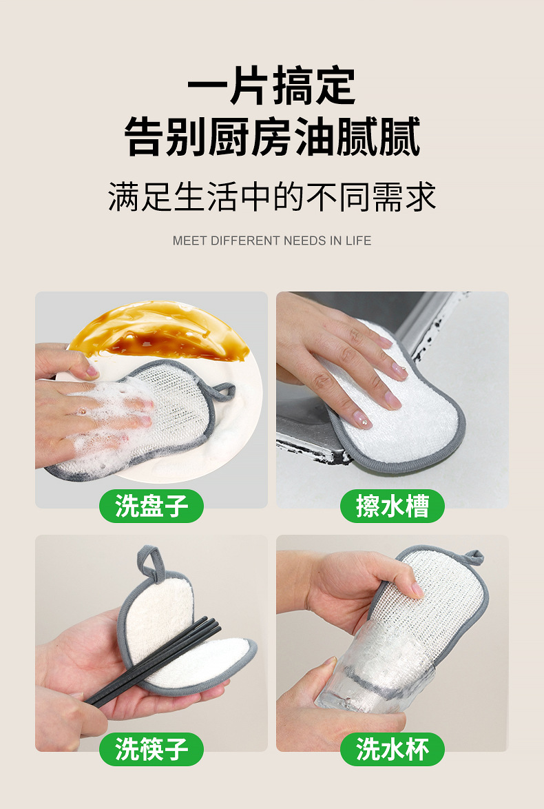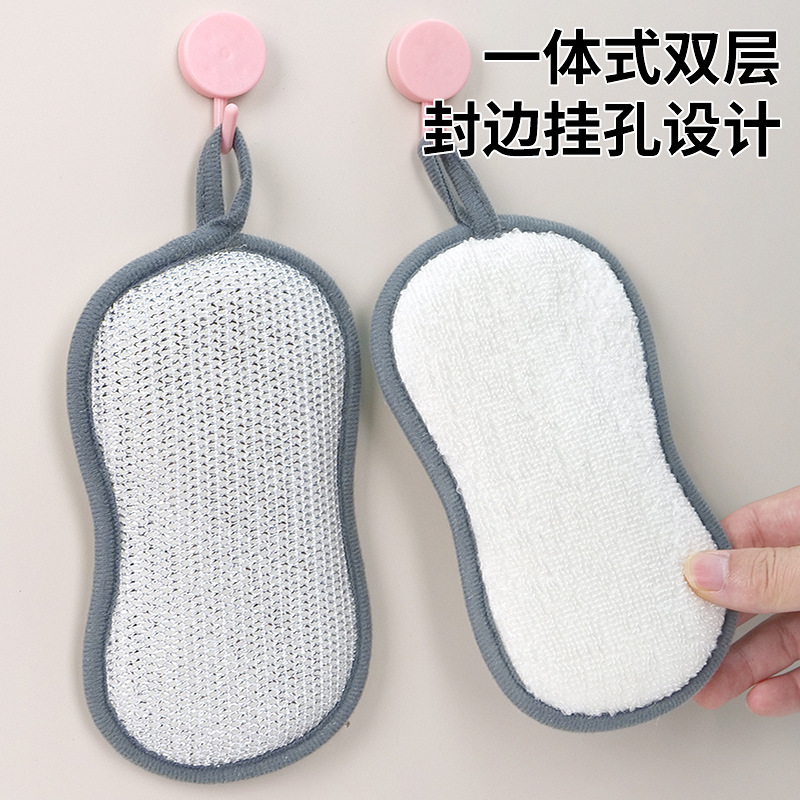 跨境新品8字竹纤维海绵擦钢丝双面加厚吸水魔力擦刷锅神器洗碗布