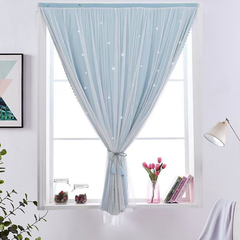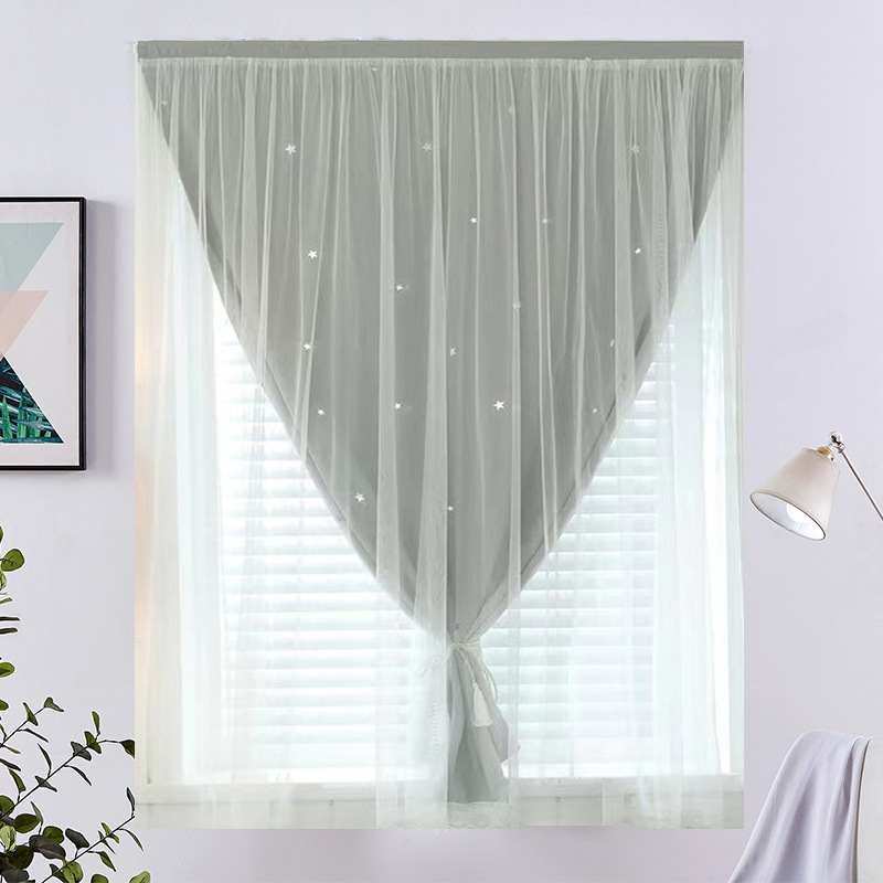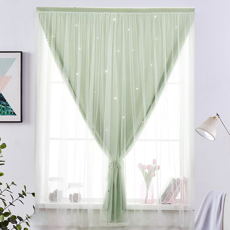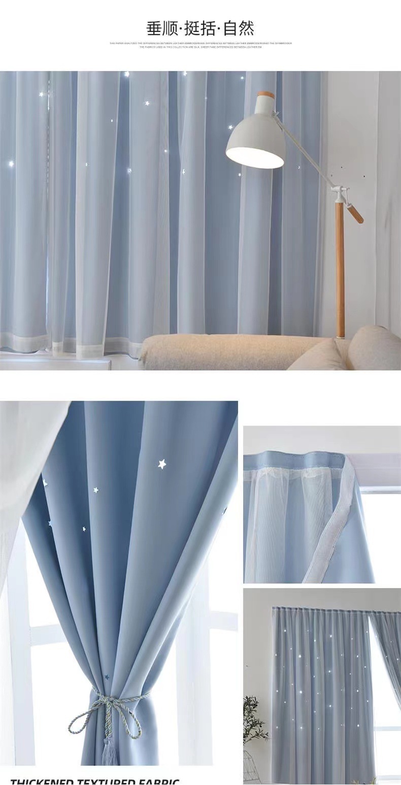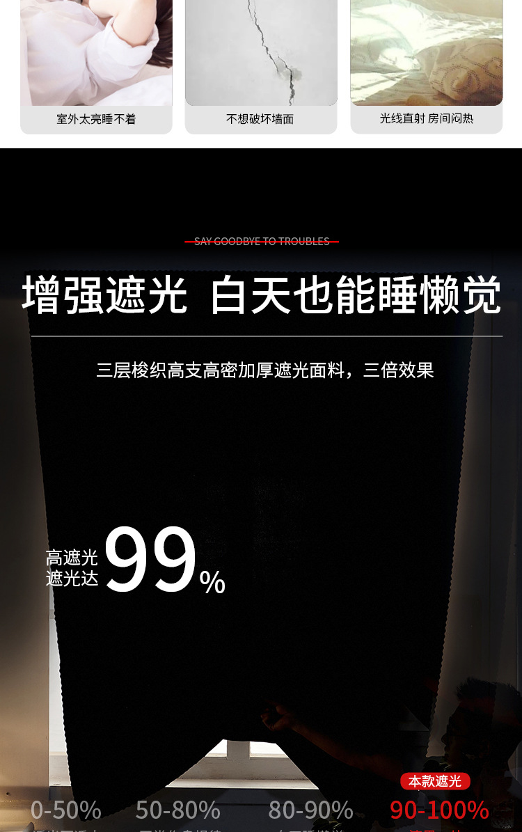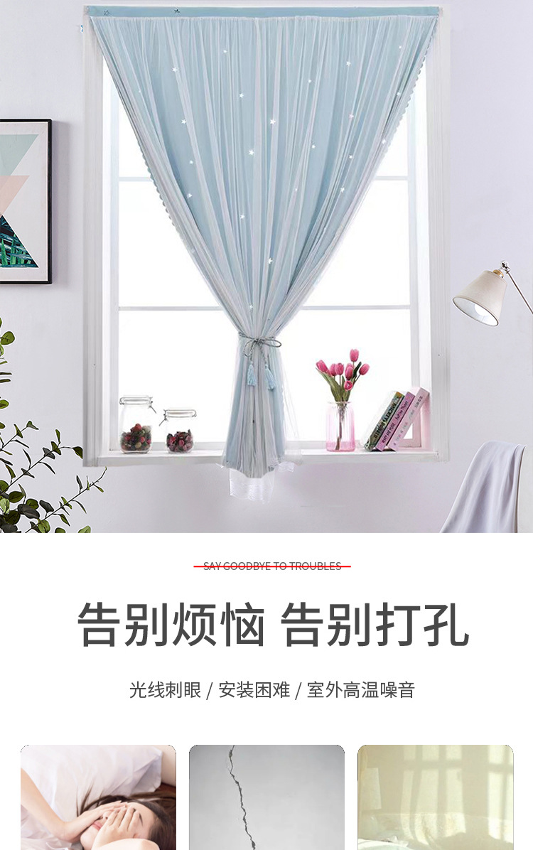 镂空加厚遮光窗帘魔术贴免打孔飘窗窗帘隔热遮光布遮阳成品窗帘布
