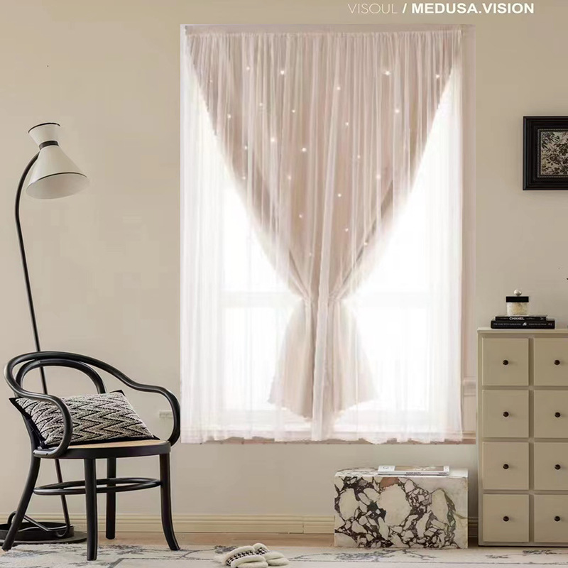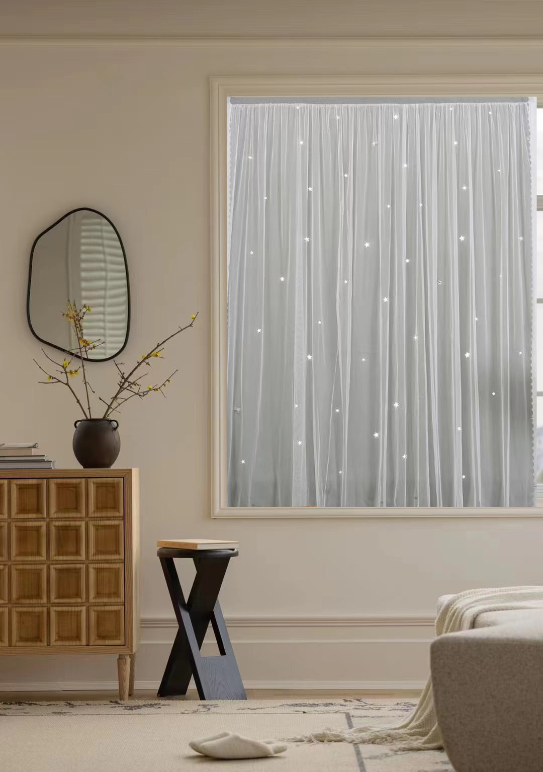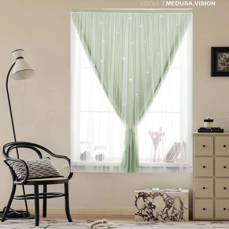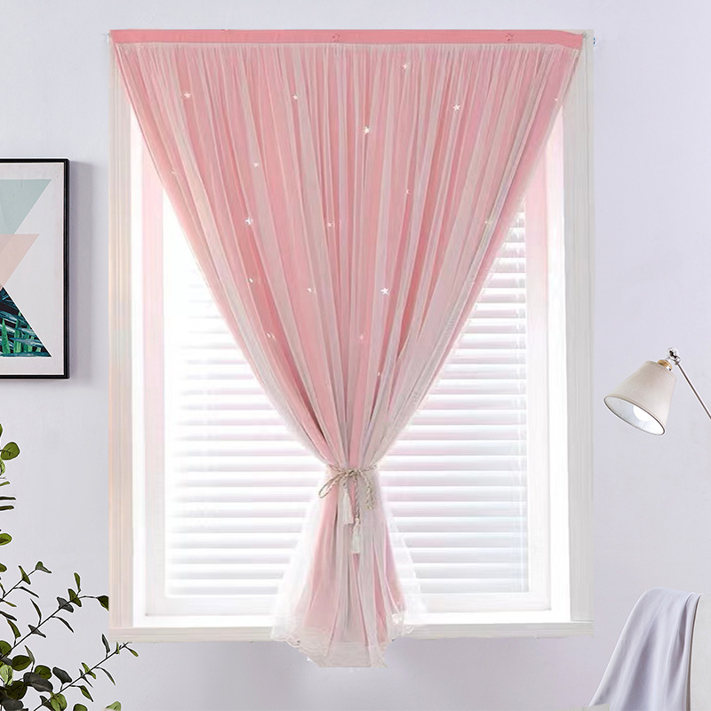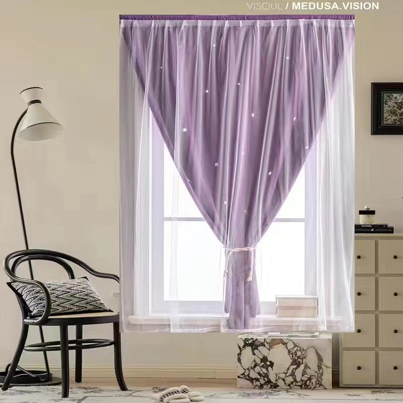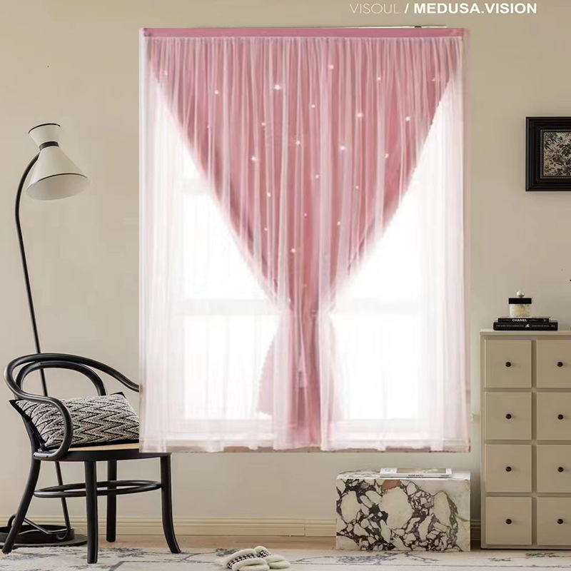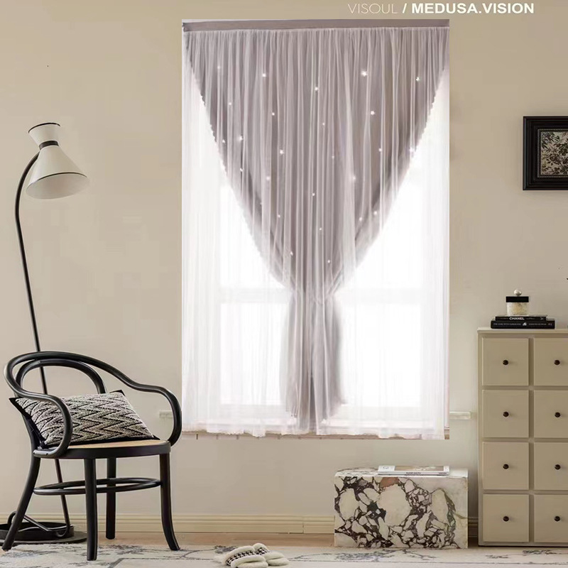 镂空加厚遮光窗帘魔术贴免打孔飘窗窗帘隔热遮光布遮阳成品窗帘布