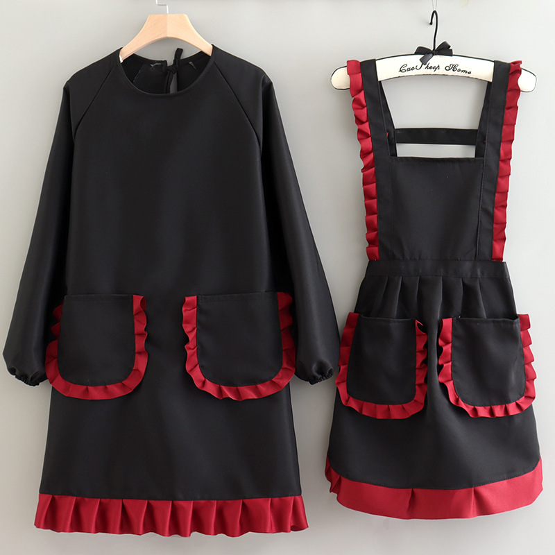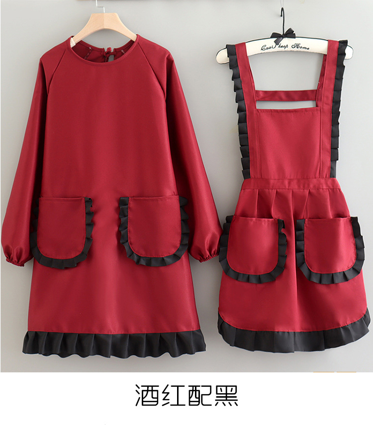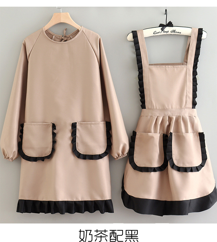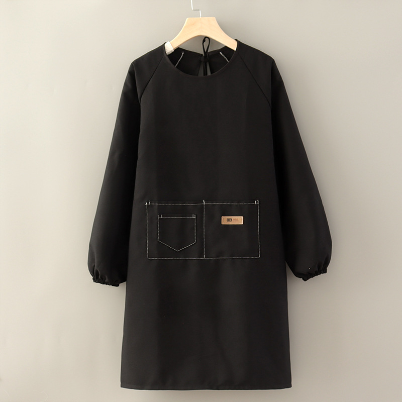 纯色上班工作服围裙女简约纯色家用罩衣长袖美甲工装耐磨透气