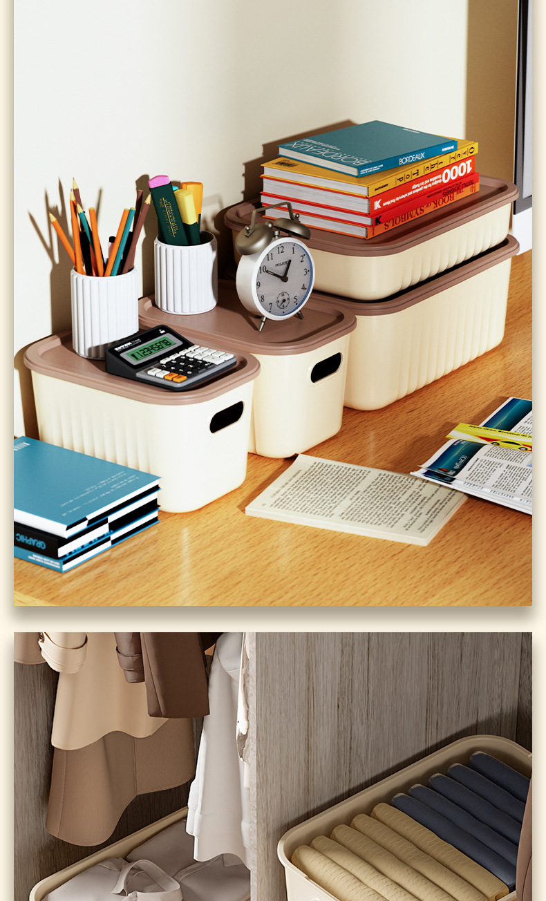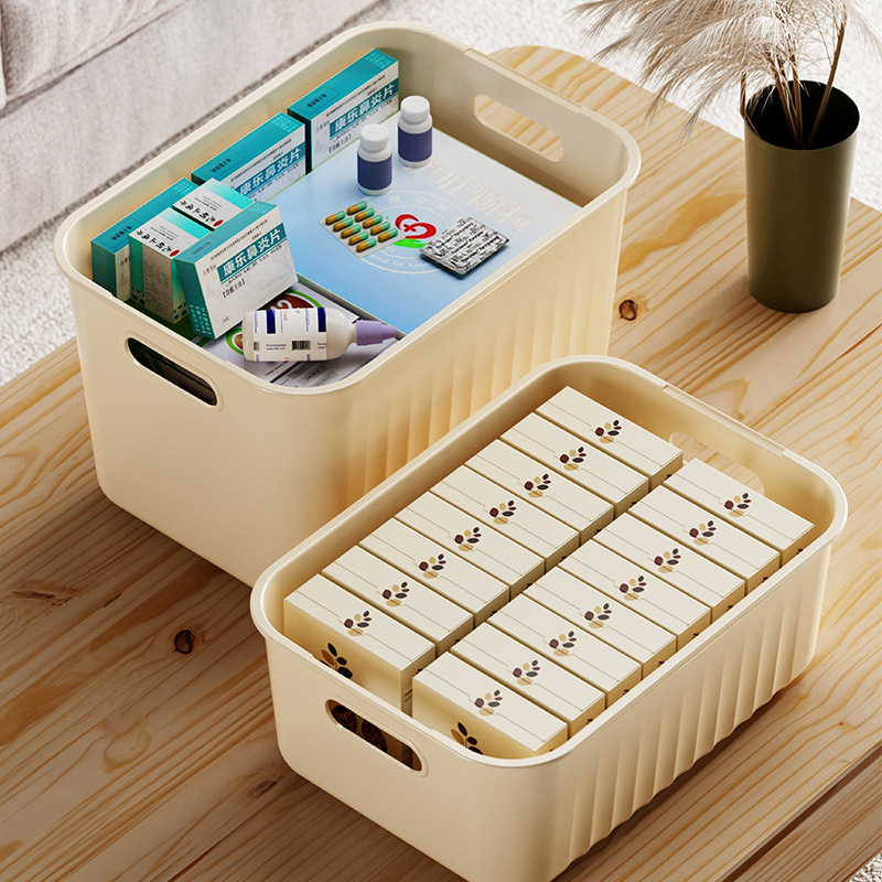 杂物桌面收纳盒家用办公室储物盒塑料带盖药盒整理盒文具收纳箱