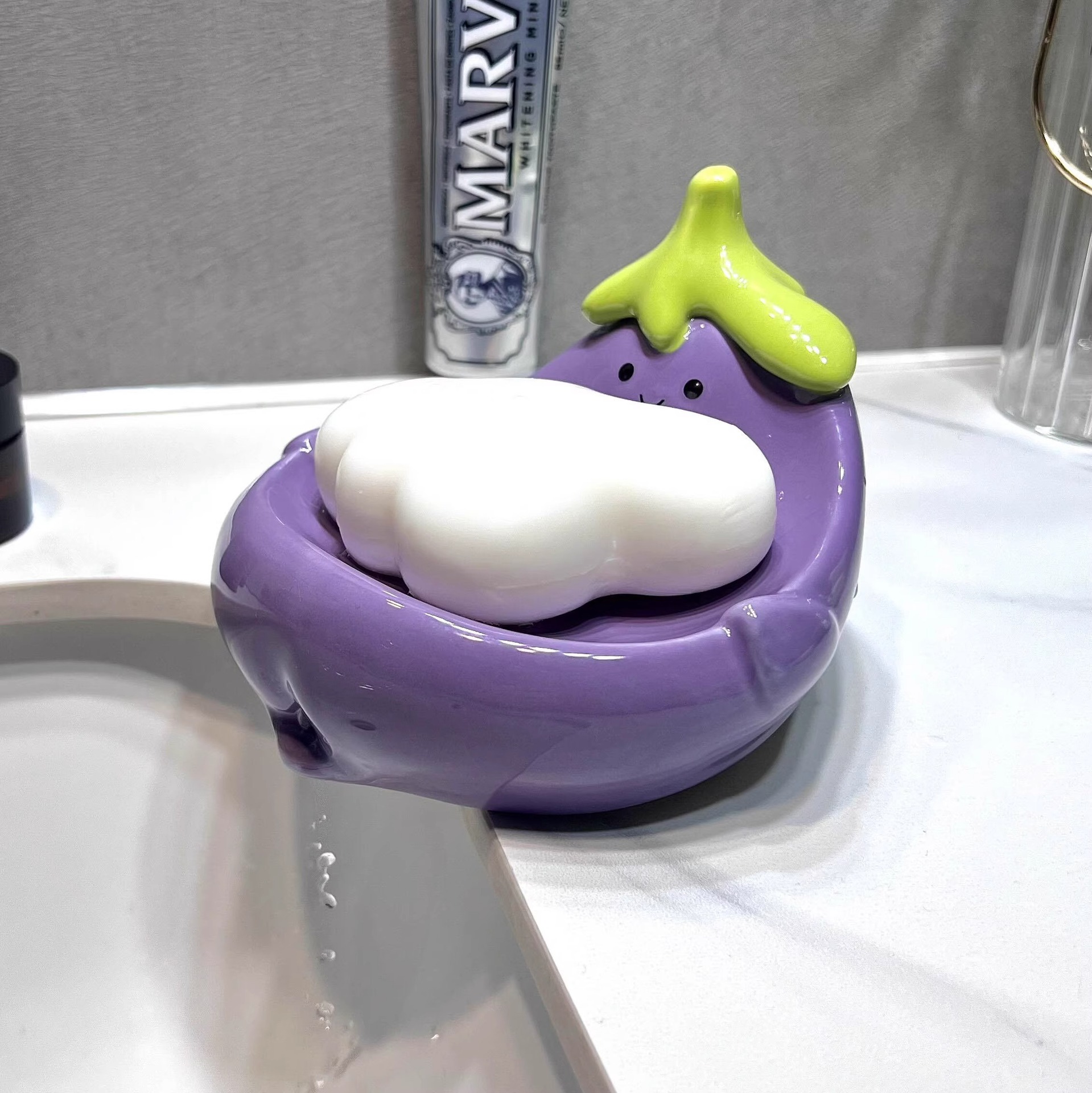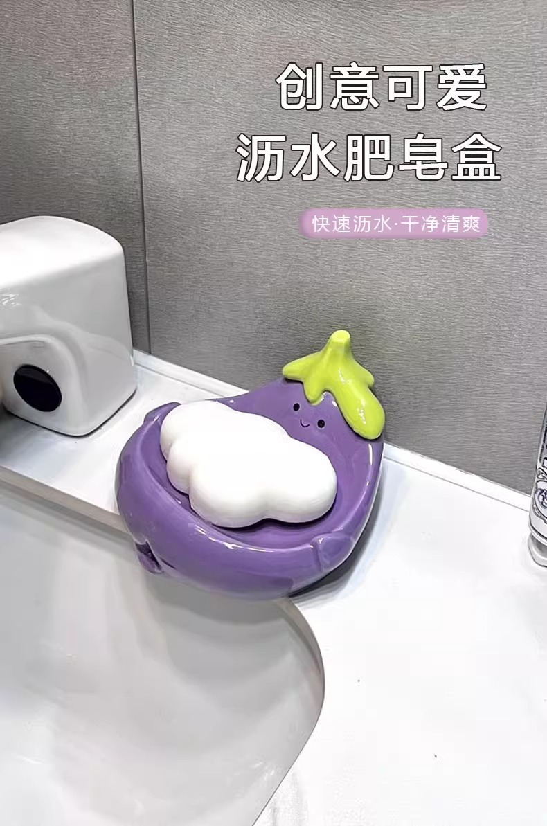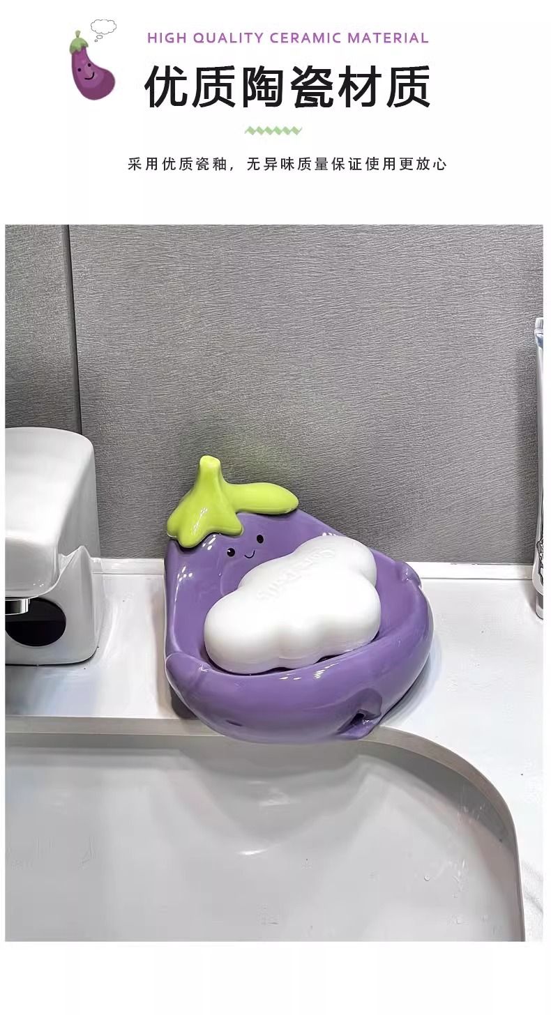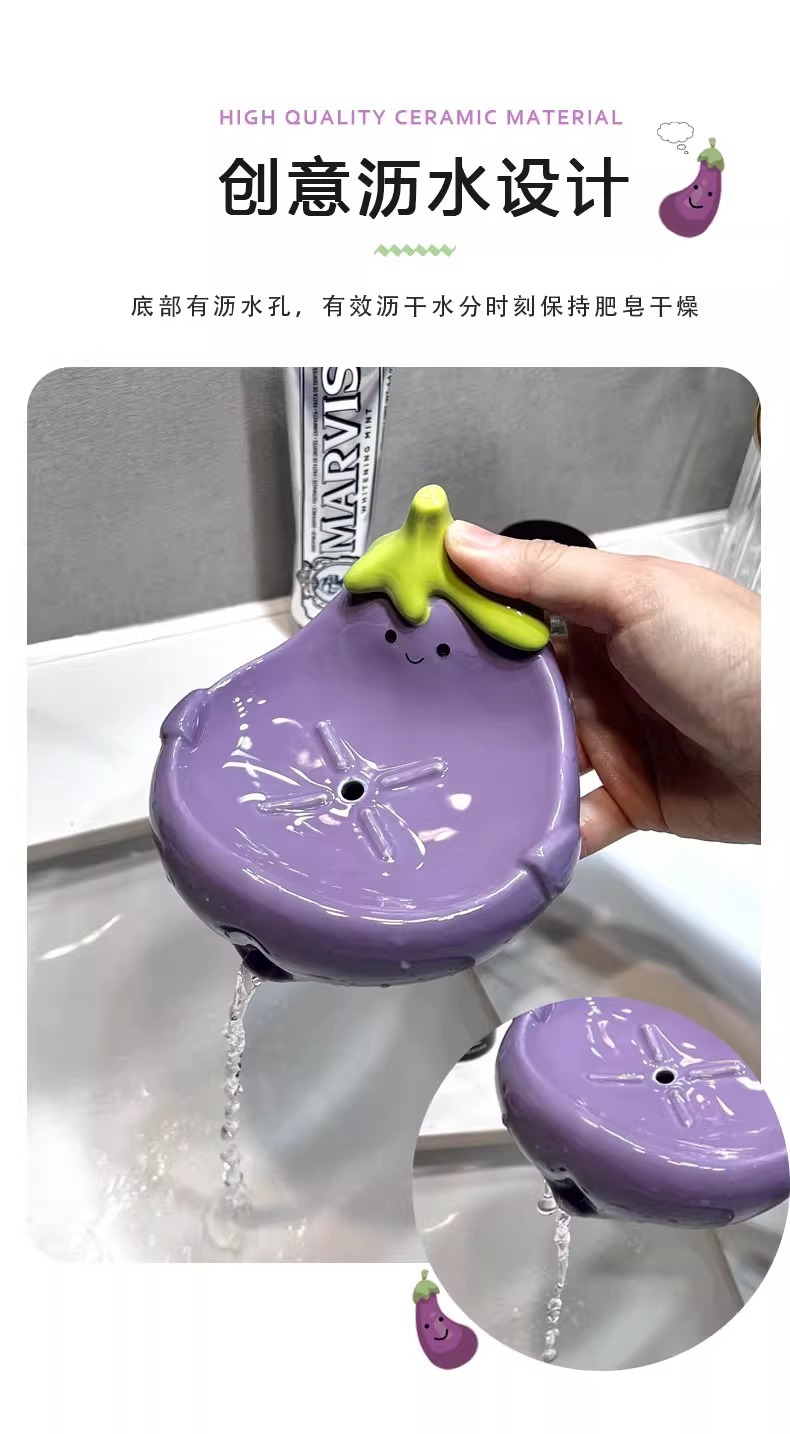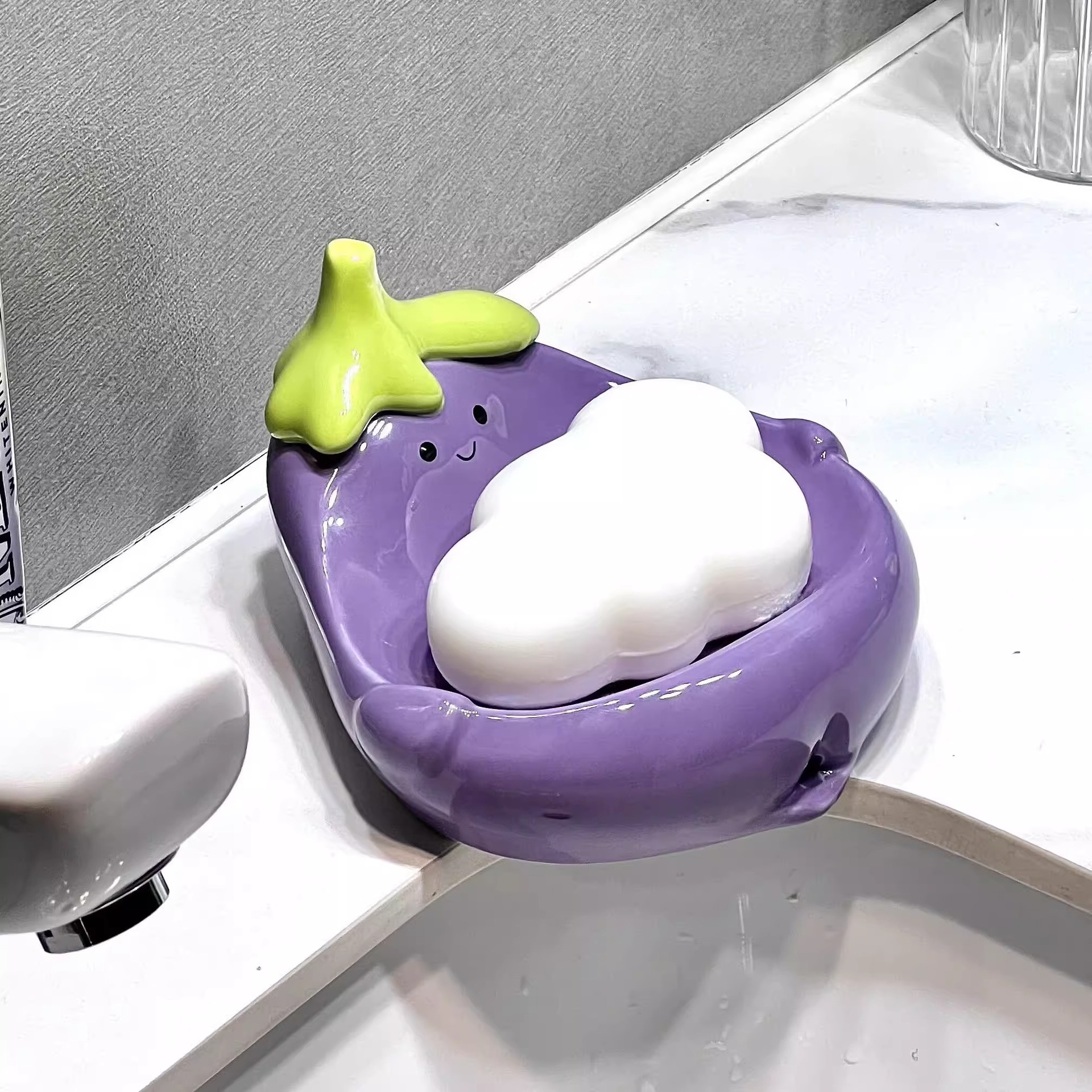 茄子肥皂盒卫生间洗漱台网红香皂盒可沥水不积水陶瓷皂碟收纳盒子
