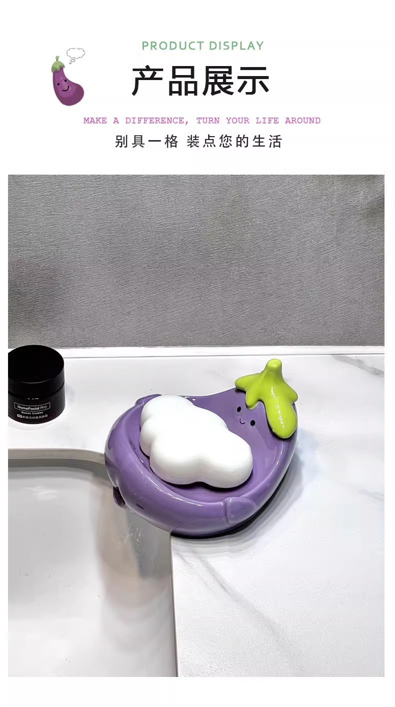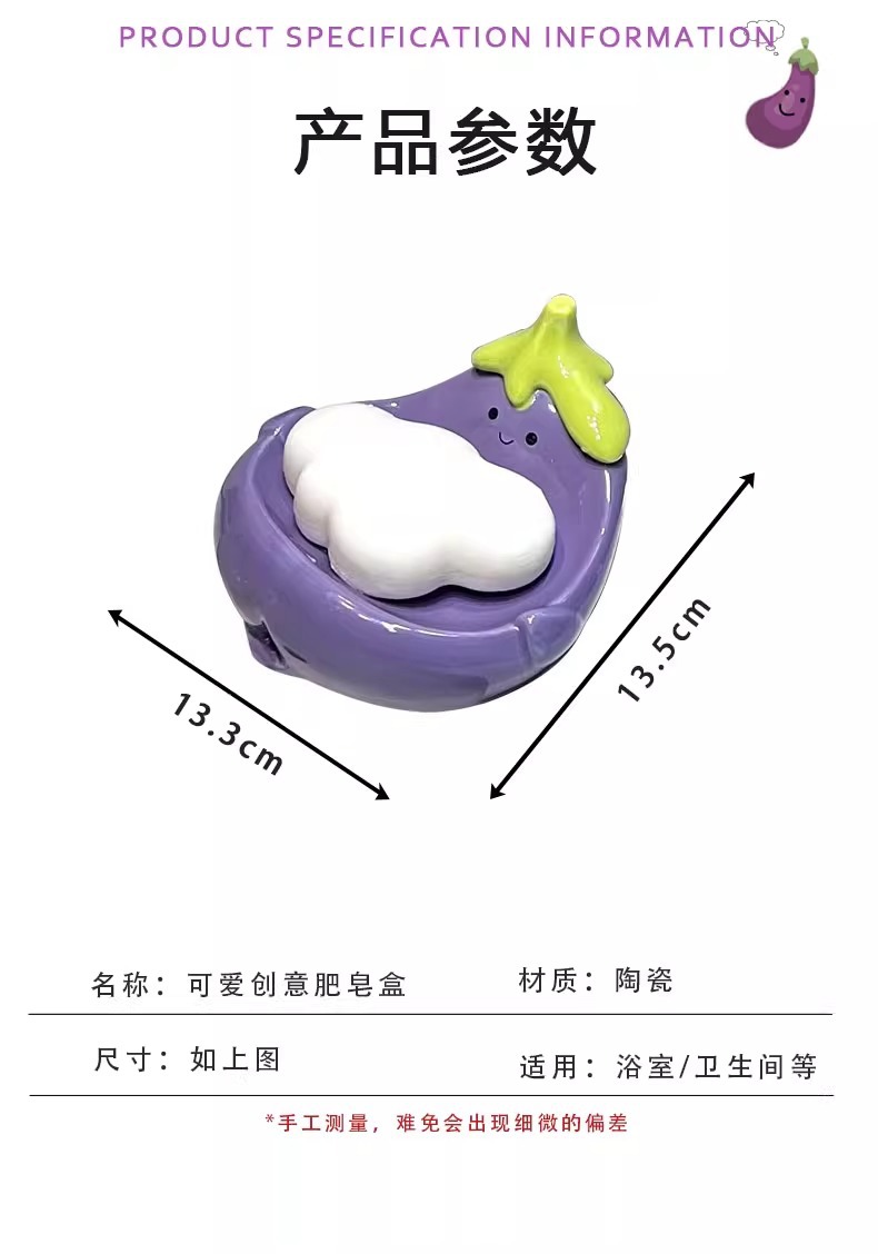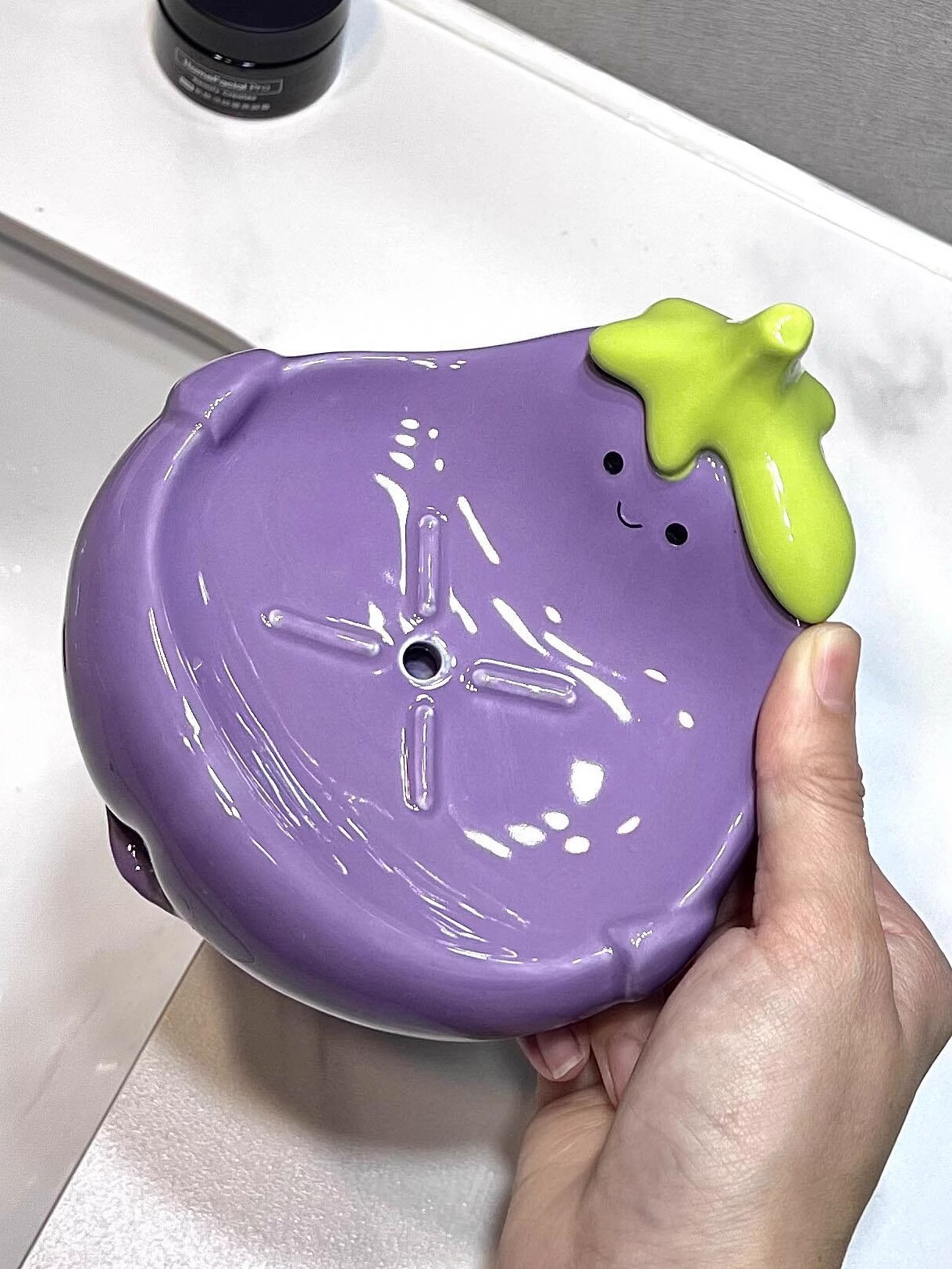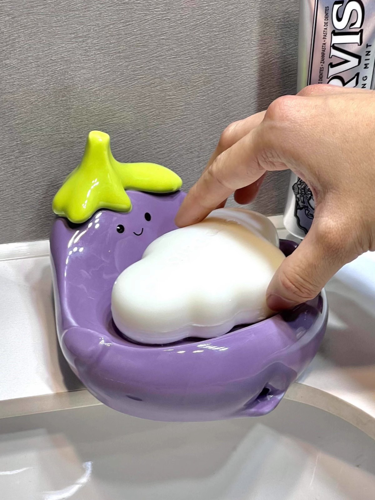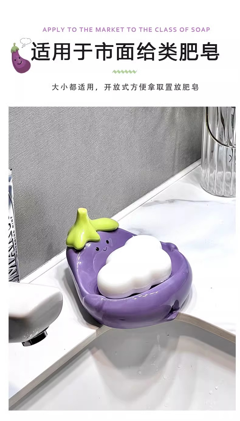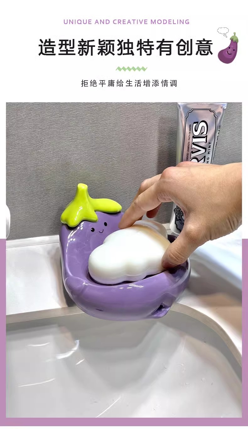 茄子肥皂盒卫生间洗漱台网红香皂盒可沥水不积水陶瓷皂碟收纳盒子