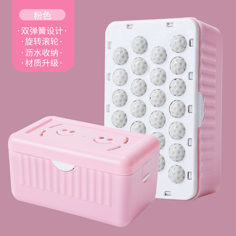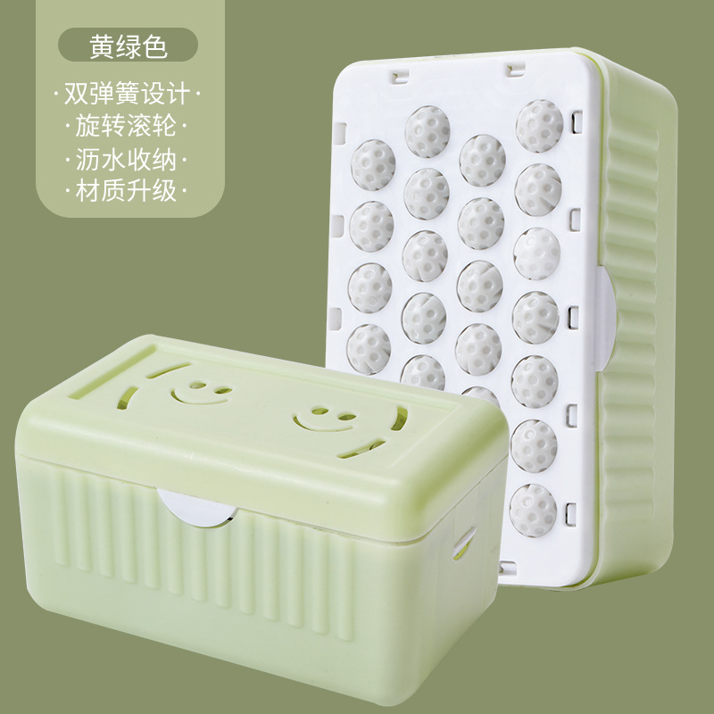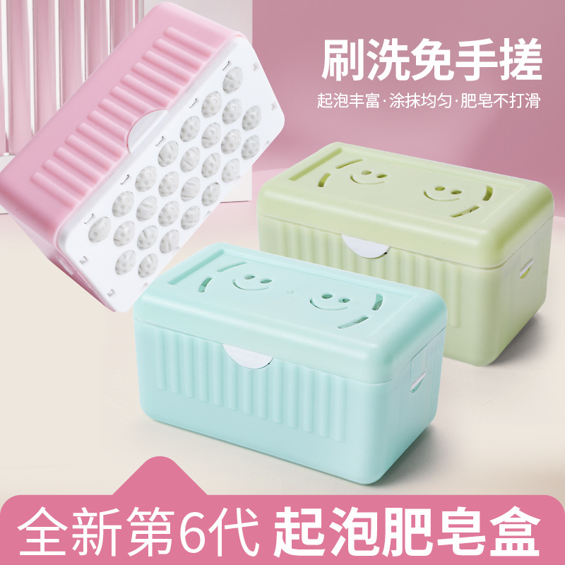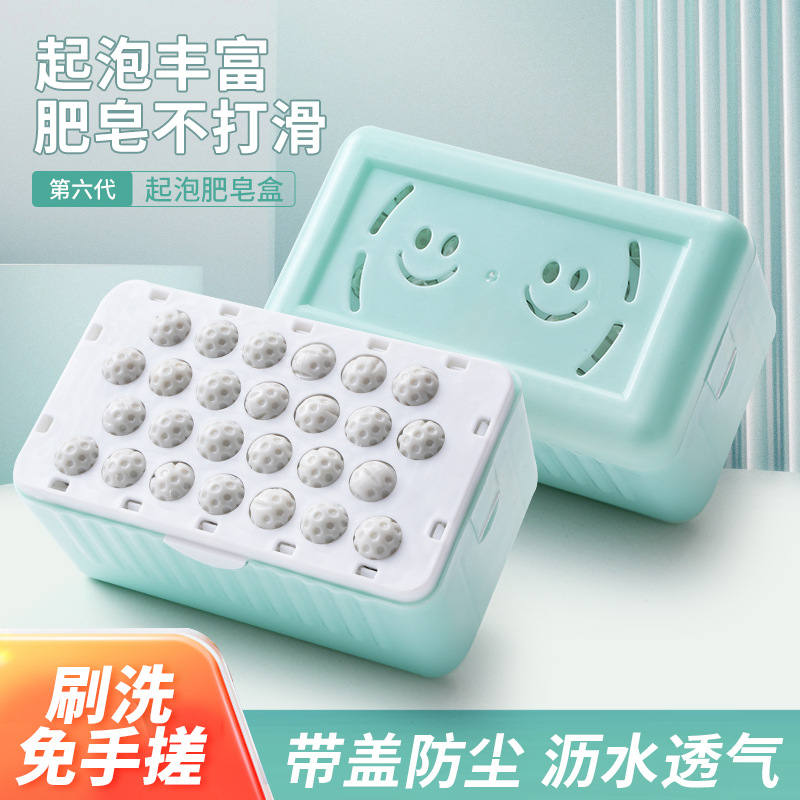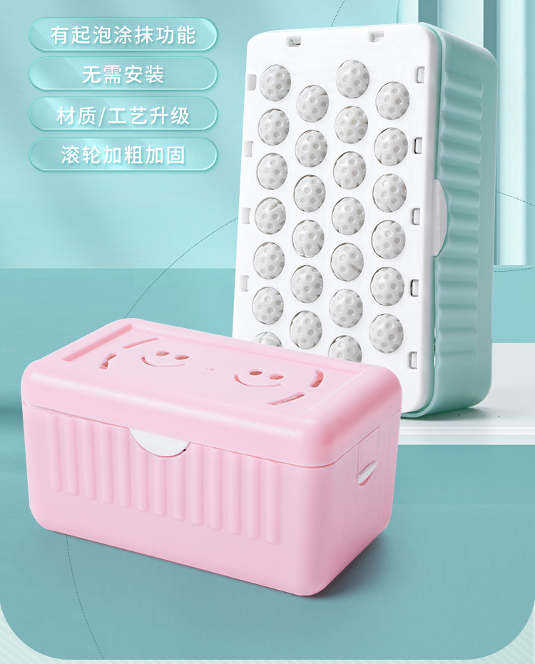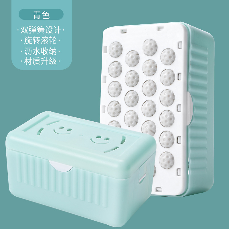 多功能起泡肥皂收纳盒带盖防尘沥水透气免手搓创意家用滚轮肥皂盒