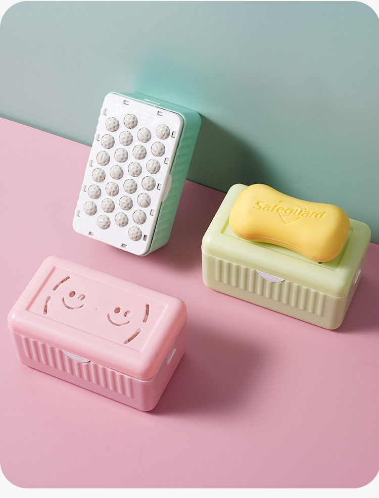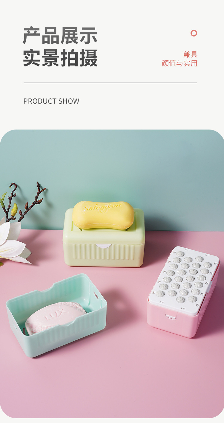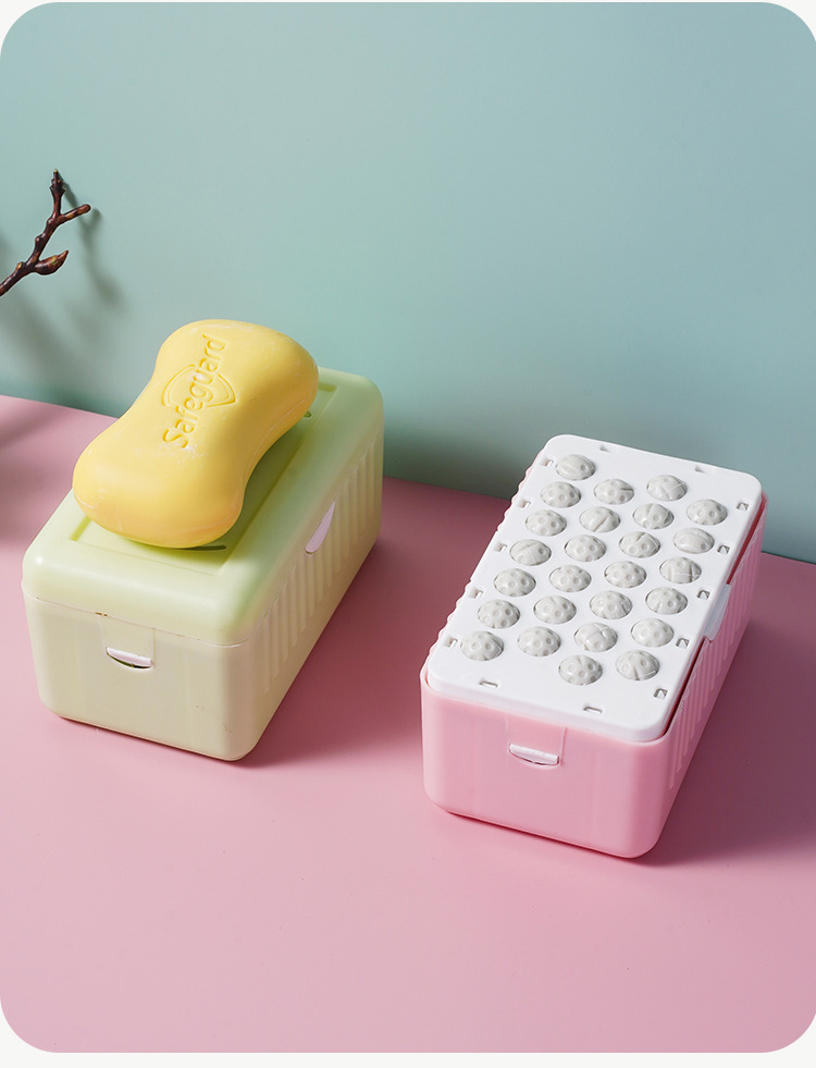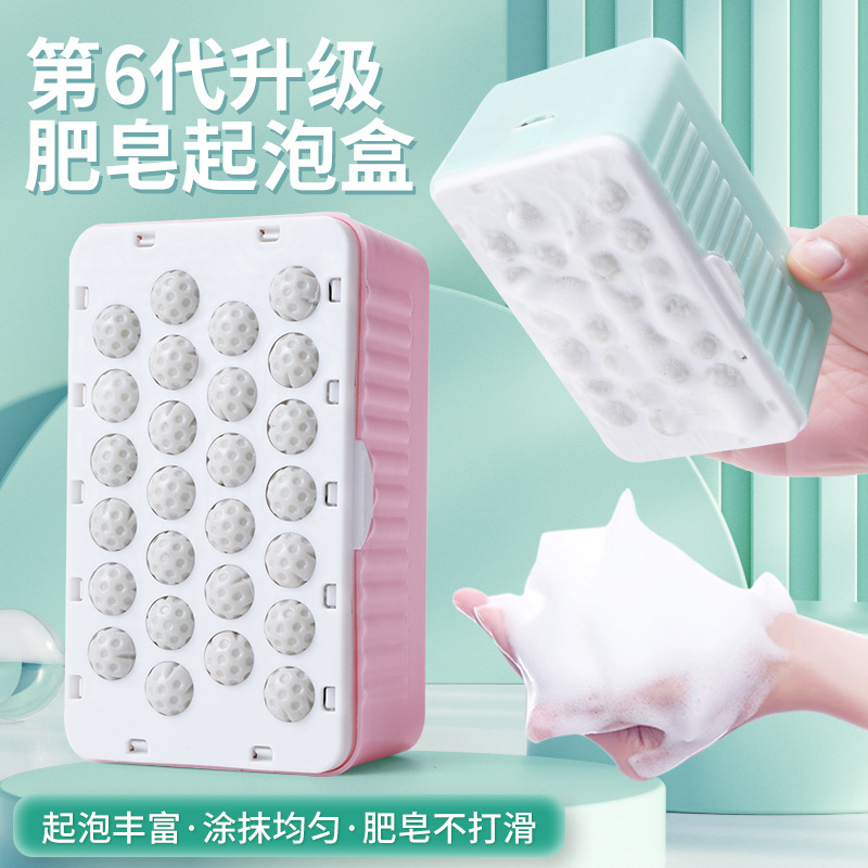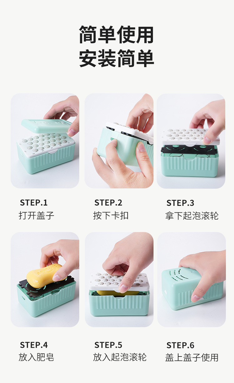 多功能起泡肥皂收纳盒带盖防尘沥水透气免手搓创意家用滚轮肥皂盒