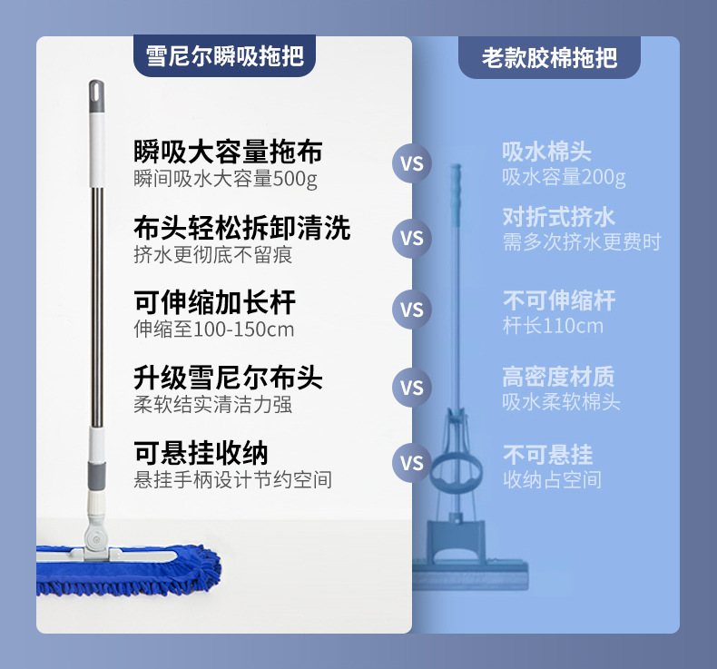 平板拖把雪尼尔大号尘推家用酒店墩布工厂大面积保洁干湿两用神器