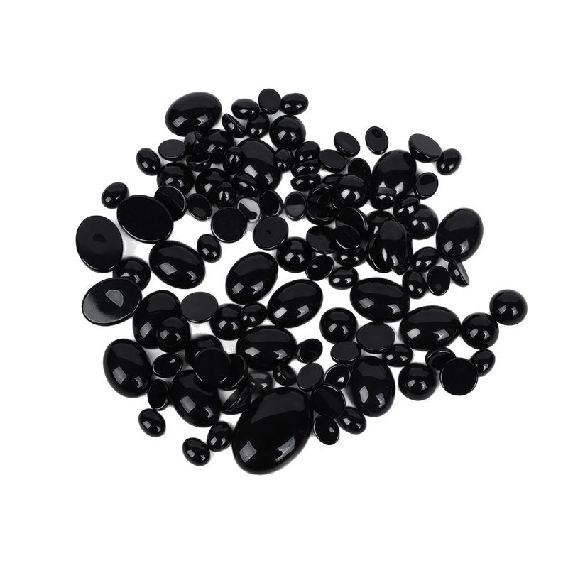 天然黑玛瑙黑色半圆圆形戒面贴片裸石镶嵌diy戒指吊坠饰品配件批