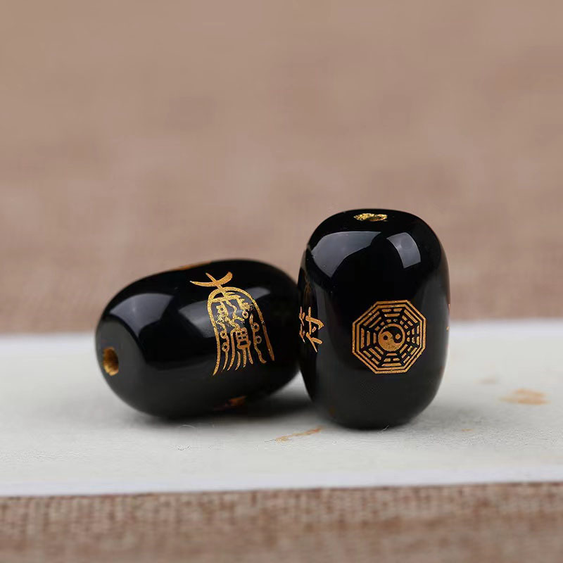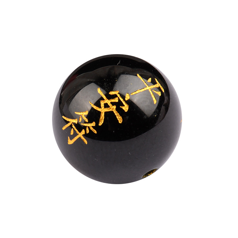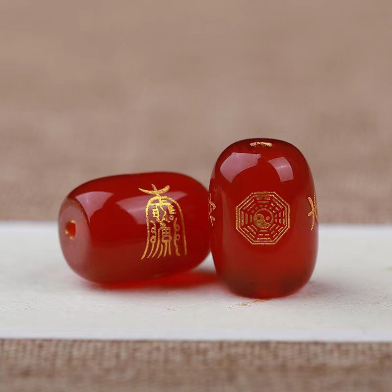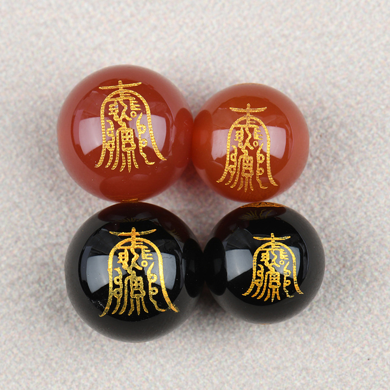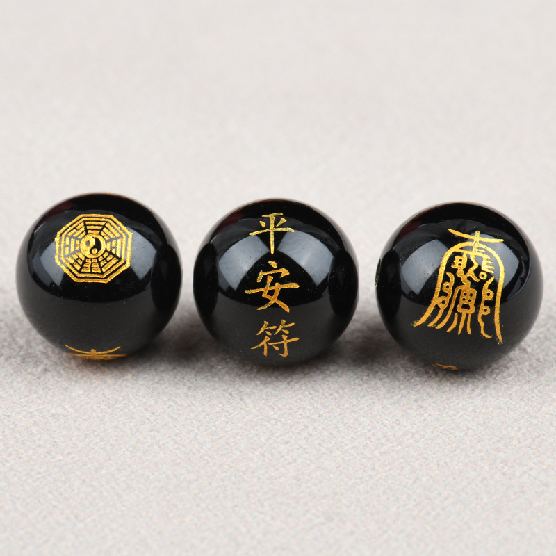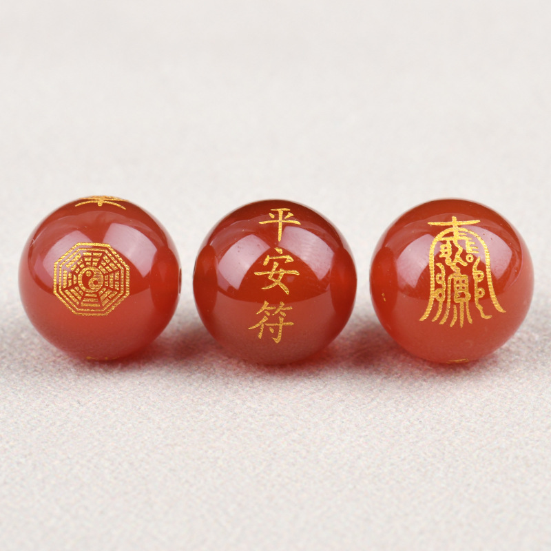 天然红黑玛瑙平安符烫金字雕刻圆珠穿手链散珠子配饰DIY配件饰品