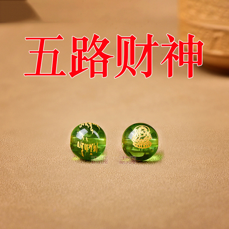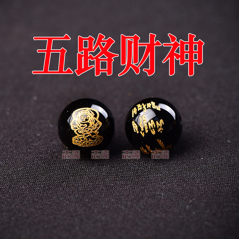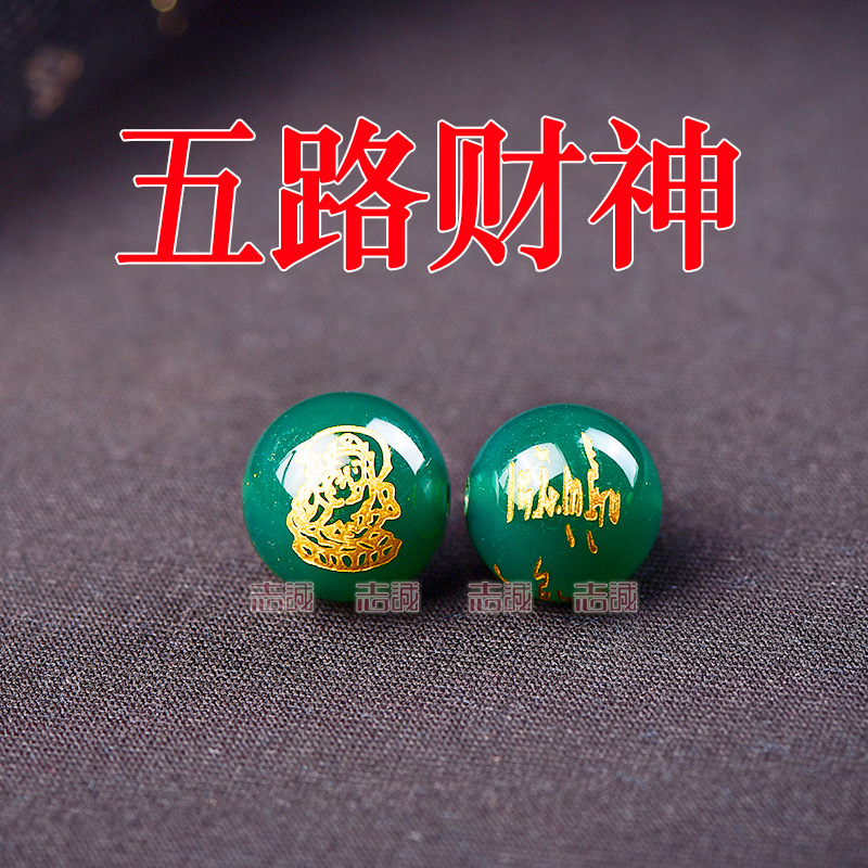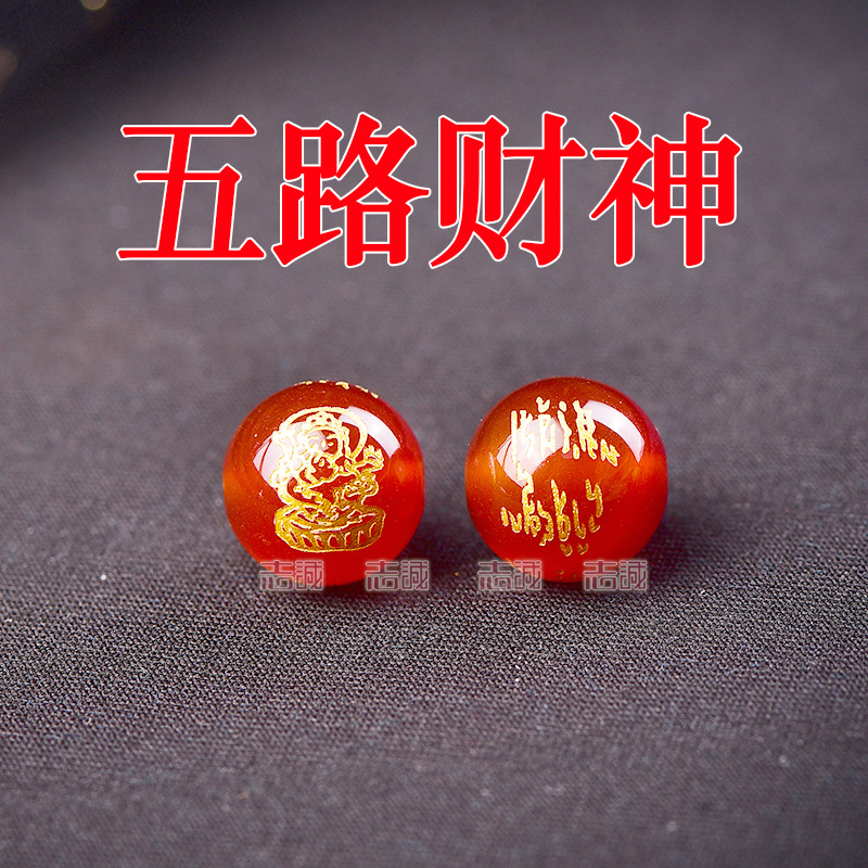 五路财神天然红黄黑绿玛瑙白水晶烫金五行5色圆散珠6-14mm批发