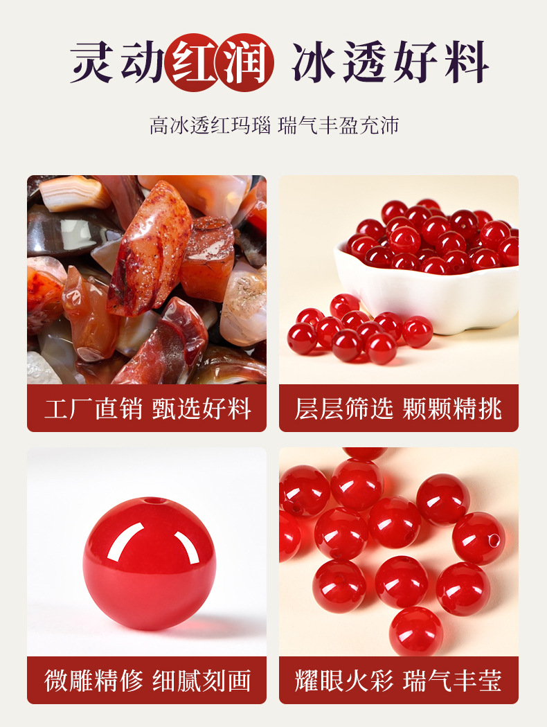 7A+天然红玛瑙珠子散珠编织貔貅手链南红石串珠手工diy手串项链