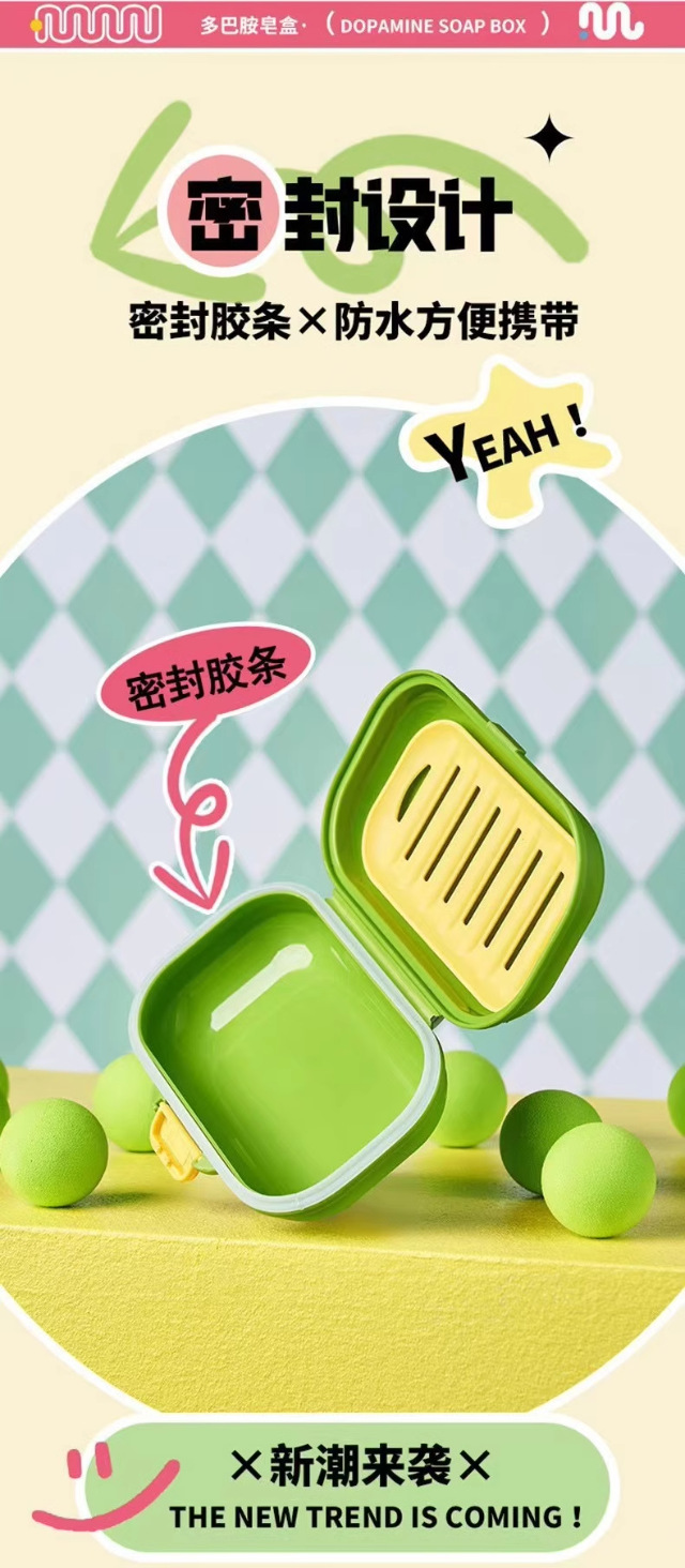 多巴胺肥皂盒旅行便携式香皂盒大号高级密封带盖沥水肥皂收纳盒