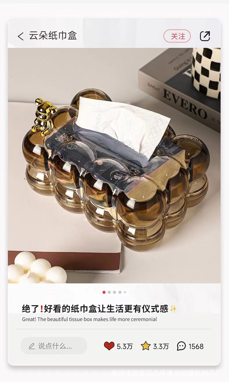 北欧轻奢高颜值纸巾盒家用客厅茶几纸巾收纳盒创意个性透明抽纸盒