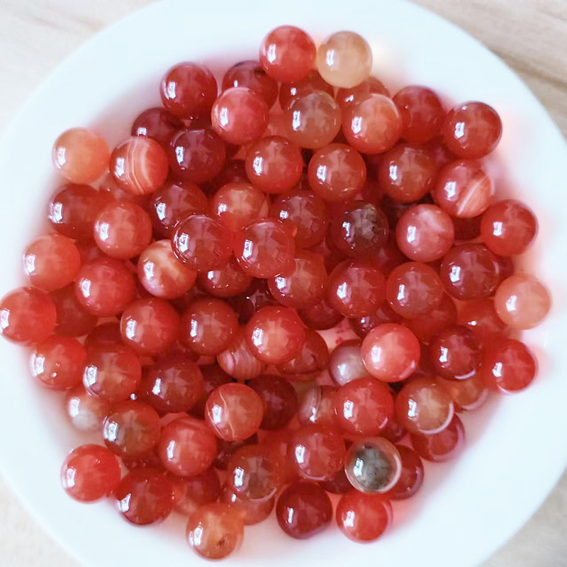 无孔半孔8mm天然水晶圆珠猫眼玉髓玛瑙散珠diy饰品配件材料批发