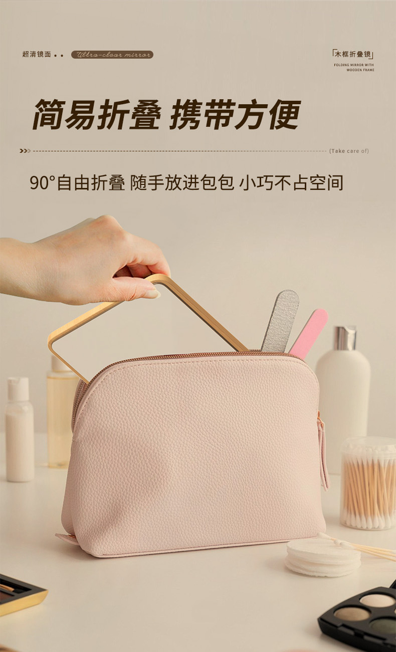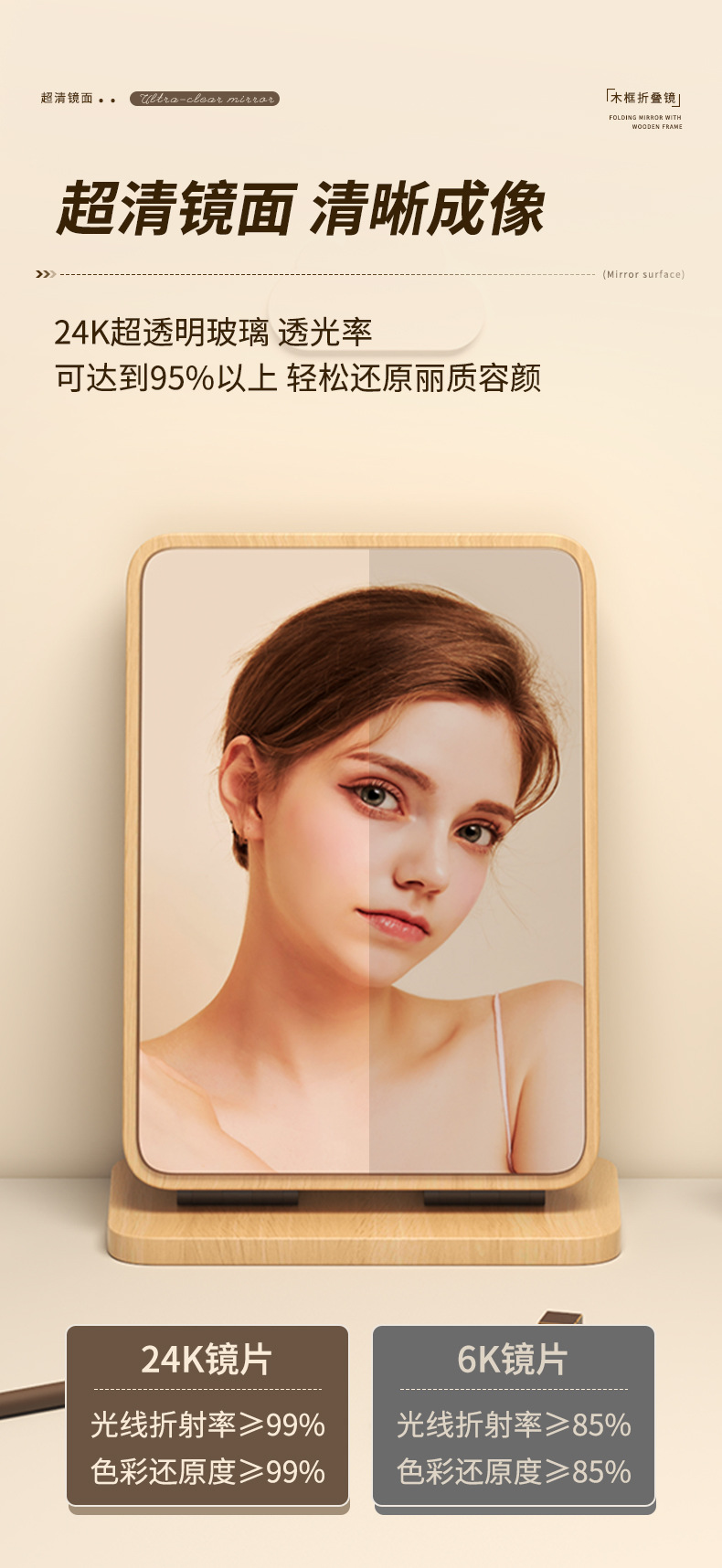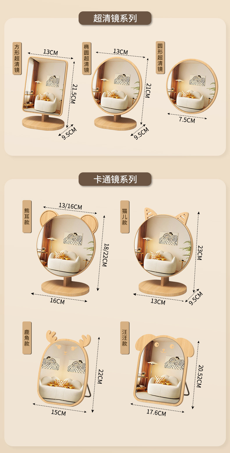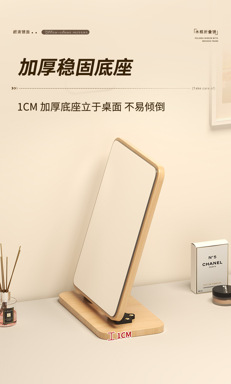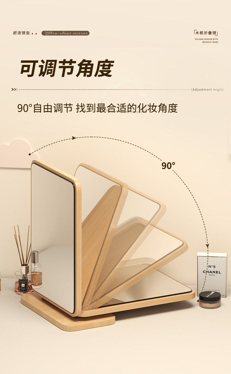 梳妆台大号化妆镜可折叠家用女生卧室台式桌面梳妆镜ins风圆镜子