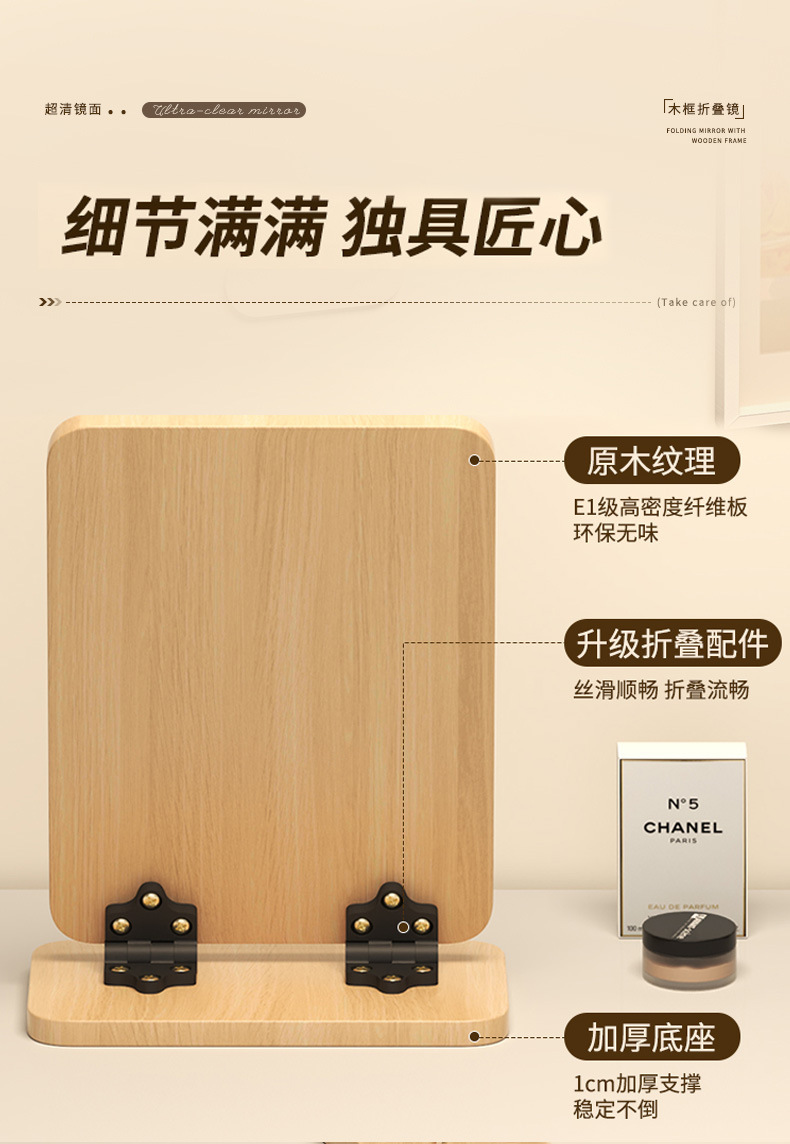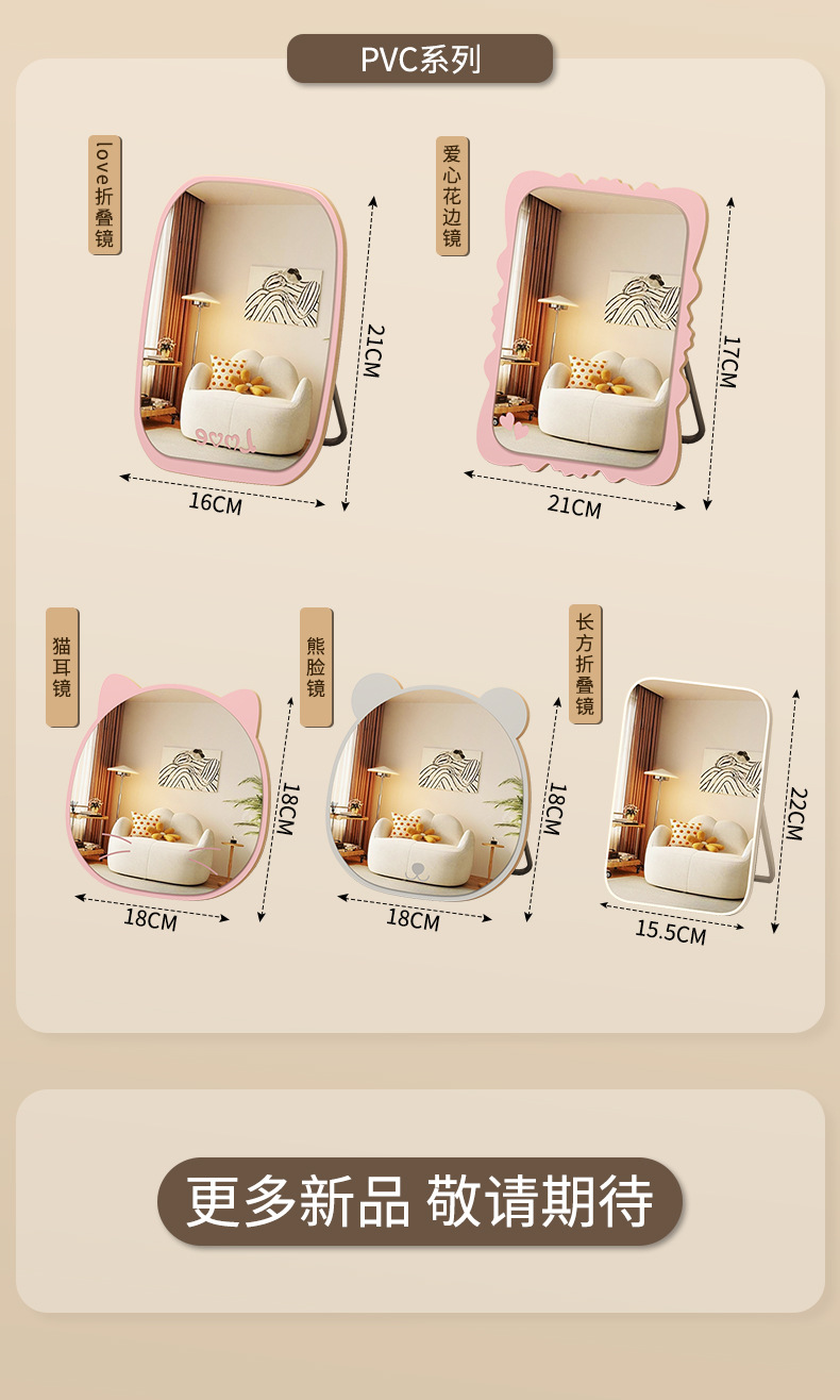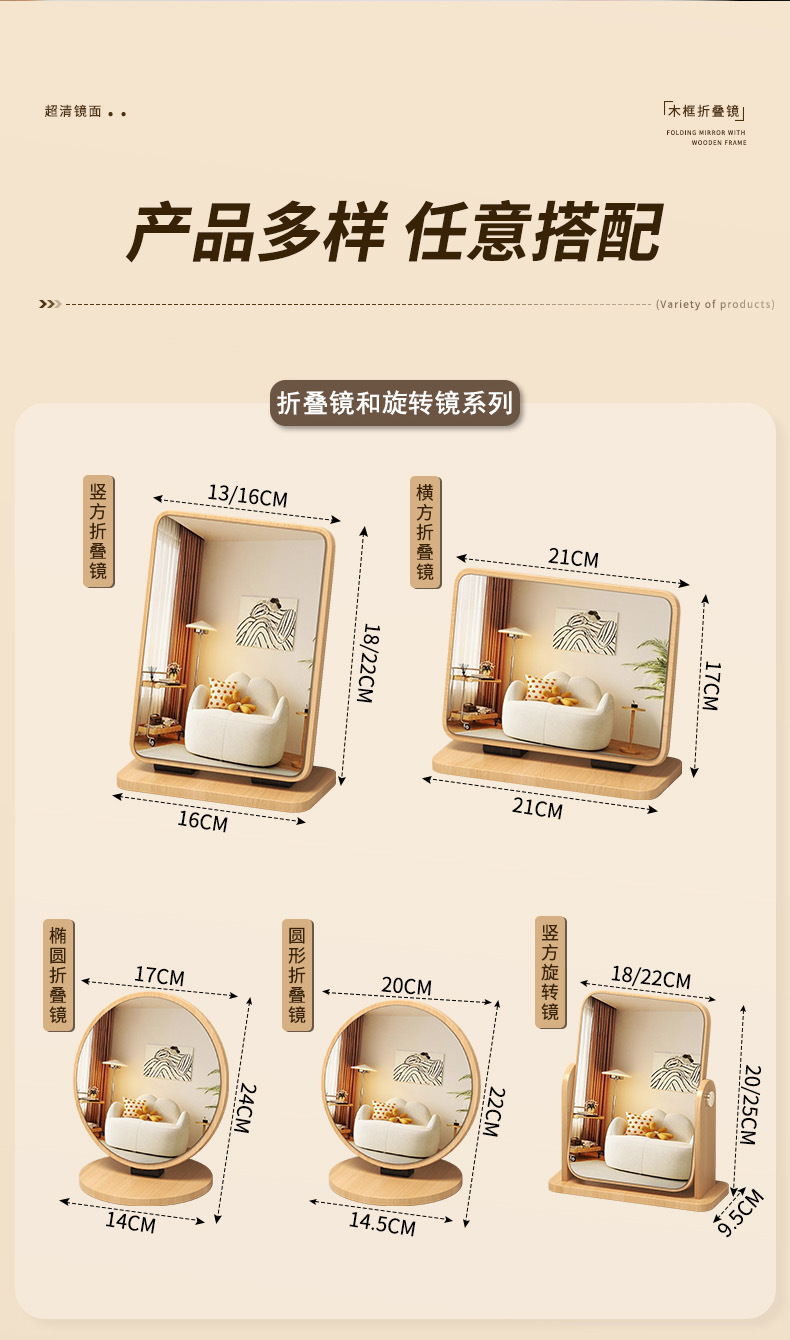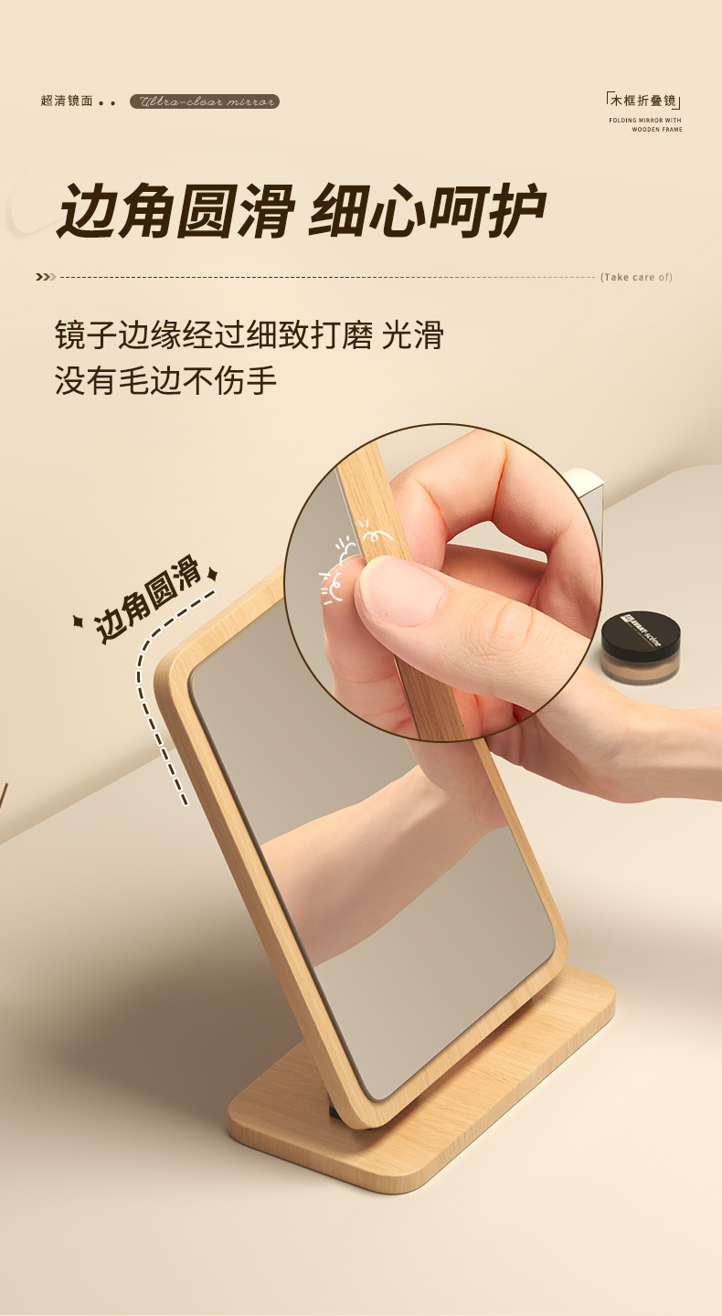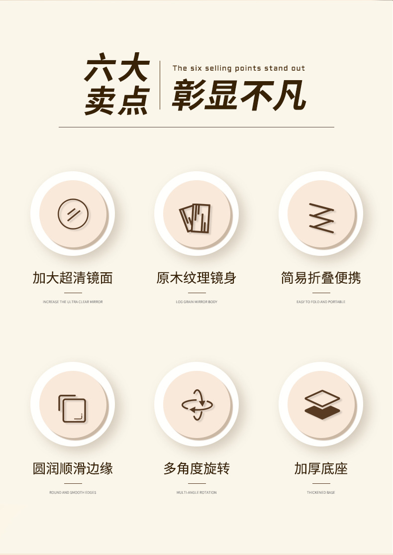 梳妆台大号化妆镜可折叠家用女生卧室台式桌面梳妆镜ins风圆镜子