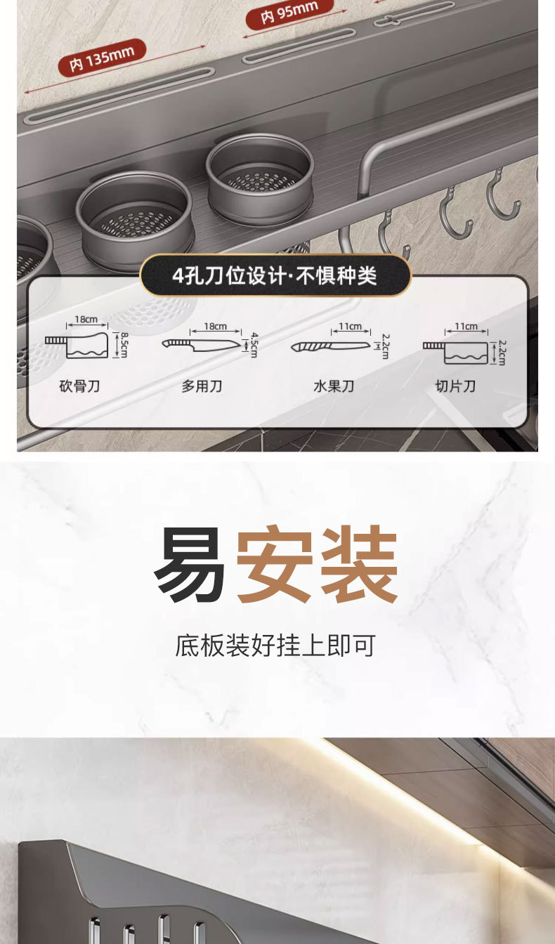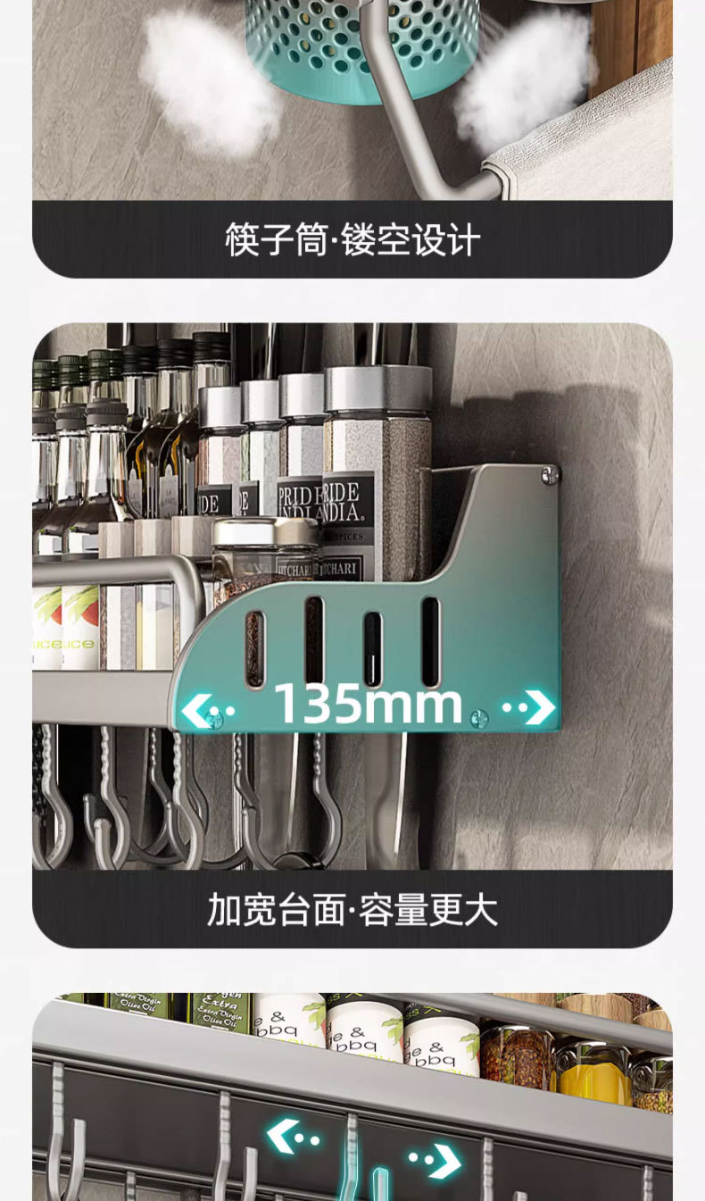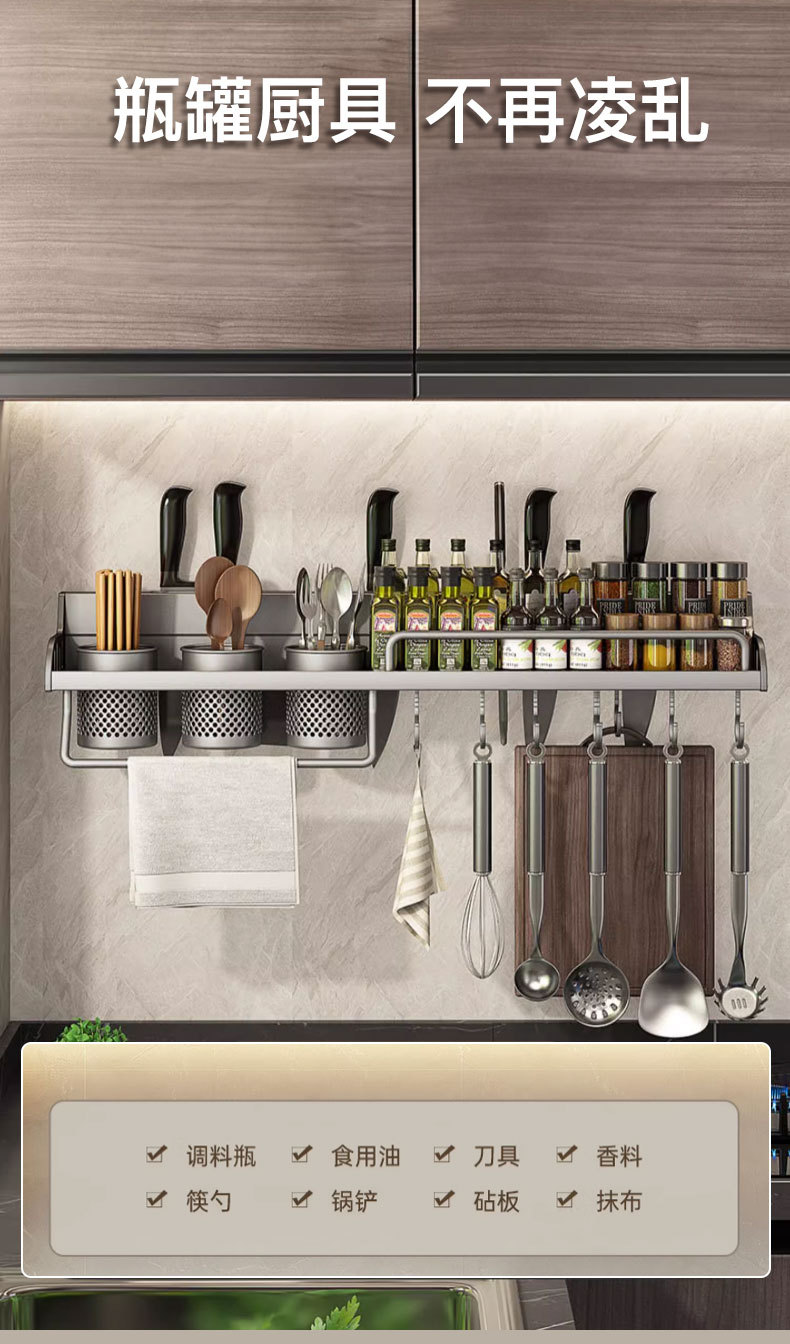 厨房置物架壁挂式家用多功能筷子刀架调料用品收纳挂架橱柜加厚