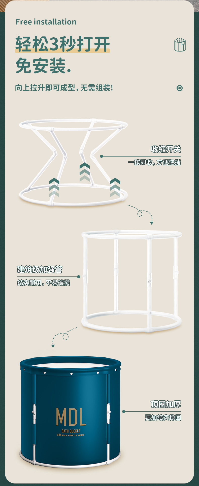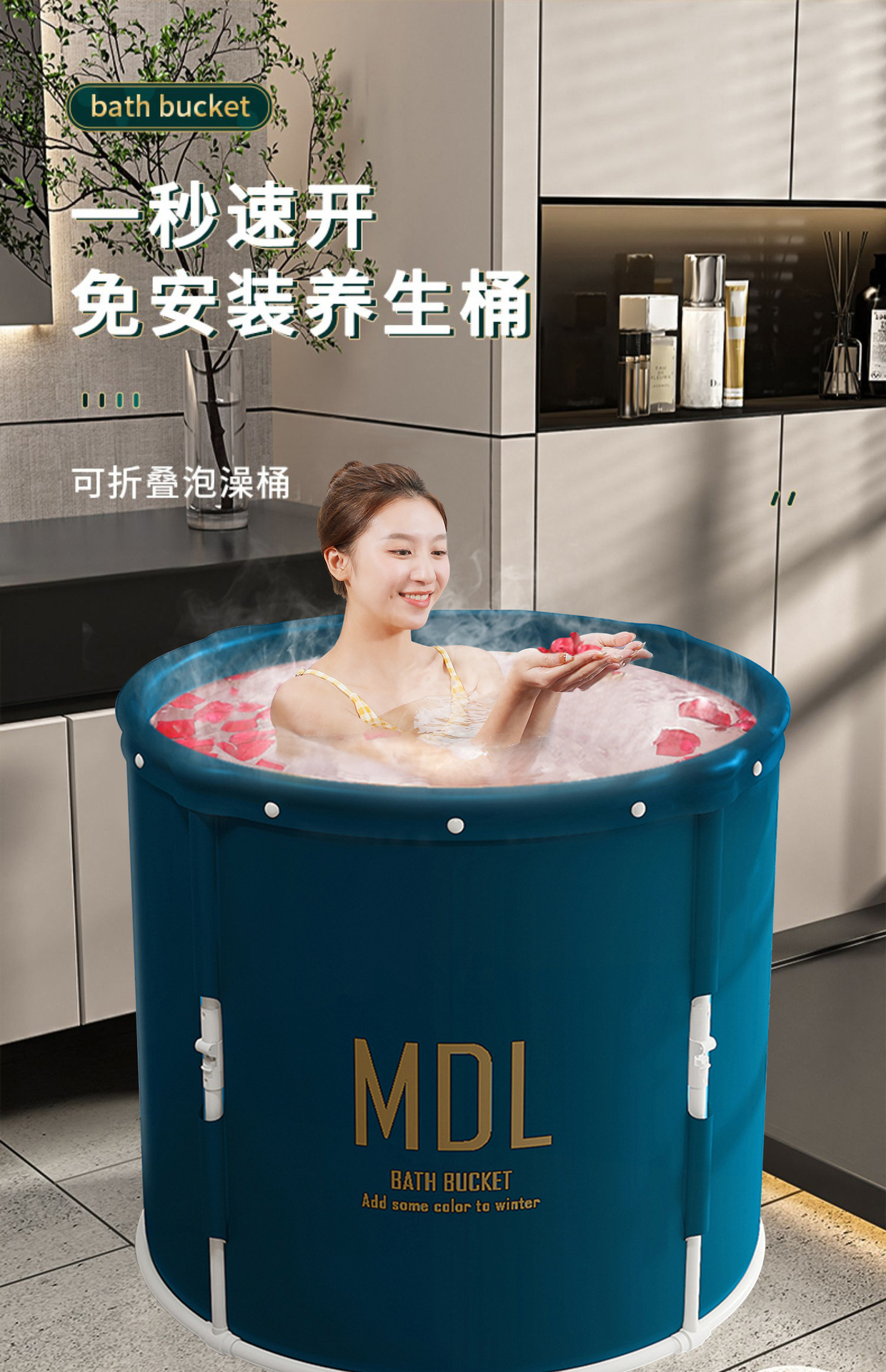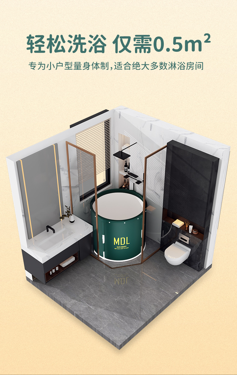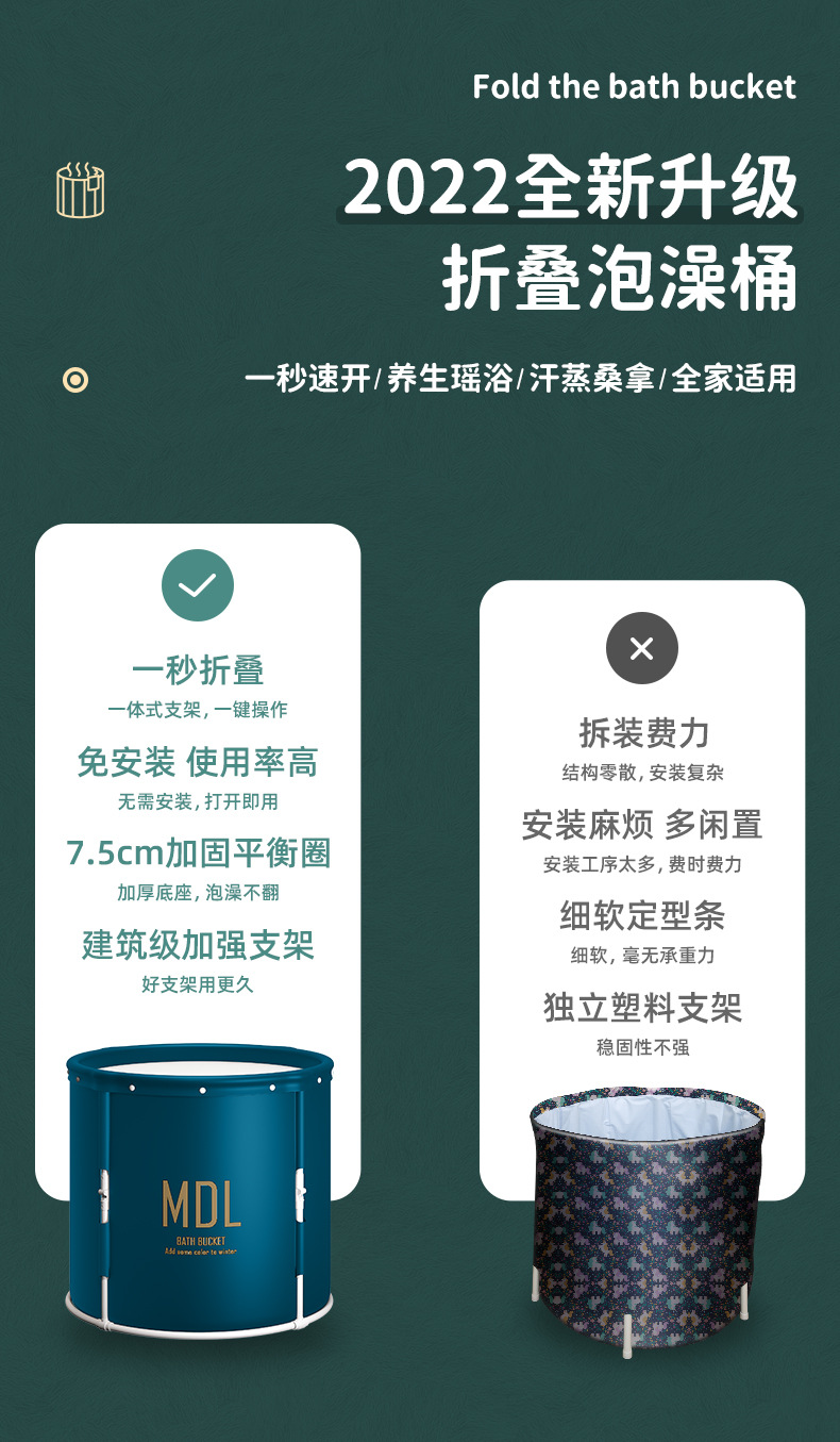 折叠泡澡桶成人款免安装一秒速开洗澡桶家用大号浴桶大人沐浴桶