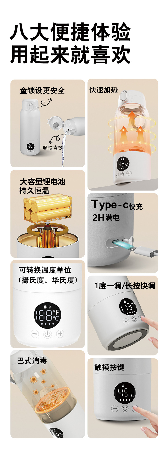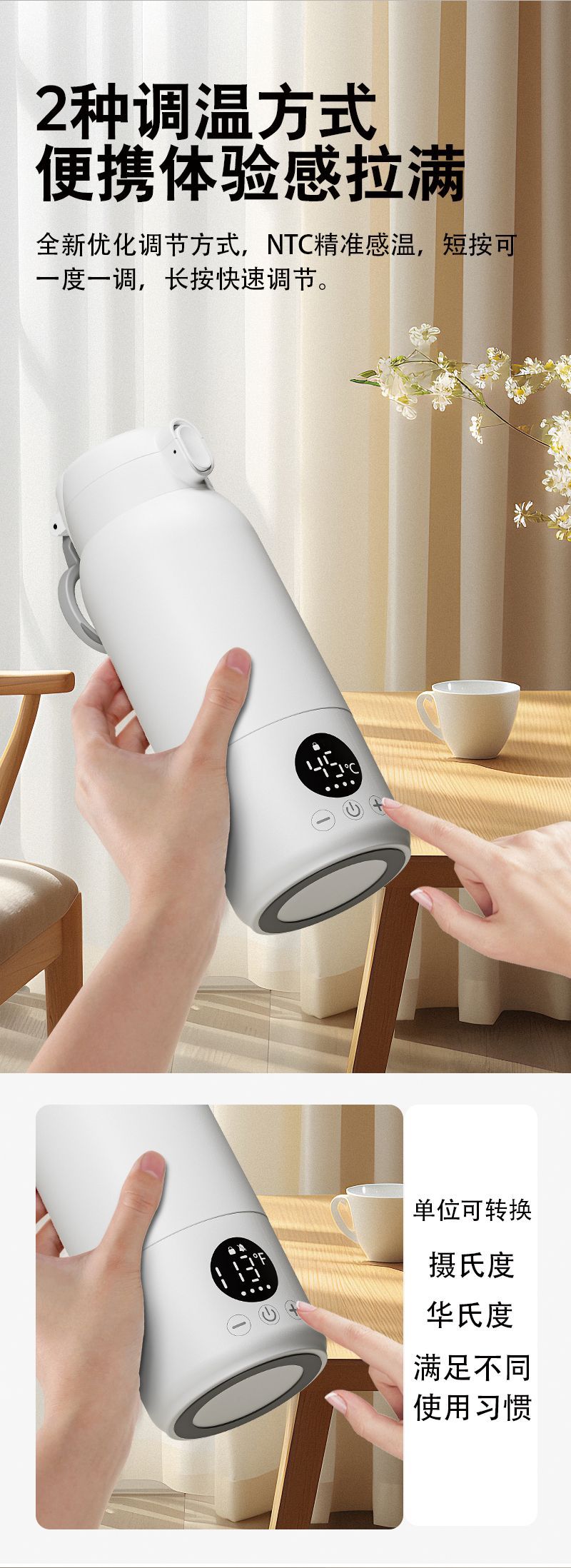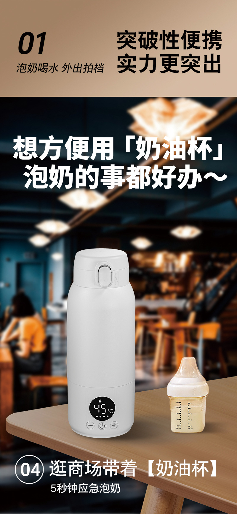 无线婴儿外出冲奶恒温杯便携式加热烧水电热杯家用小型牛奶暖奶器