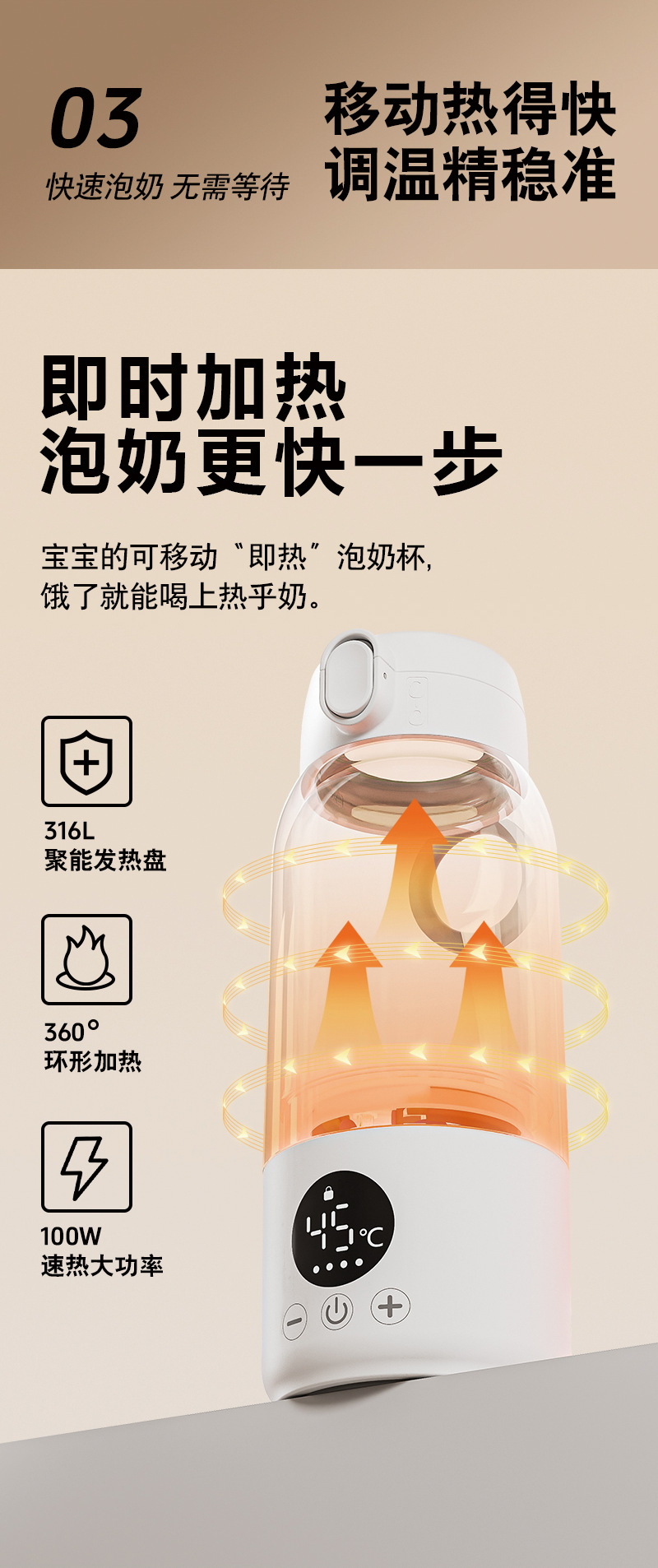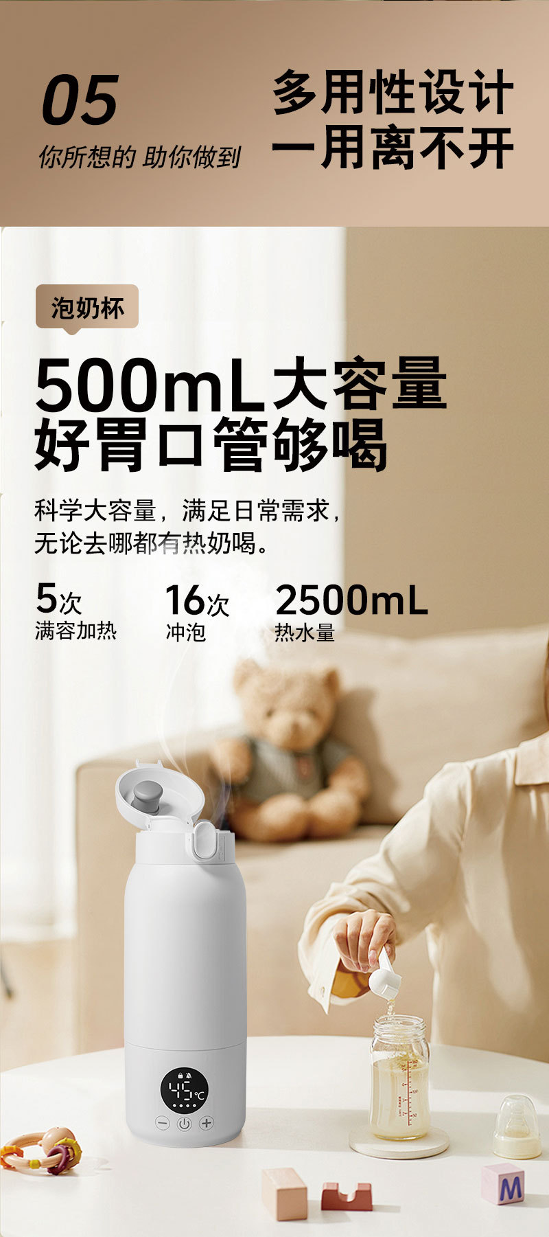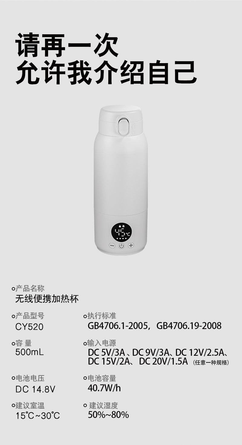 无线婴儿外出冲奶恒温杯便携式加热烧水电热杯家用小型牛奶暖奶器