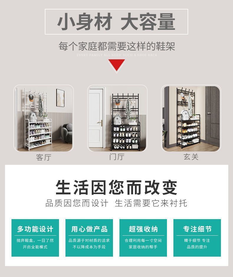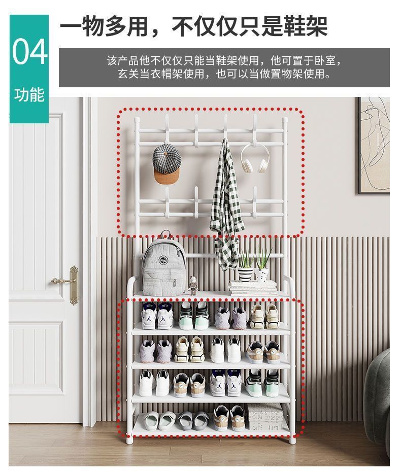 鞋架多层家用落地一体式衣帽一体架鞋屋门玄关简易鞋服多功能架