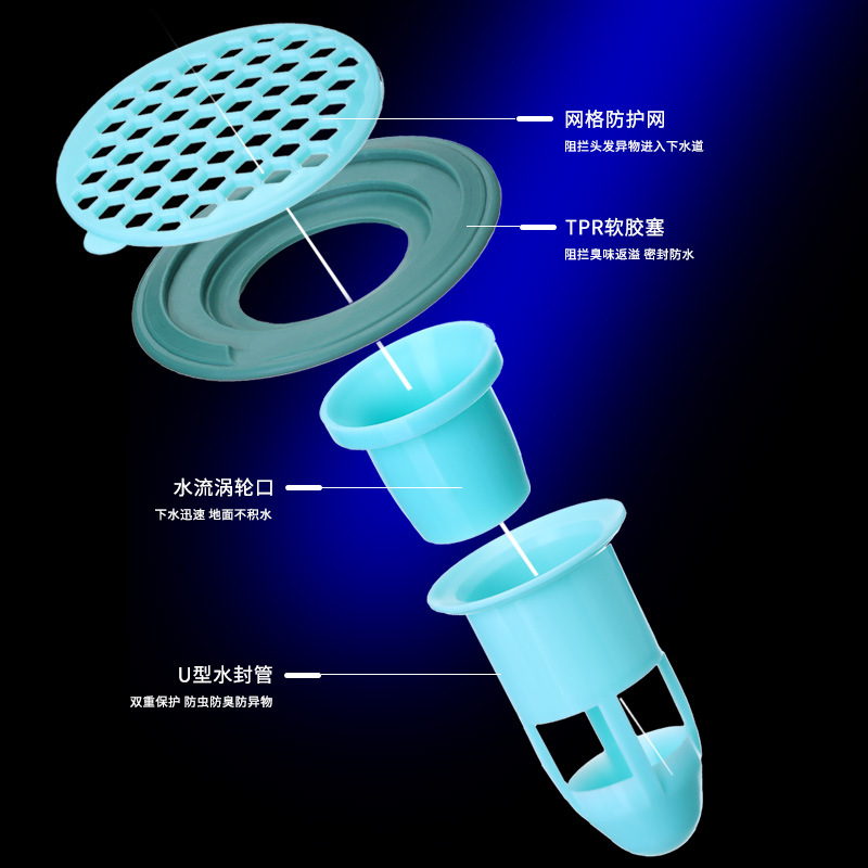 子弹头厕所地漏防臭器下水道防虫防臭盖厨房防蟑螂堵臭卫生间神器