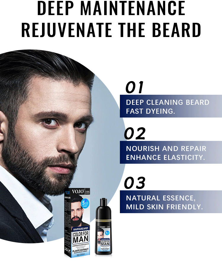 VOJO跨境全英文胡子染发剂Beard dye200ml亚马逊titok热销胡子染