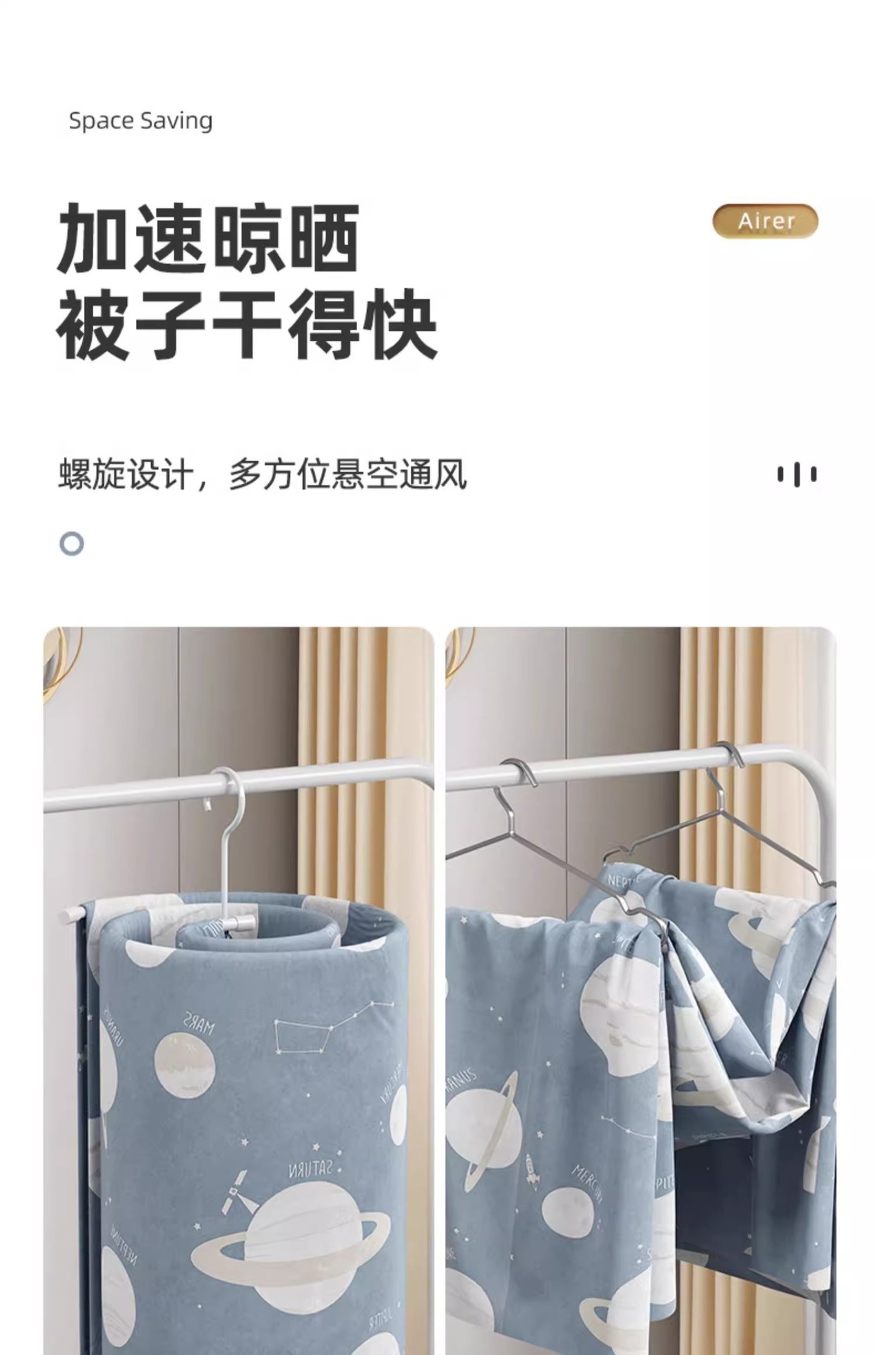不锈钢晒被子神器螺旋式晾衣架阳台家用大圆形旋转挂凉晒床单被罩