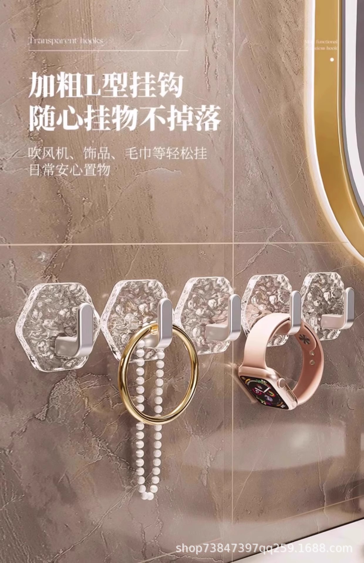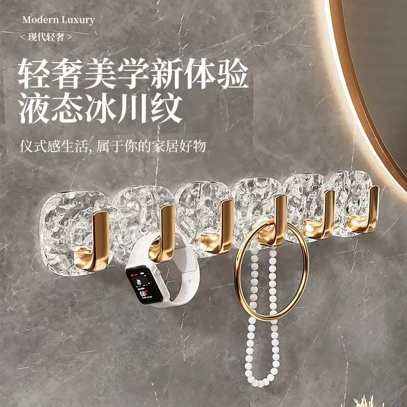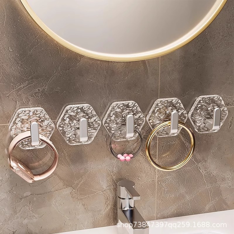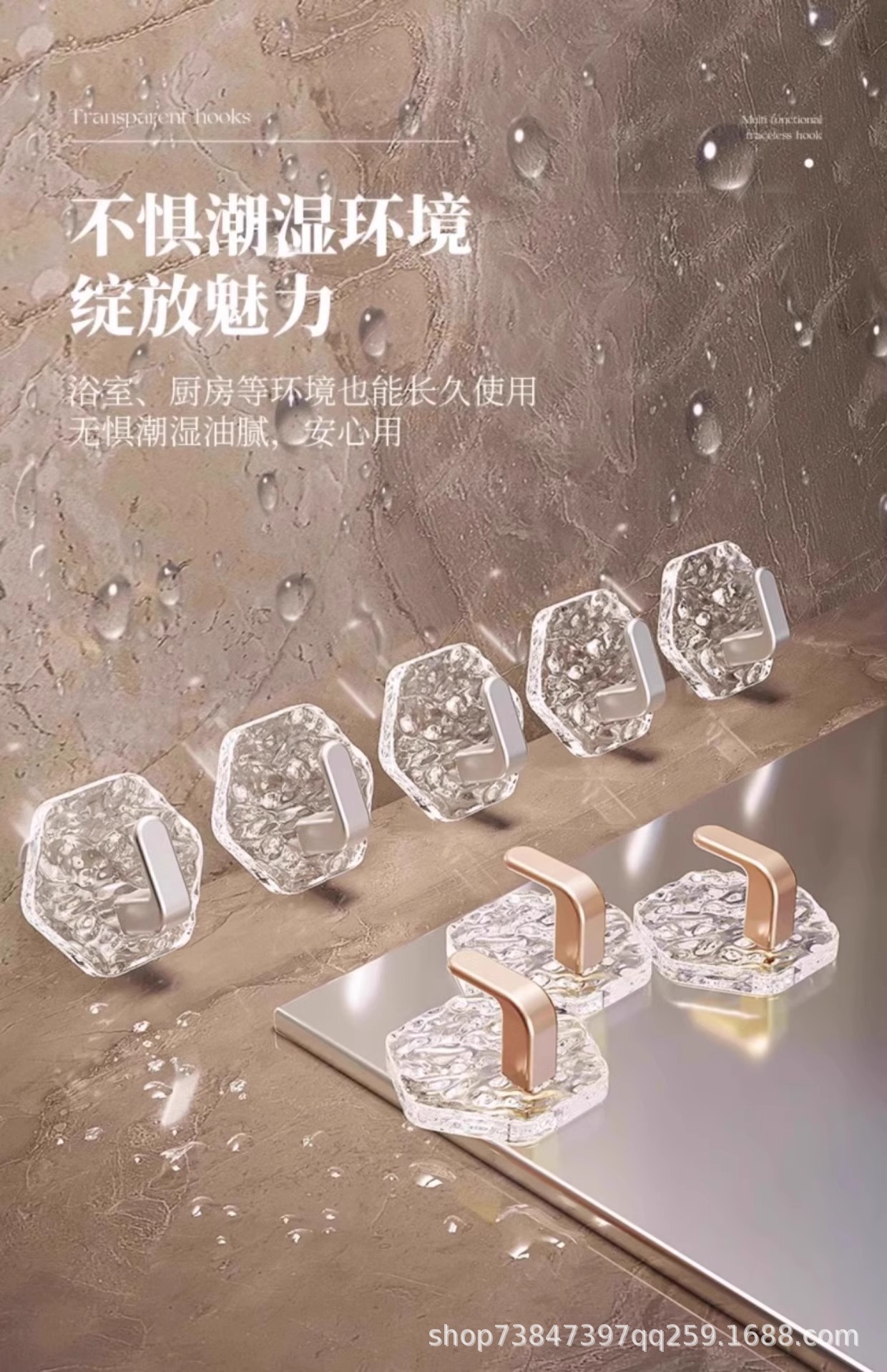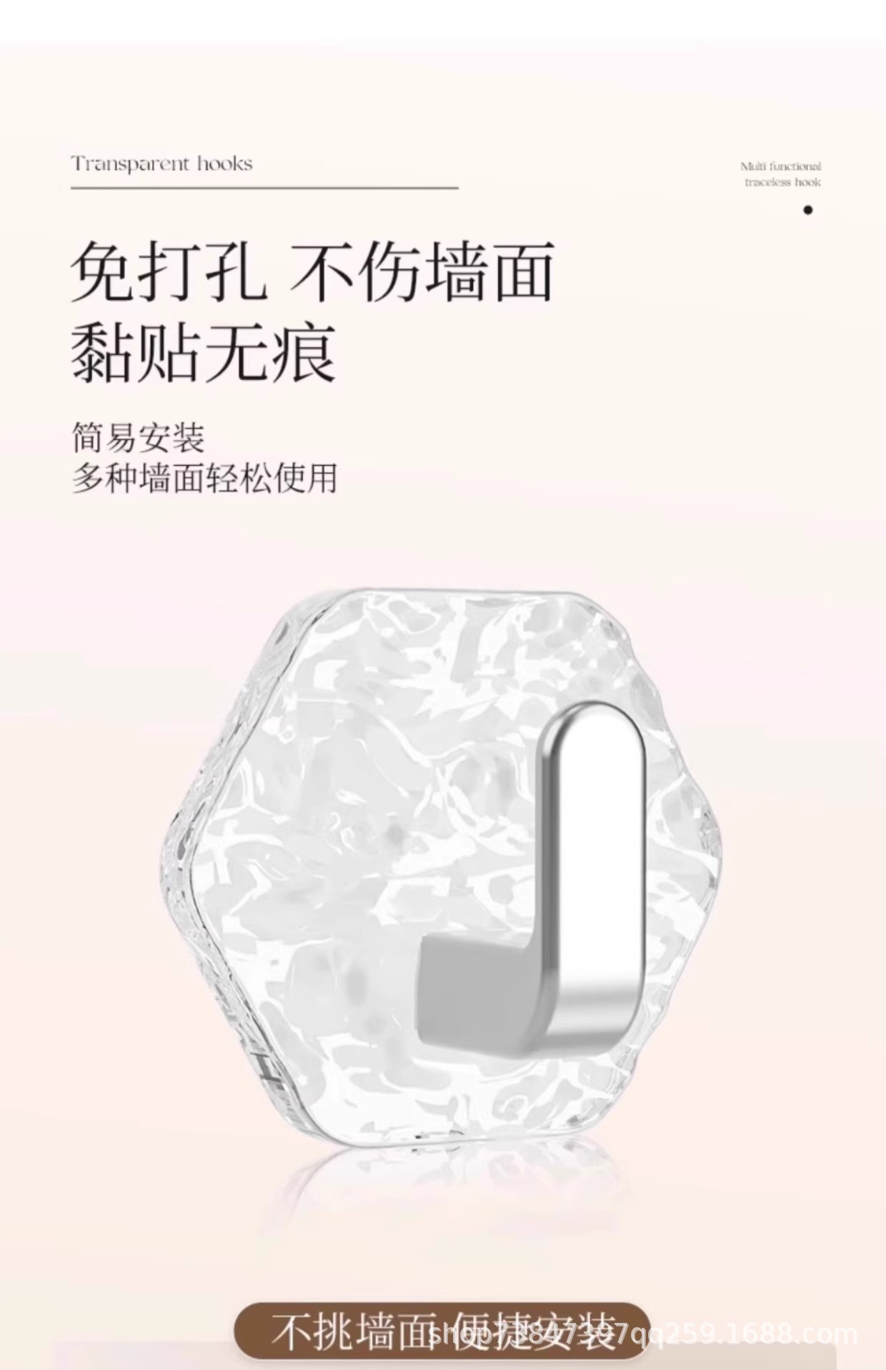 高档水波纹挂钩免打孔创意亚克力门后粘胶卫生间浴室贴墙粘钩自粘